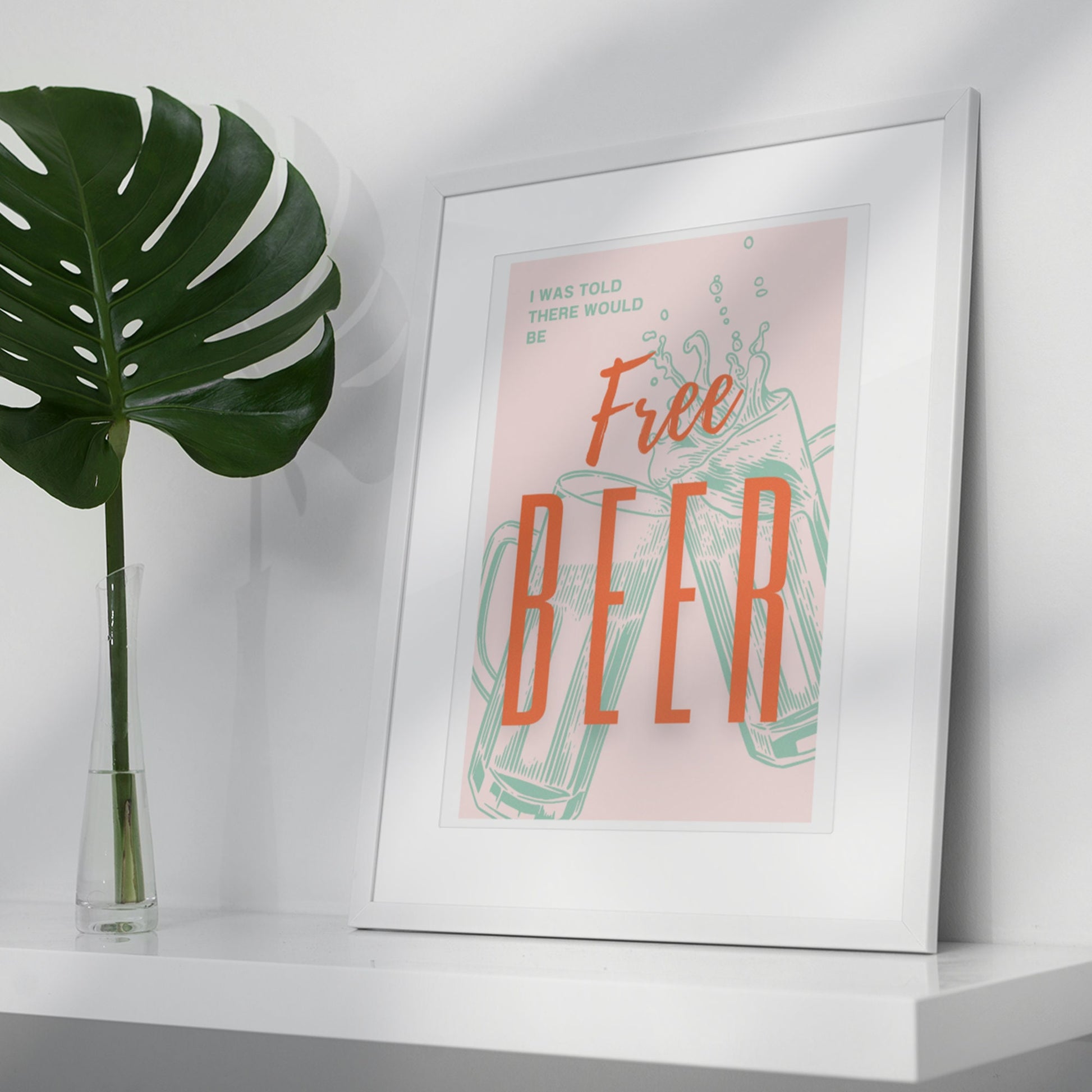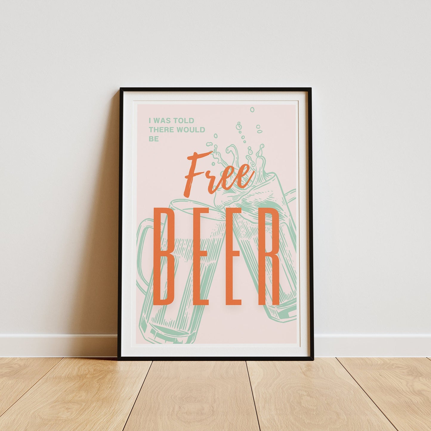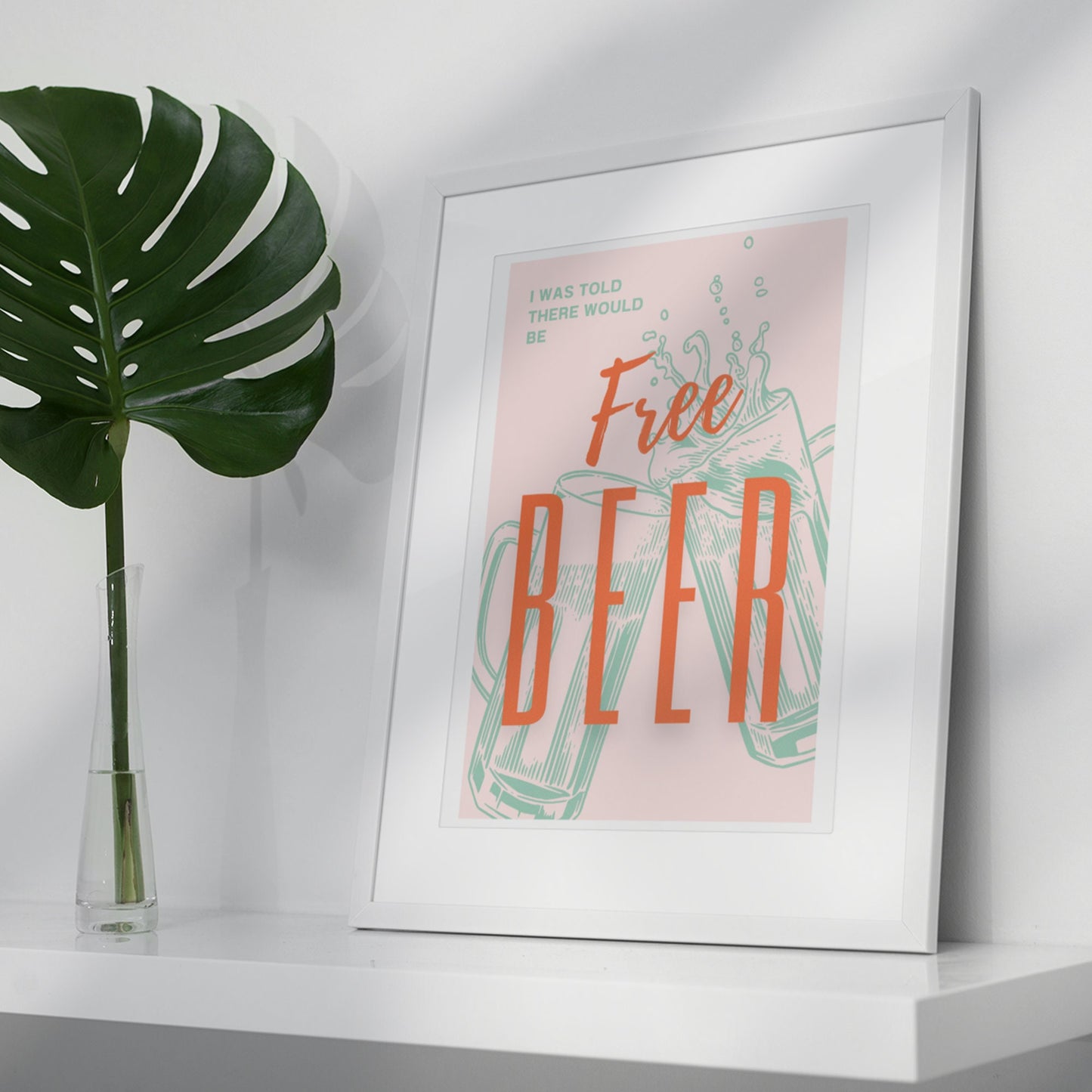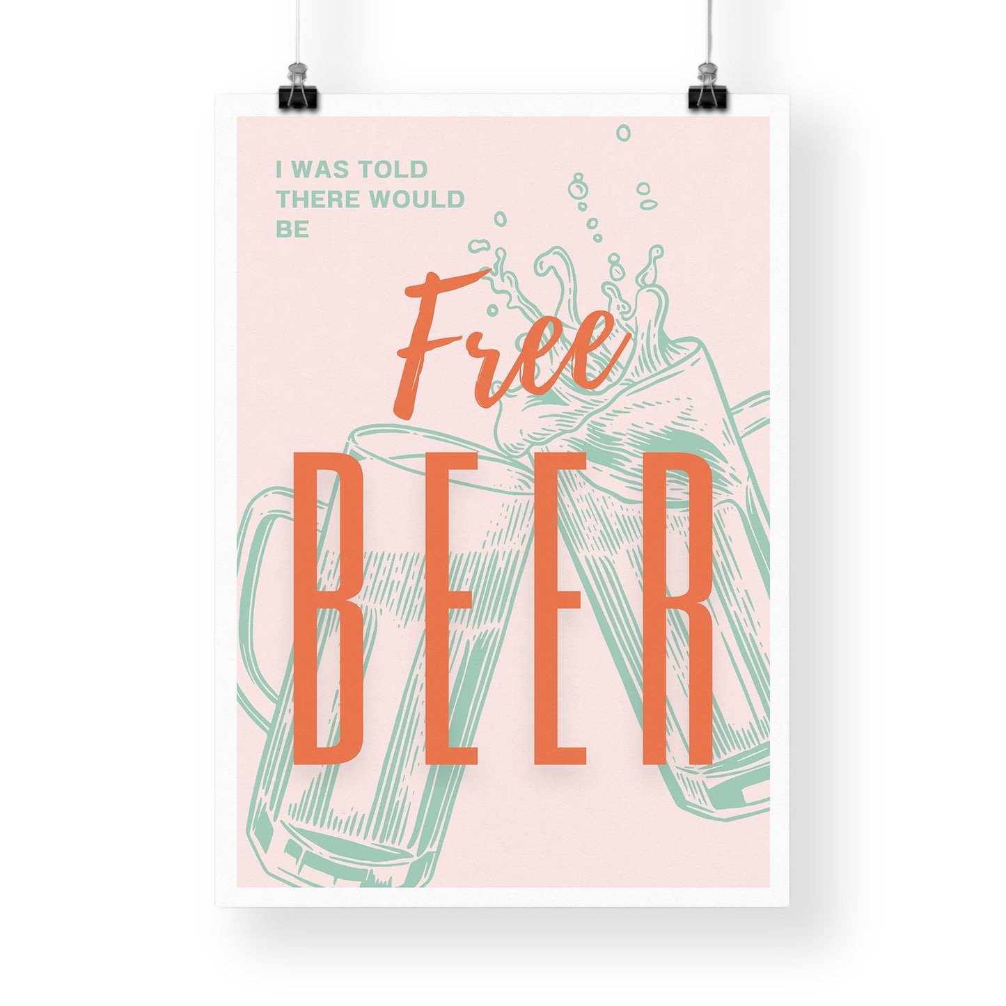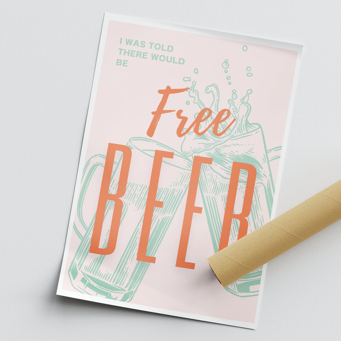Add a touch of humour to your space with this hilarious "I Was Told There Would Be Free Beer" poster. Perfect for beer lovers, this funny wall art is an ideal addition to any home bar, man cave, dorm room, or kitchen. The bold design makes it a standout piece that grabs attention and sparks conversations.