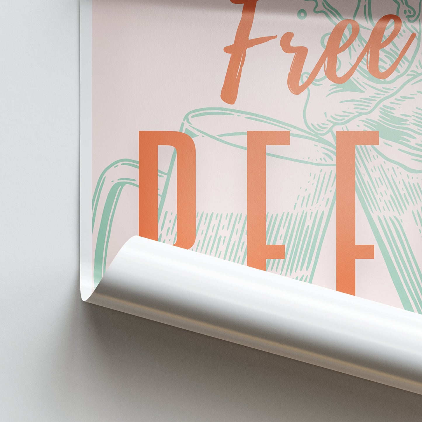 Free Beer - Stein Glass Sketch Poster: Funny Beer Themed Poster, Humorous Wall Art, Home Bar, Man Cave, Drink Print, Bold Typography Poster