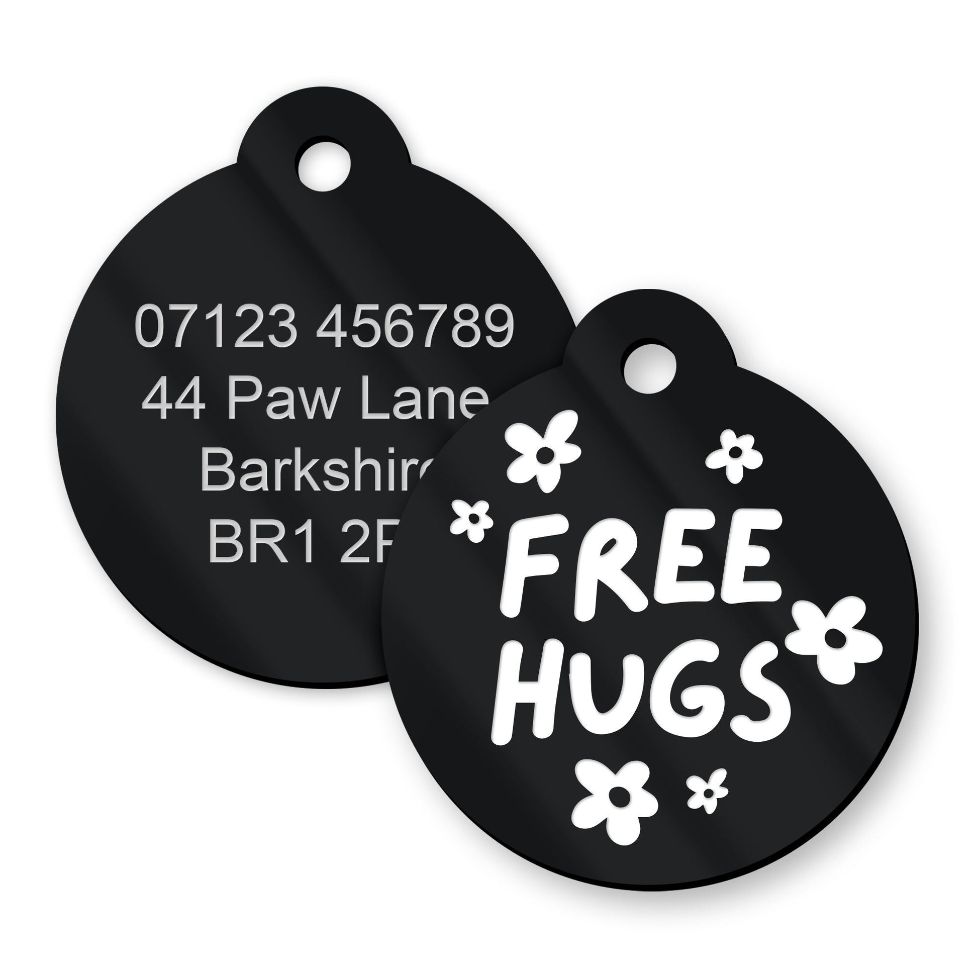 Free Hugs Flowers - Personalised Dog ID Collar Tag: Funny Custom Pet Safety Accessories, New Pet Essentials, Unique Dog Gift