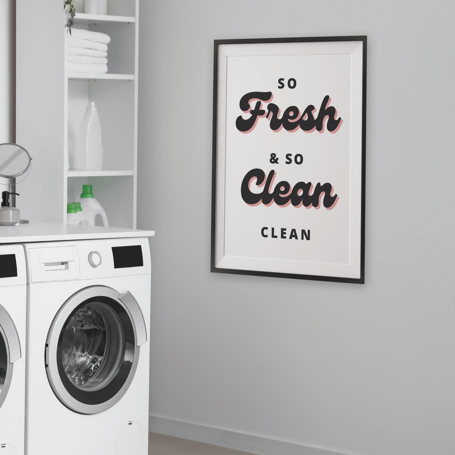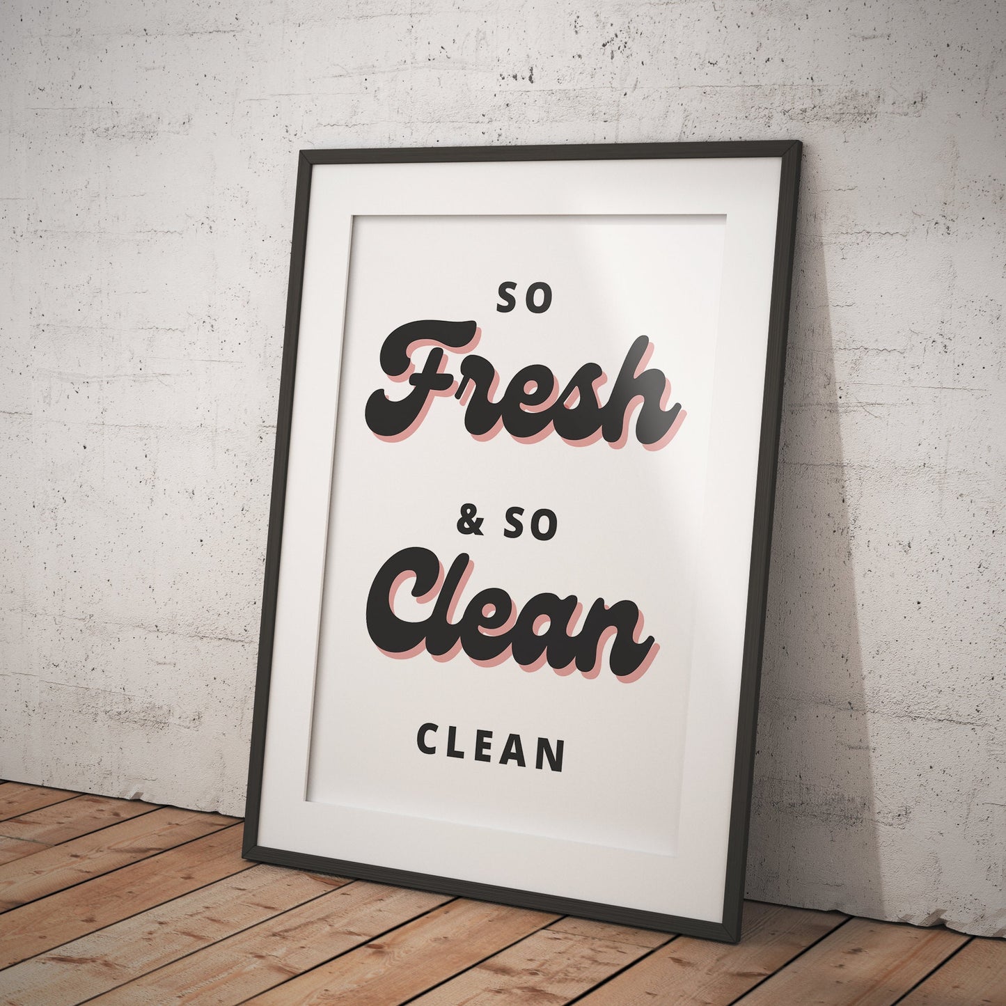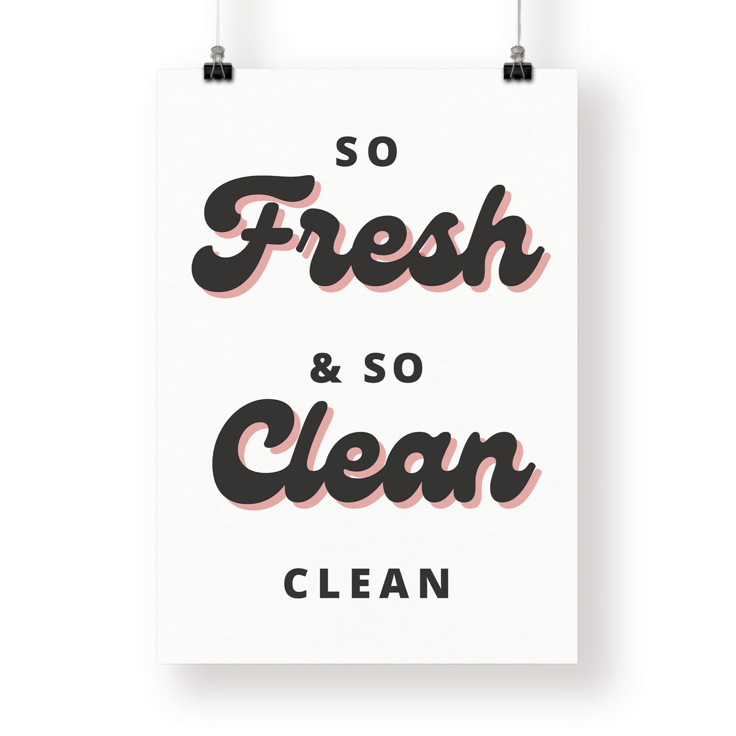 Fresh & Clean - Retro Poster: So Fresh And So Clean Clean Print, Unique Home Decor, Cool Laundry room Print, Bathroom Quote Poster