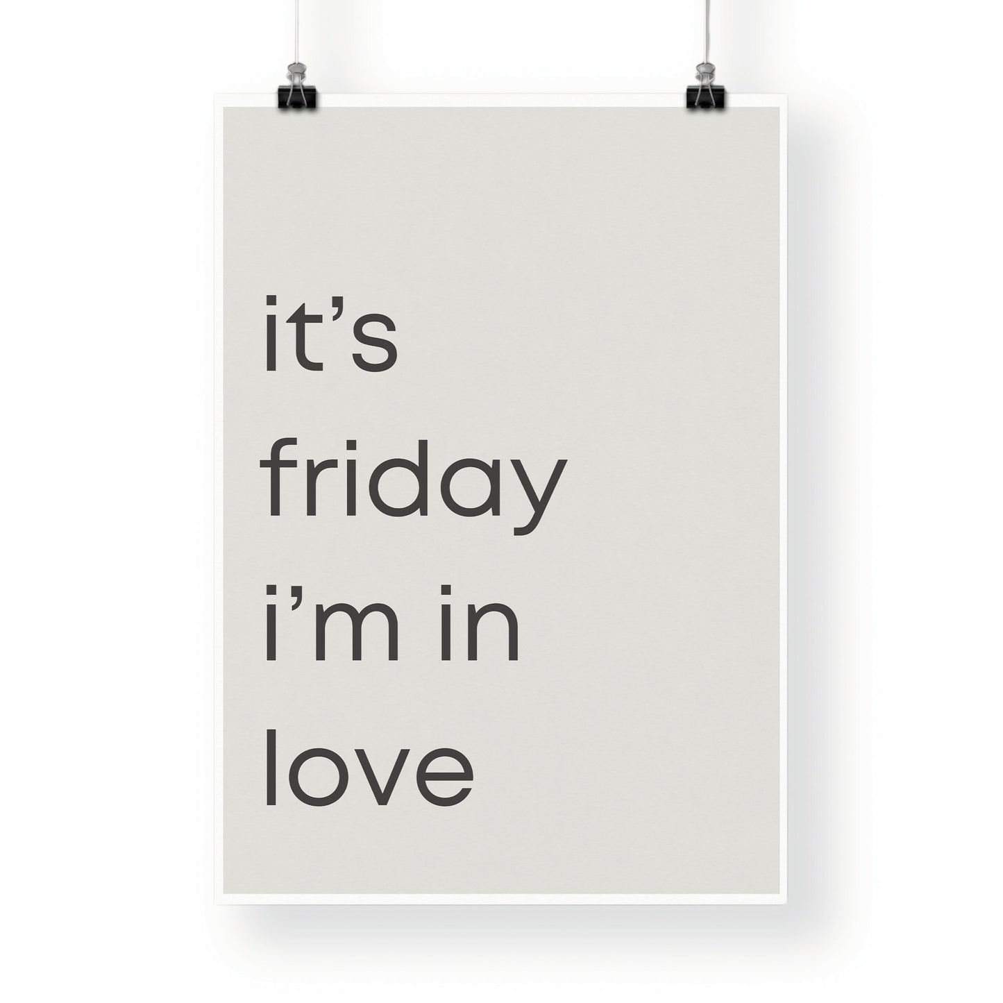 Embrace the enchanting lyrics of The Cure‘s iconic song with our inspired poster, featuring the beloved phrase "Friday I‘m In Love". Capturing the essence of carefree romance and weekend anticipation, this poster adds a touch of whimsical nostalgia to any space.