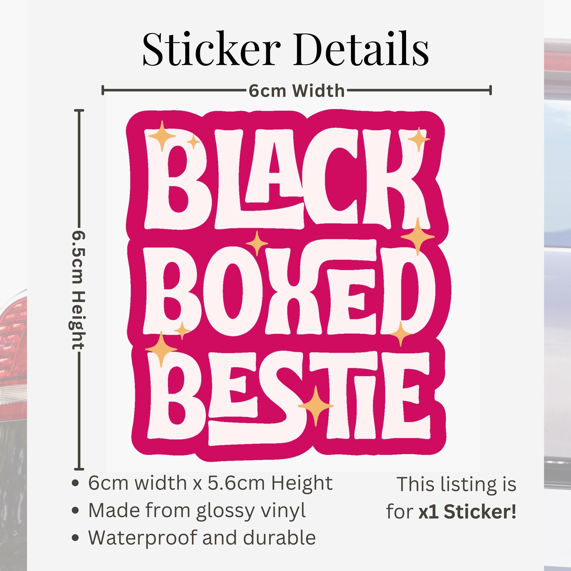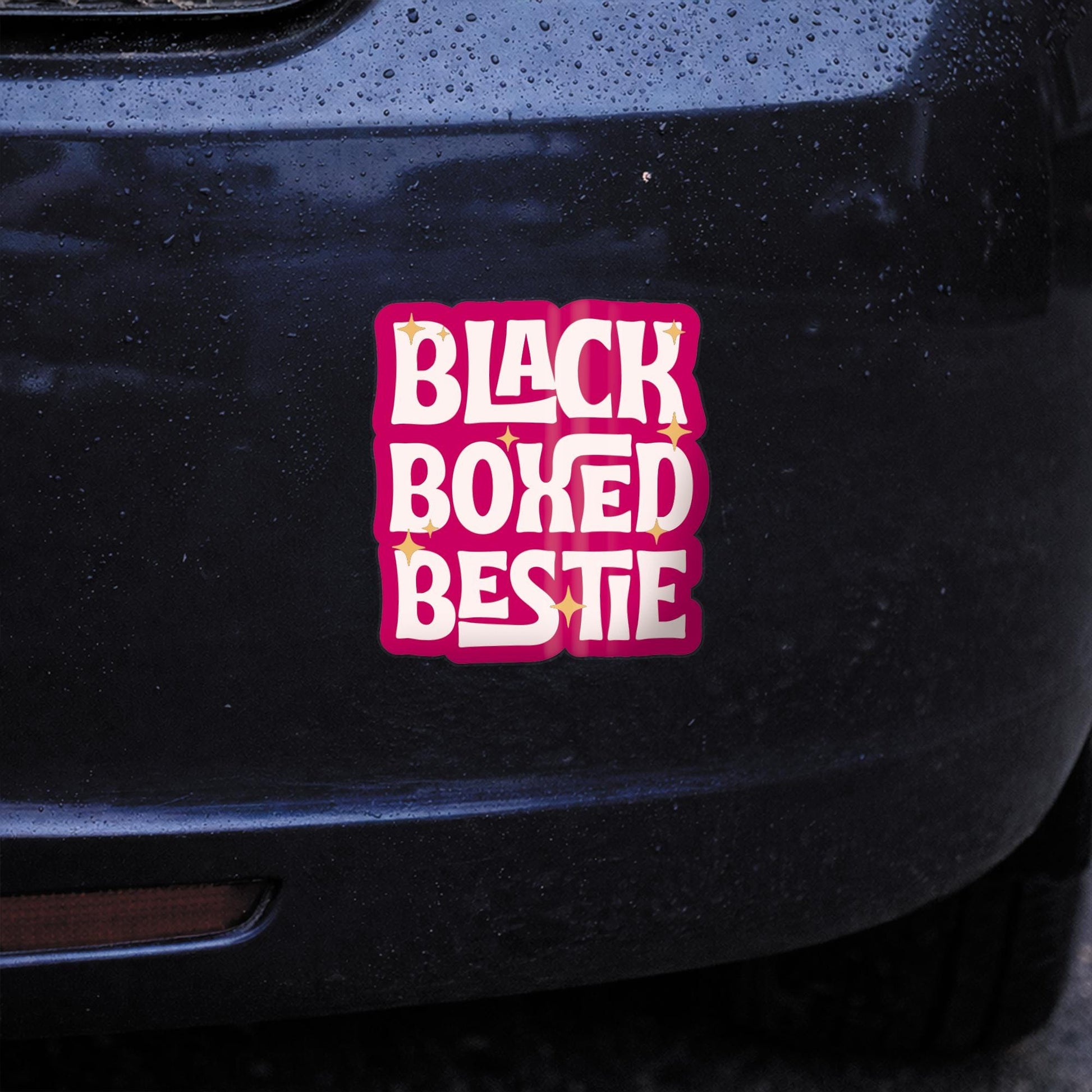 Funny Black Box Car Sticker - Black Boxed Bestie | Gen Z Car Sticker | Cute Pink Car Accessory | Girly Vinyl Decal | Driving Gift For Her