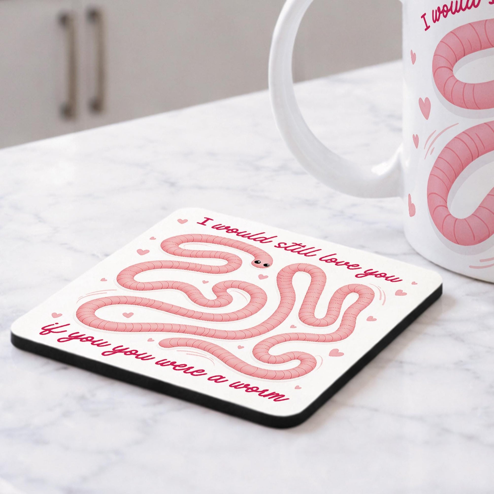 Funny Valentines Mug and Coaster Set | 'If You Were A Worm' | Cute Mug Gift for Her