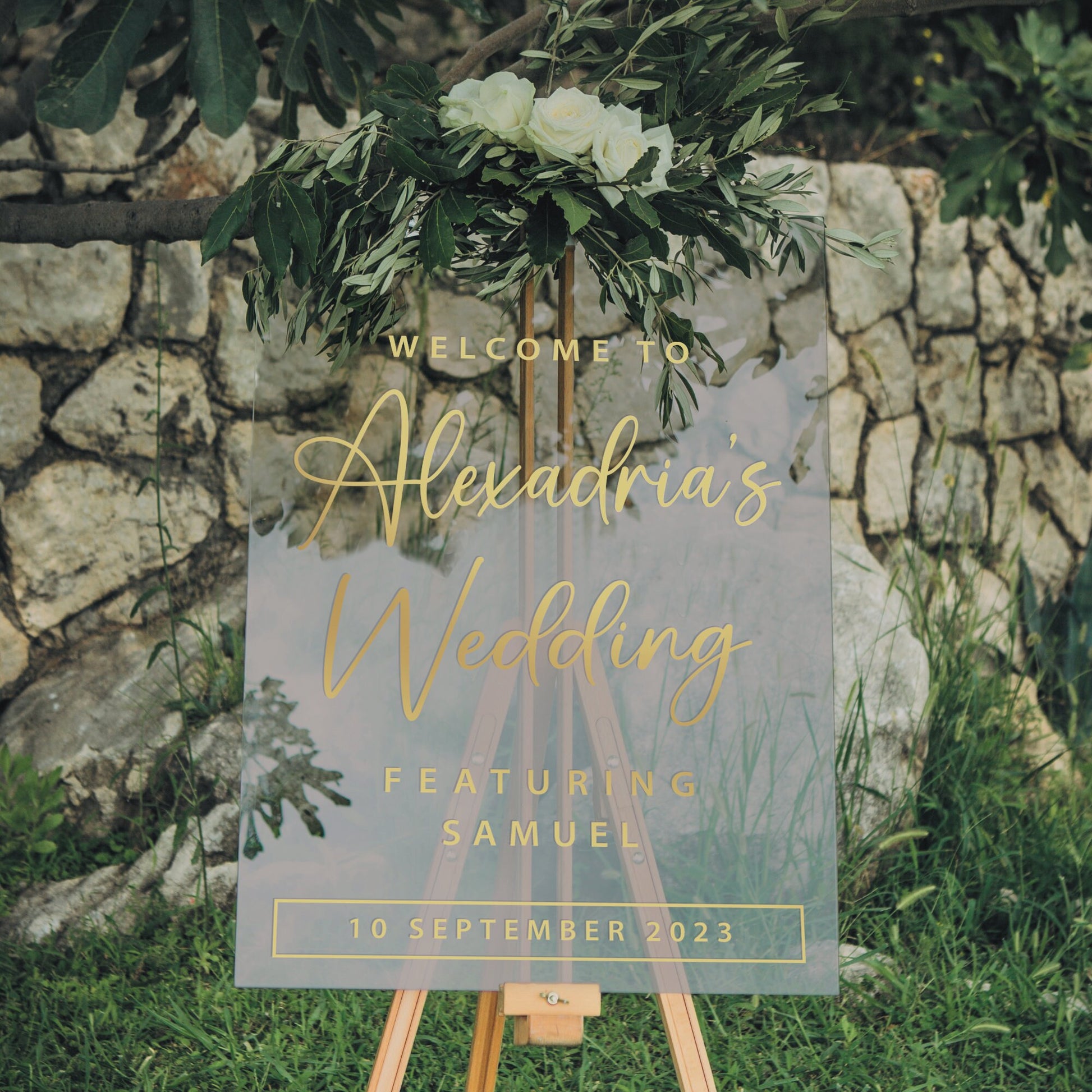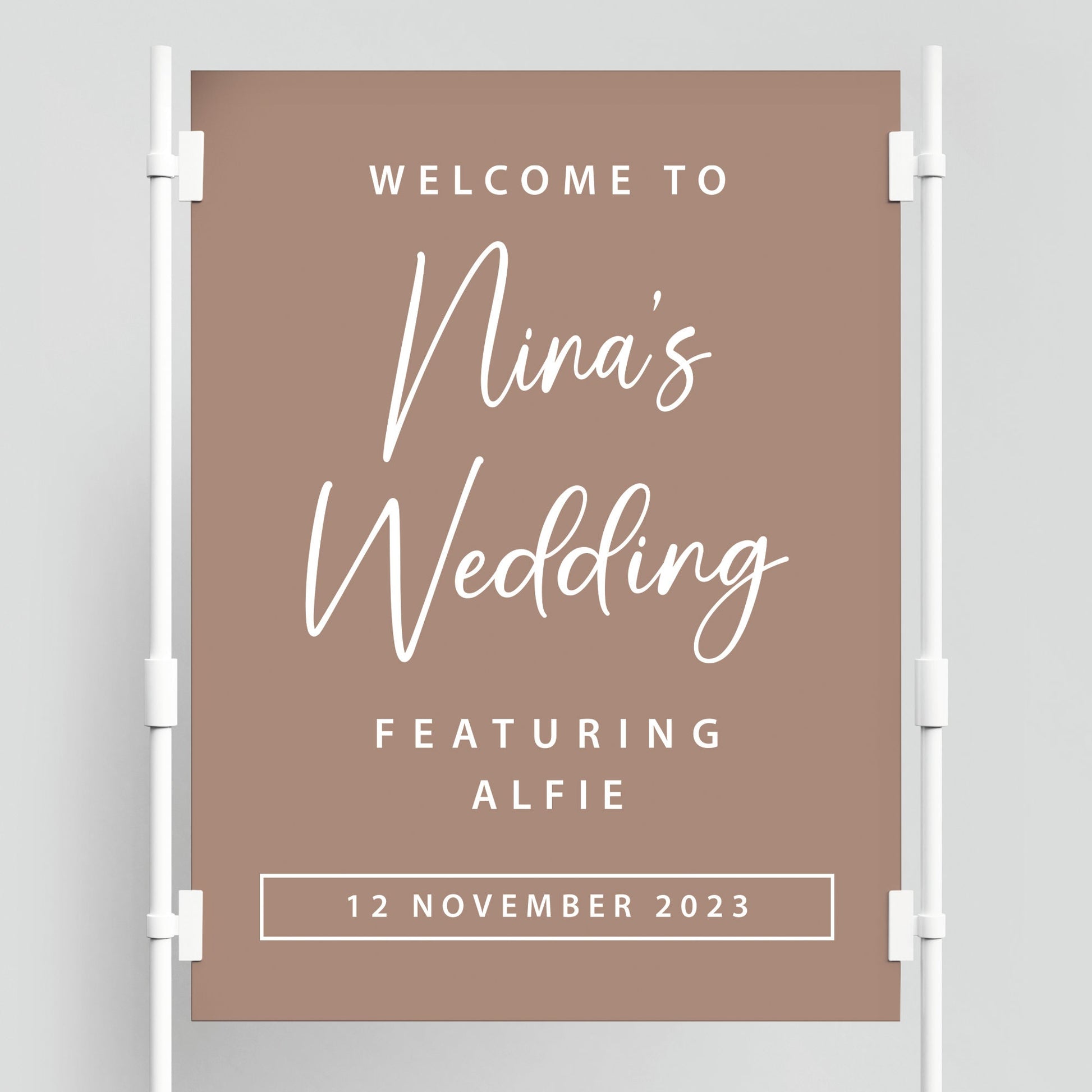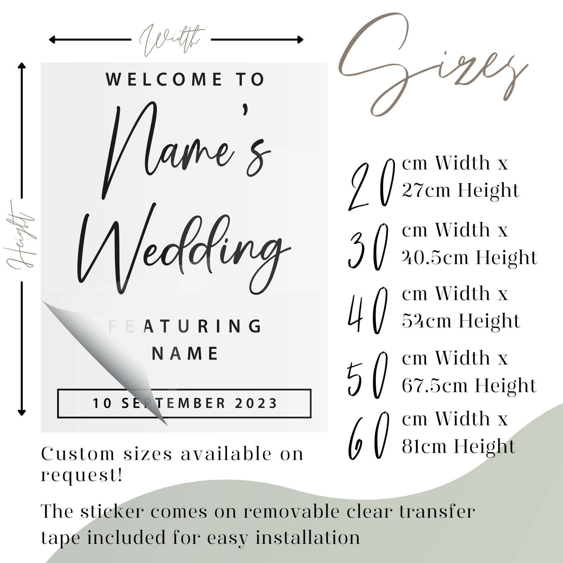Set the tone for your wedding and greet your guests with this funny witty welcome sign. This humorous sign is easy to personalise with your names and wedding date. The name order is up to you! As we offer 5 different sizes, this sticker looks great on any smooth display board/surface!