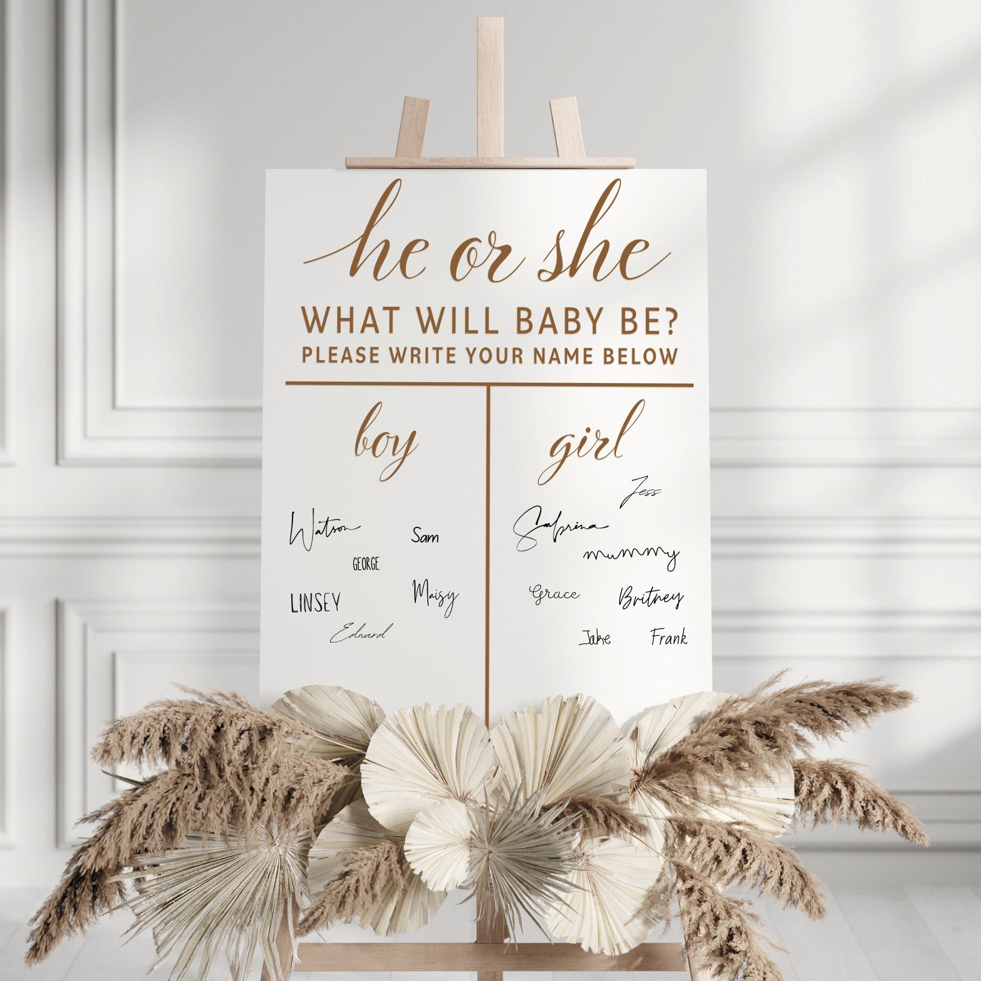 Gender Guess Sign Sticker - Guess The Gender Game, Baby Gender Reveal Party Decor, Boy or Girl, He or She, Baby Shower Sticker Decal