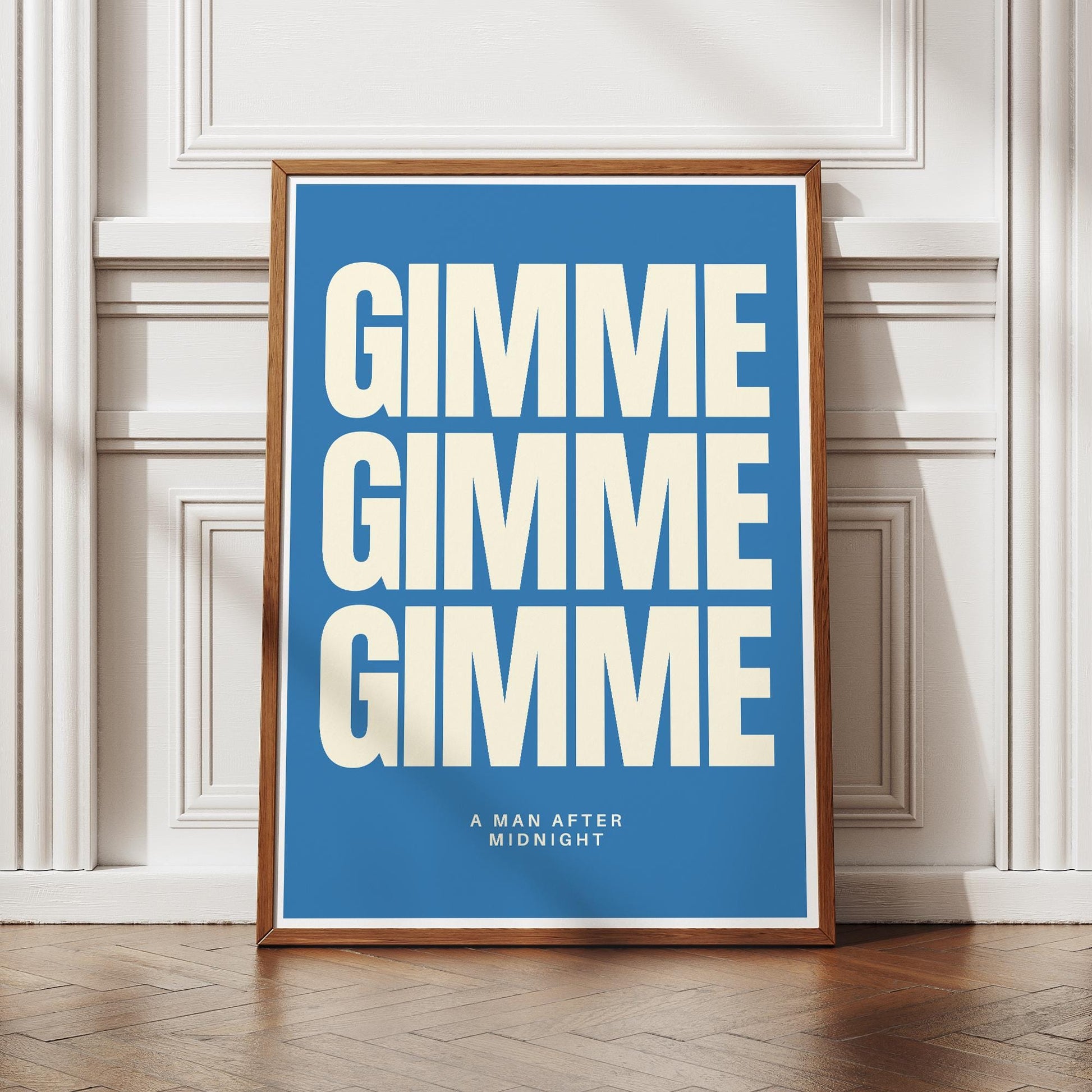 Gimme Gimme Gimme Bold Lyric Print: Retro 70s Pop Art Poster for Music Lovers Bold Typography Wall Art for Bedroom, Home Bar or Lounge