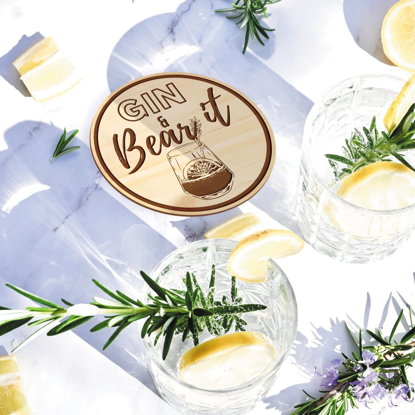 Gin & Bear It Coaster - Premium Engraved Gin Themed Wooden Coaster - Fun Home Decor, Barware, Small Gift For A Gin Lover - Gin/Alcohol quote