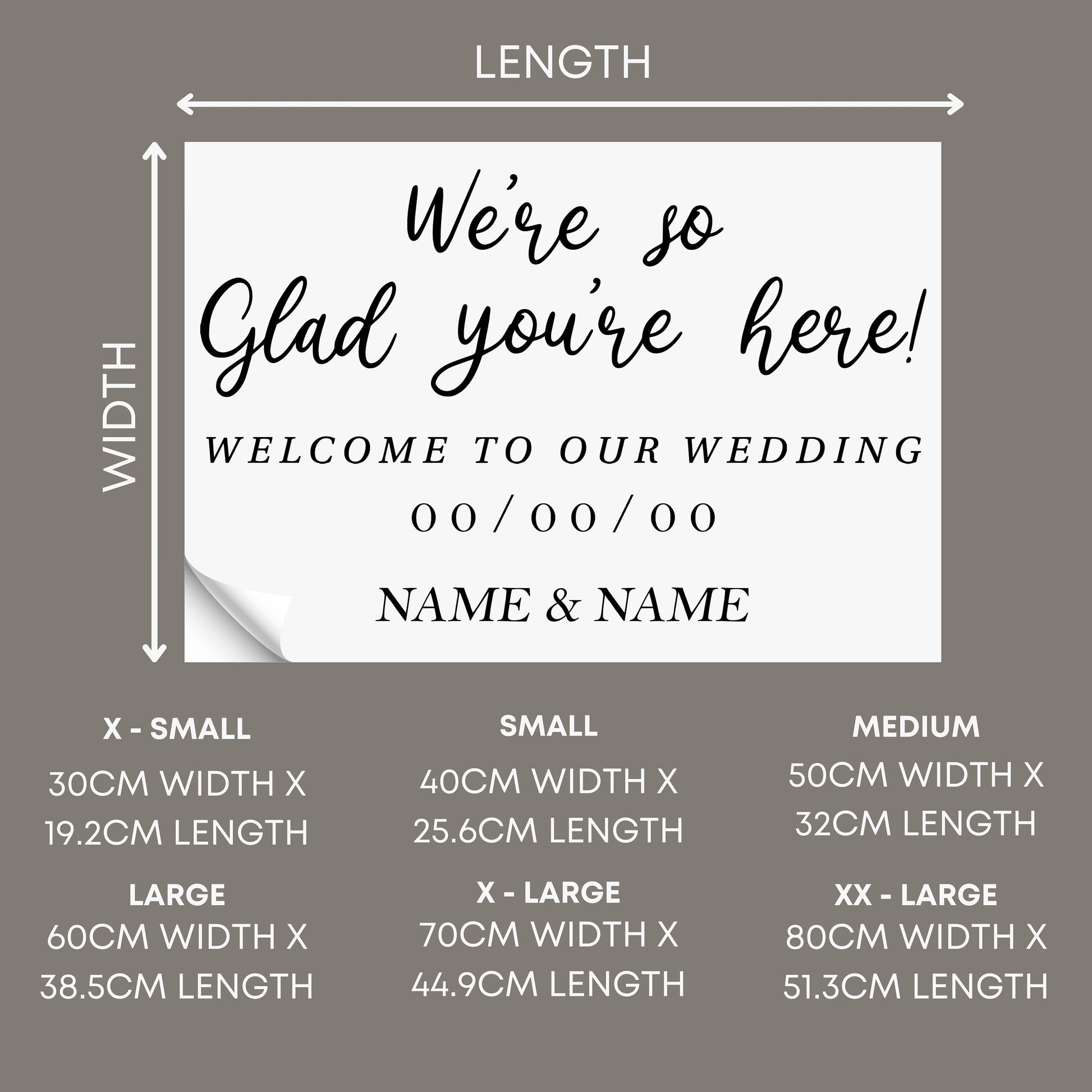 We‘re So Glad You‘re Here - Personalised wedding welcome sign vinyl label only - Sign is not included