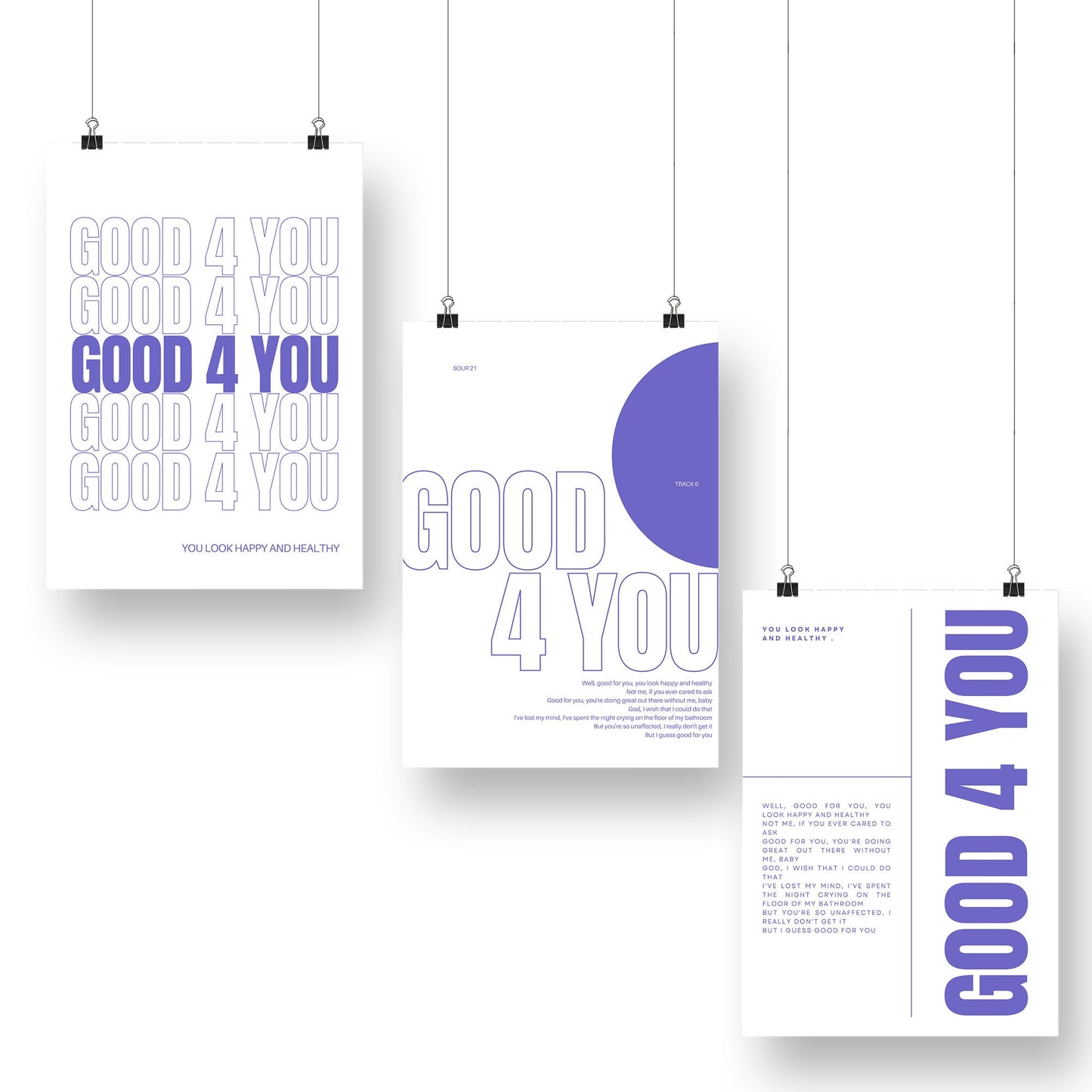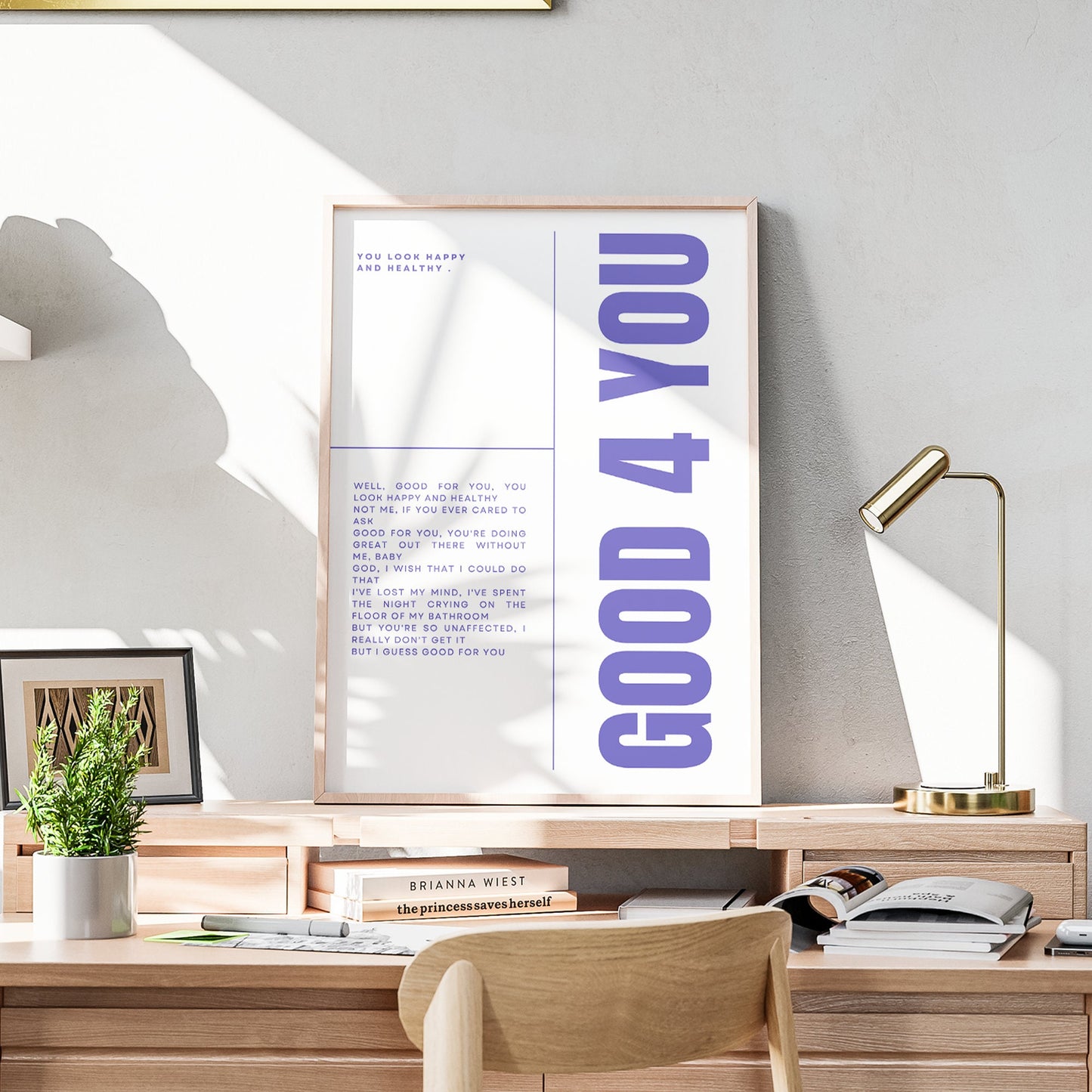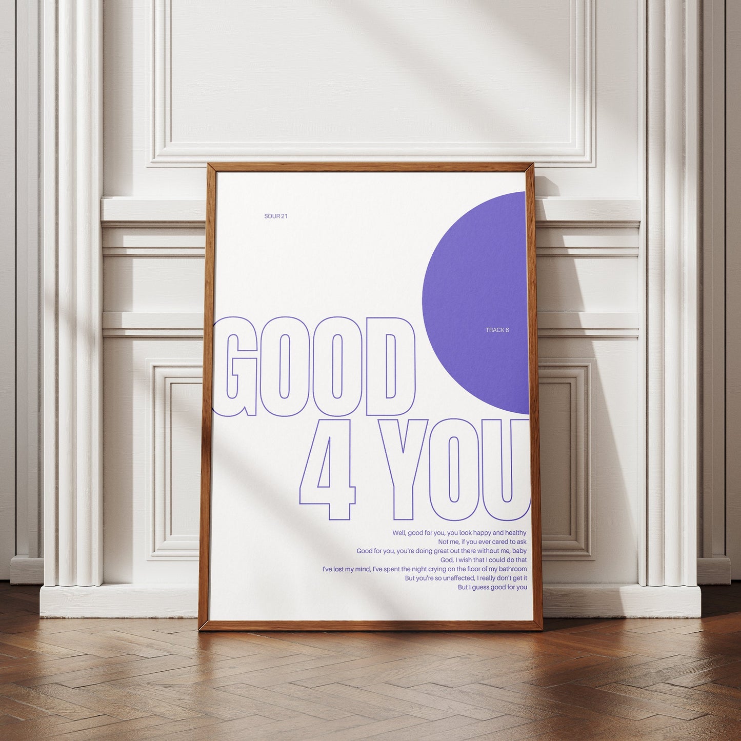 Good 4 You Typography Posters: Olivia Rodrigo Song-Inspired Gloss Print, Quote Poster, Home Decor, Lyric Art, Music Lover, Purple Themed