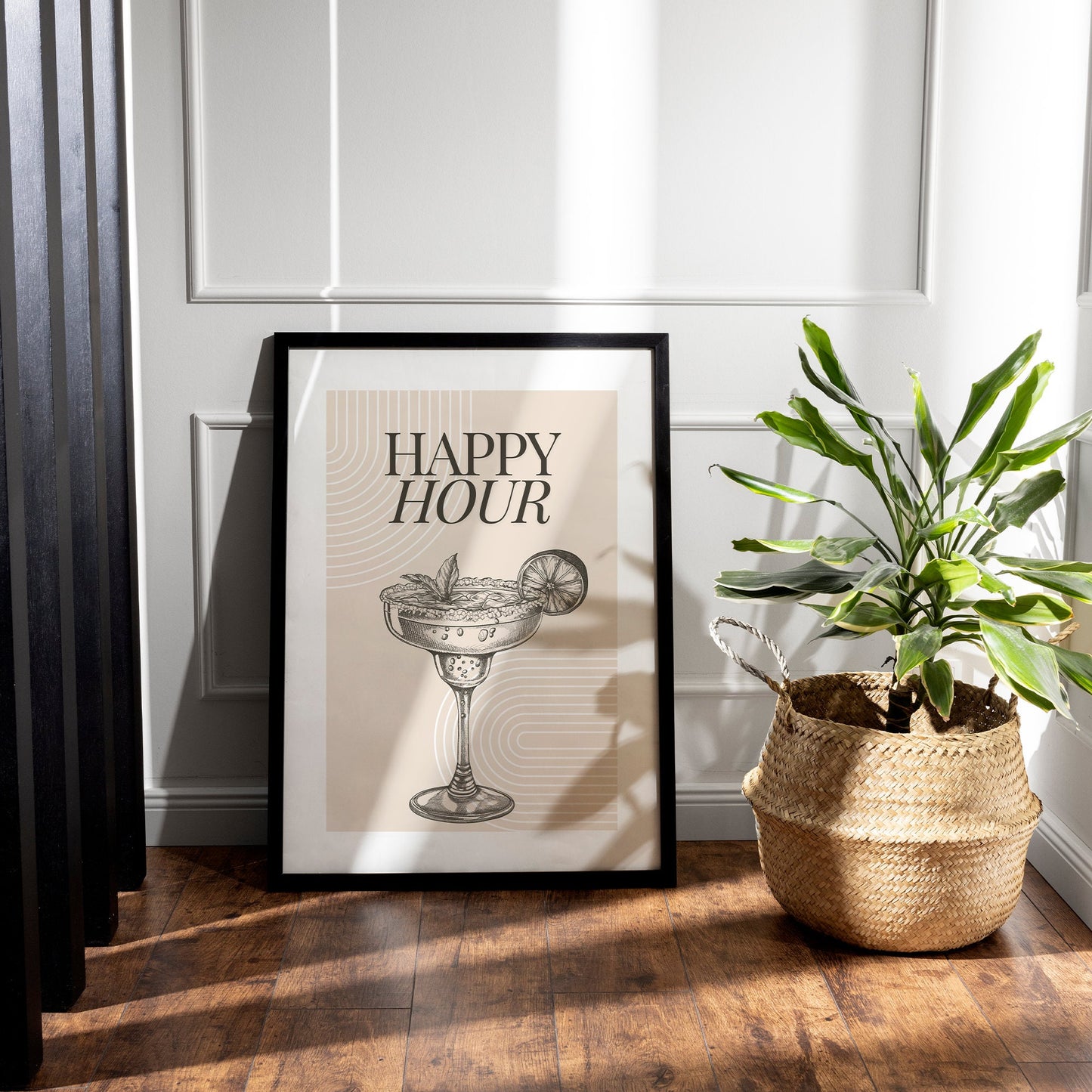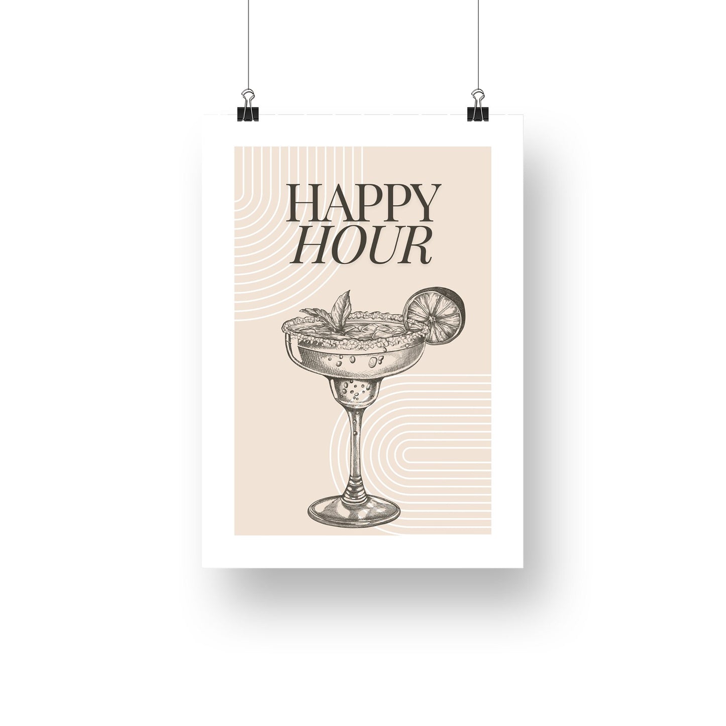 "Transform your space into a vibrant hub of social gatherings and joyous moments with our Happy Hour Poster! Whether you‘re a cocktail enthusiast, a lover of good times, or a bar owner looking to spruce up your venue, this poster is the perfect addition to any setting.