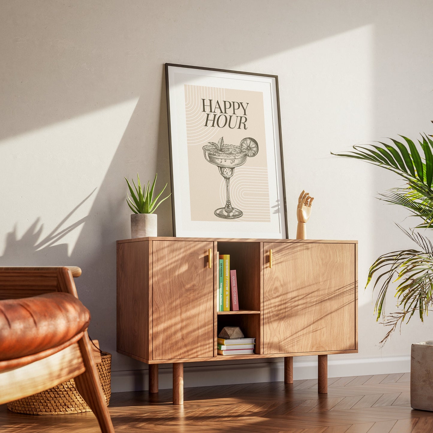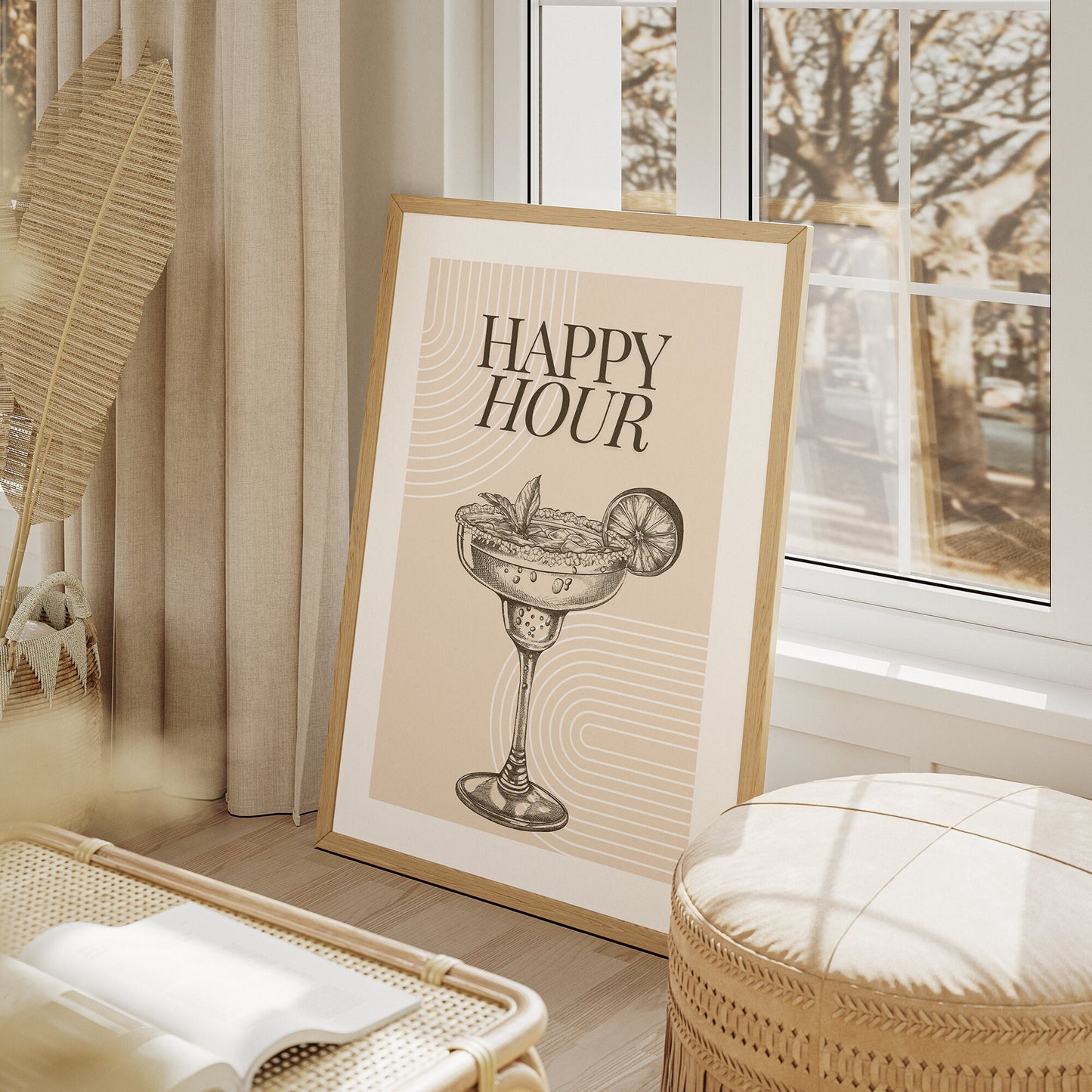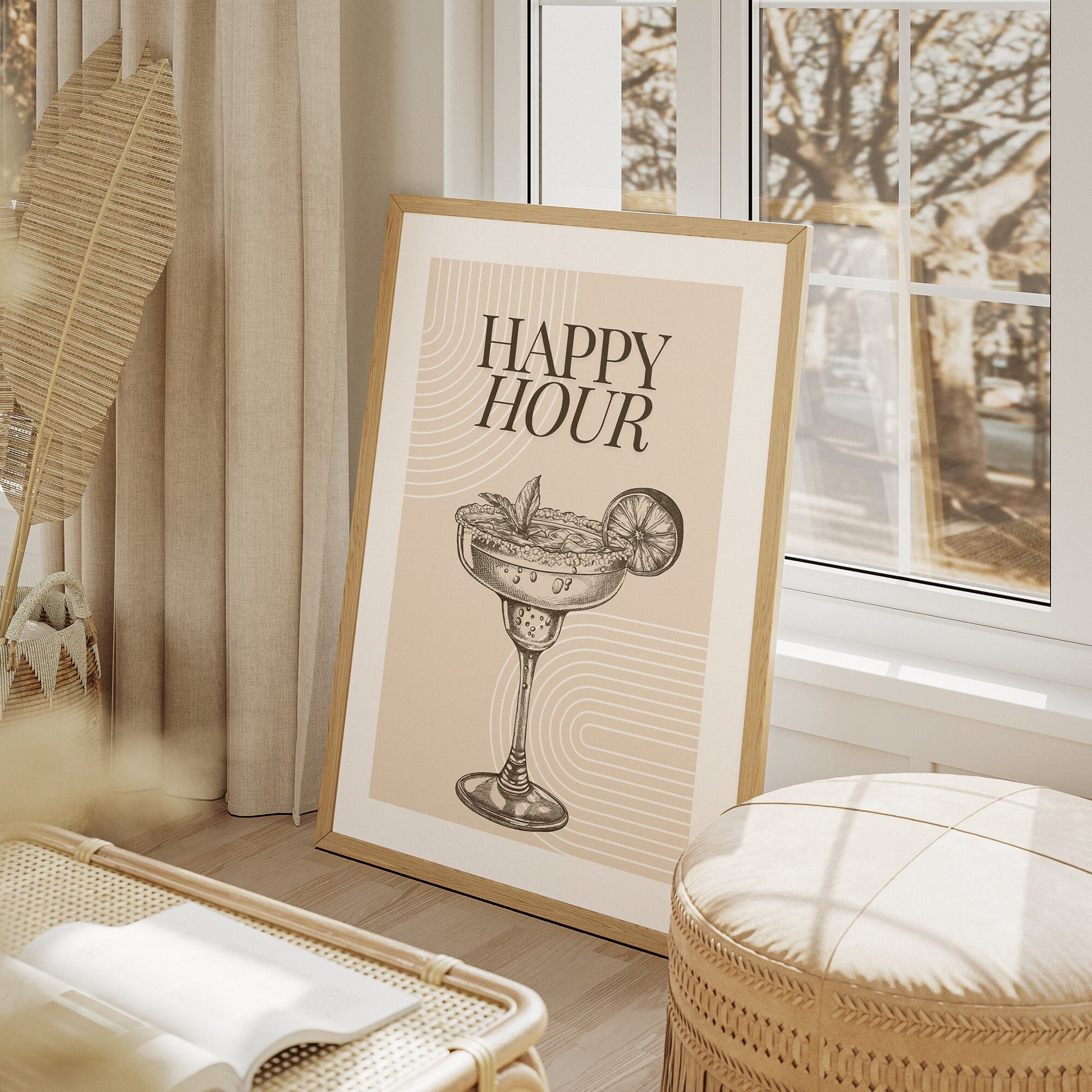 Happy Hour - Bauhaus Poster: Home Bar, Modern Home Decor, Cool Print, Kitchen Decor, Wall Art, Cocktail Lover, Happy Hour Wall Art