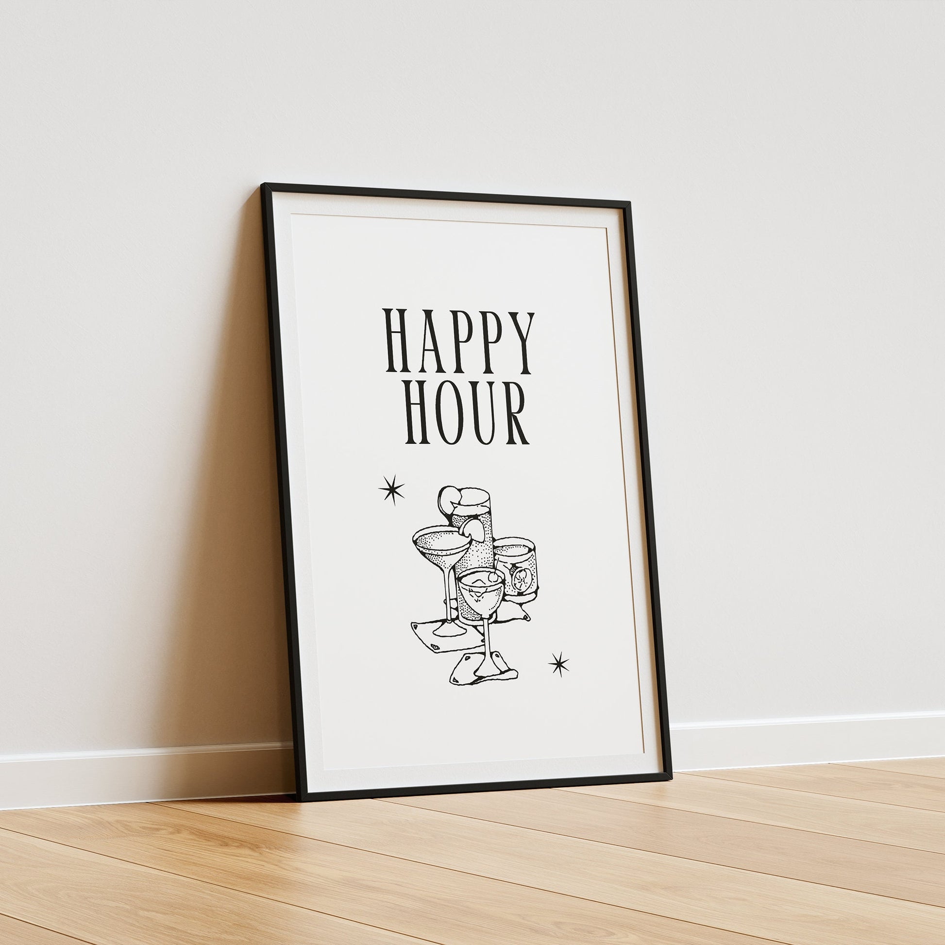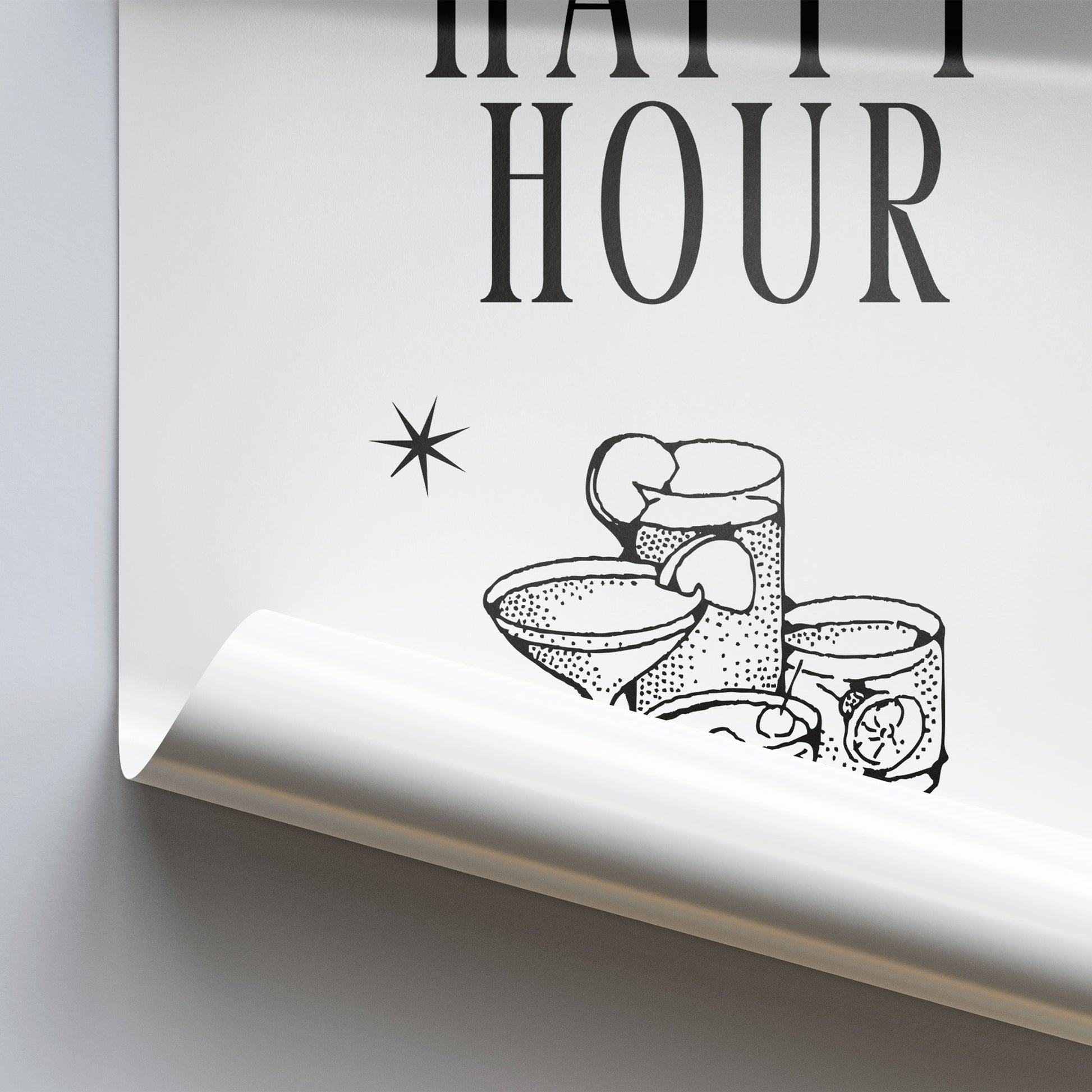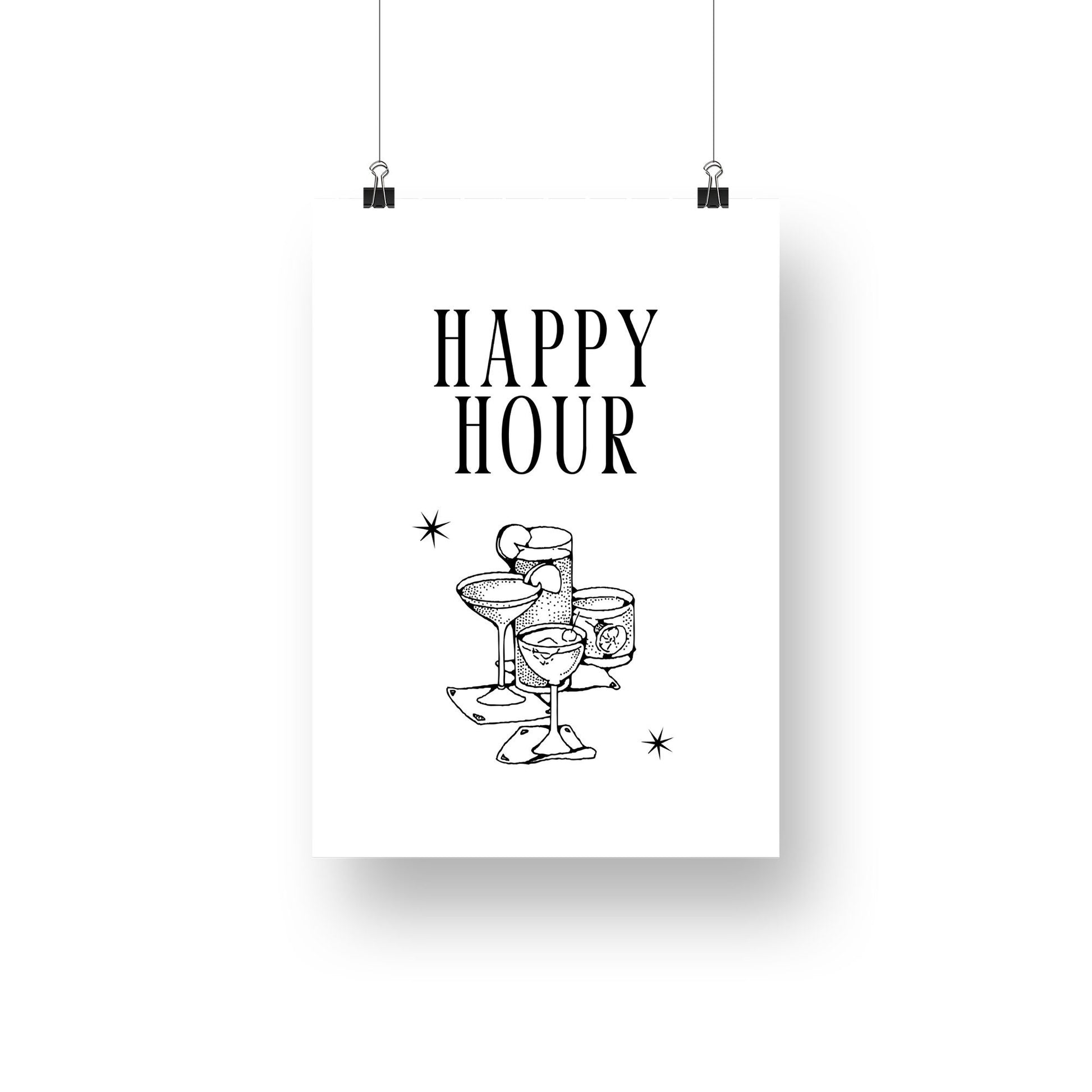 "Transform your space into a vibrant hub of social gatherings and joyous moments with our Happy Hour Poster! Whether you‘re a cocktail enthusiast, a lover of good times, or a bar owner looking to spruce up your venue, this poster is the perfect addition to any setting.