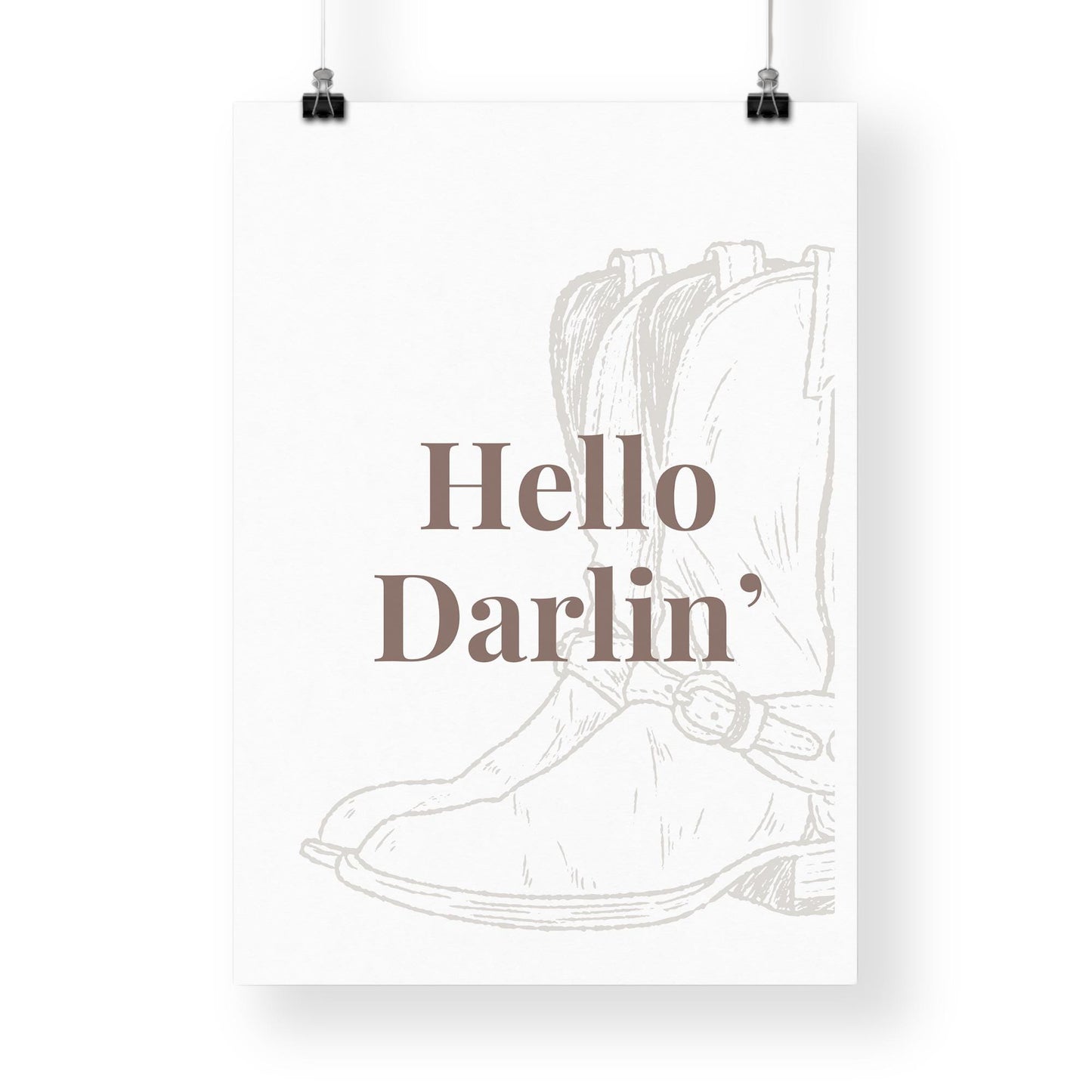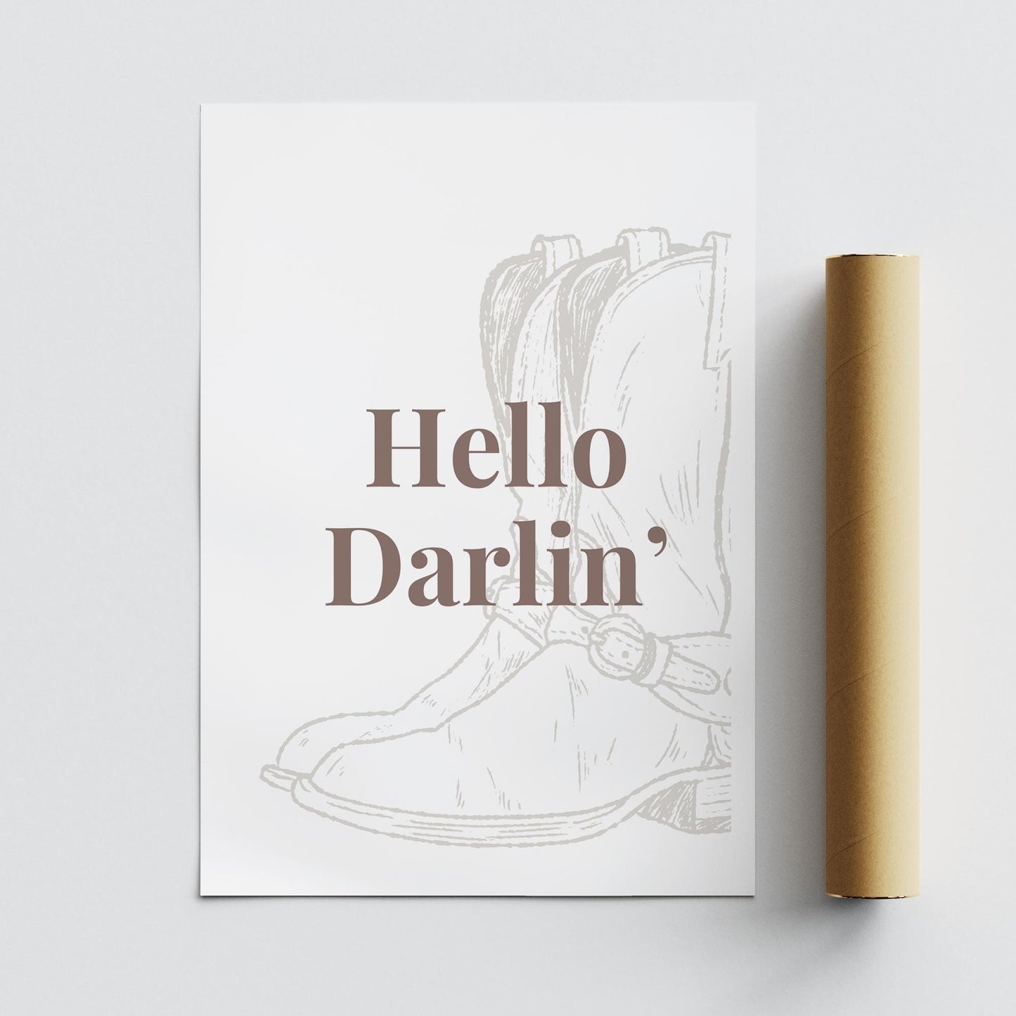 Hello Darlin' - 04 Poster: Western-Themed Print, Rustic Southern Wall Art, Cowboy Aesthetic, Minimalistic Home Decor, Country Living Poster