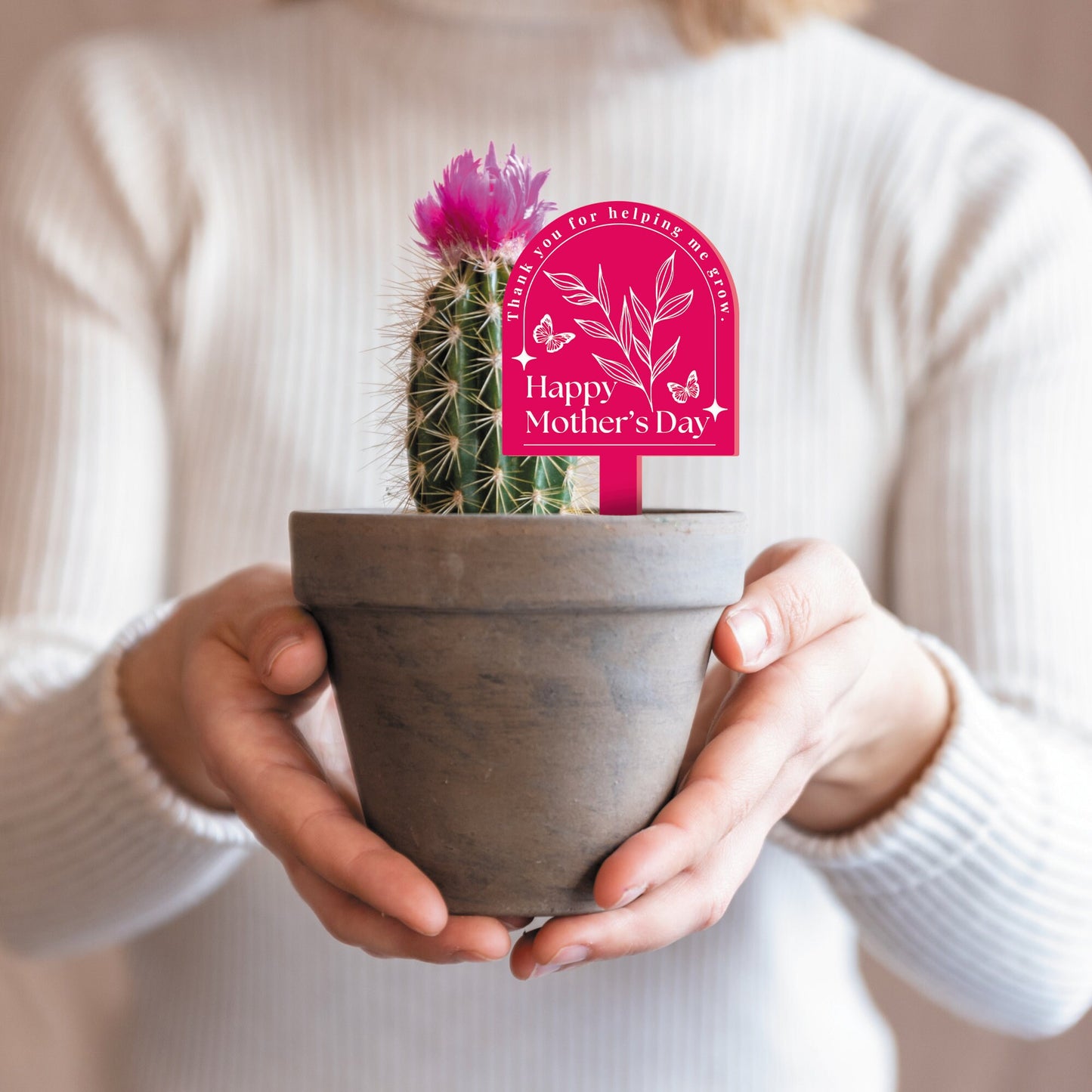Celebrate the nurturing presence of your mum with our "Thank you for helping me grow" engraved acrylic plant plaque. This Mother‘s Day, give her a unique and heartfelt gift that beautifully complements her love for plants.