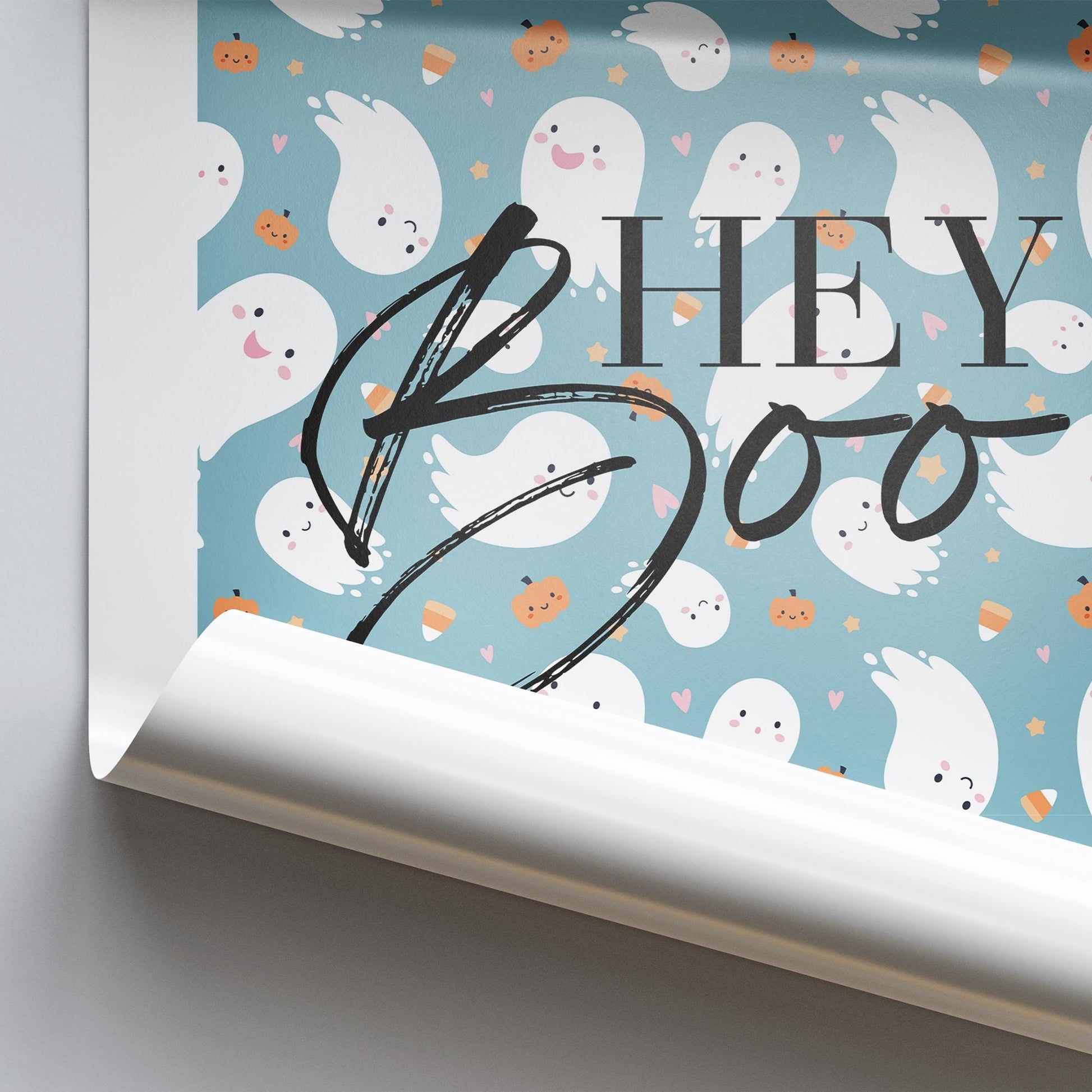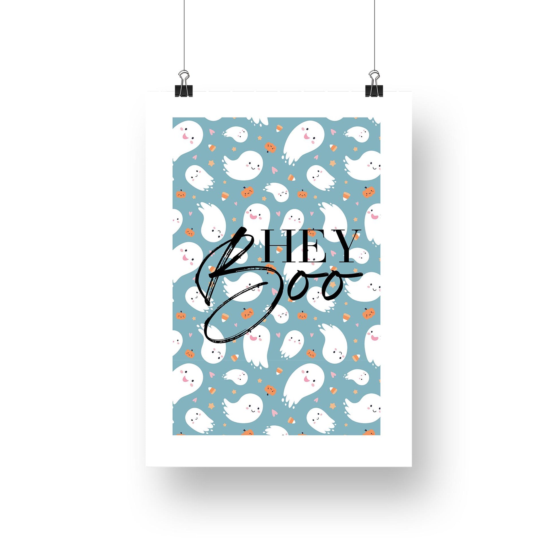 Get into the Halloween spirit with our "Hey Boo" Halloween Poster! This playful and charming piece of wall art adds just the right amount of spookiness to your Halloween decor. Featuring a whimsical ghost design with the phrase "Hey Boo," this poster is perfect for those who love a blend of cute and creepy.