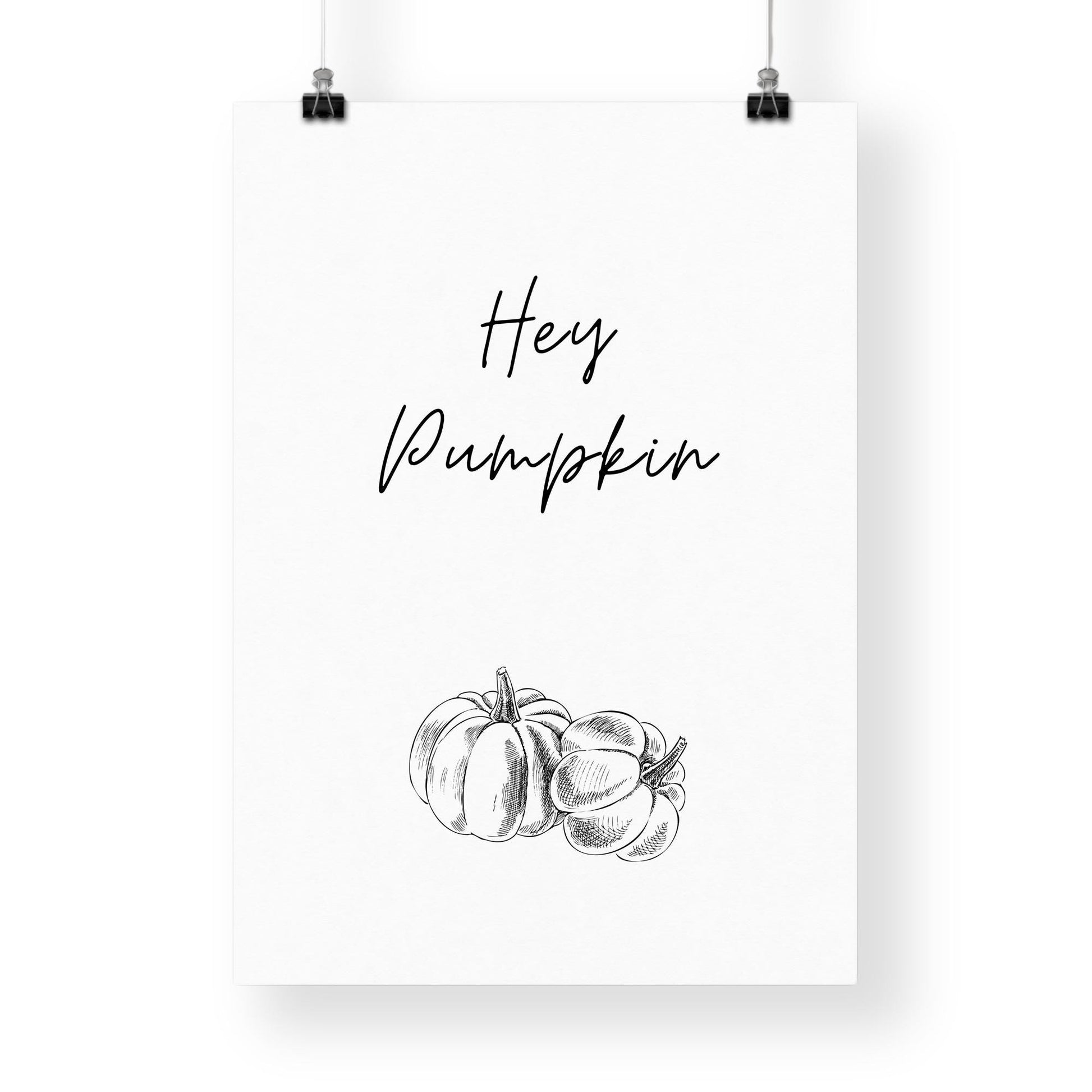 Add a touch of autumn charm to your home with our "Hey Pumpkin" poster. Perfect for the fall season and Halloween, this delightful wall art brings warmth and a cosy vibe to any room. Whether you‘re decorating for a spooky Halloween party or simply love the beauty of autumn, this poster is a must-have for your seasonal decor. Available in sizes A1 to A5, the "Hey Pumpkin" poster is printed on high-quality paper, ensuring vibrant colours and crisp text.