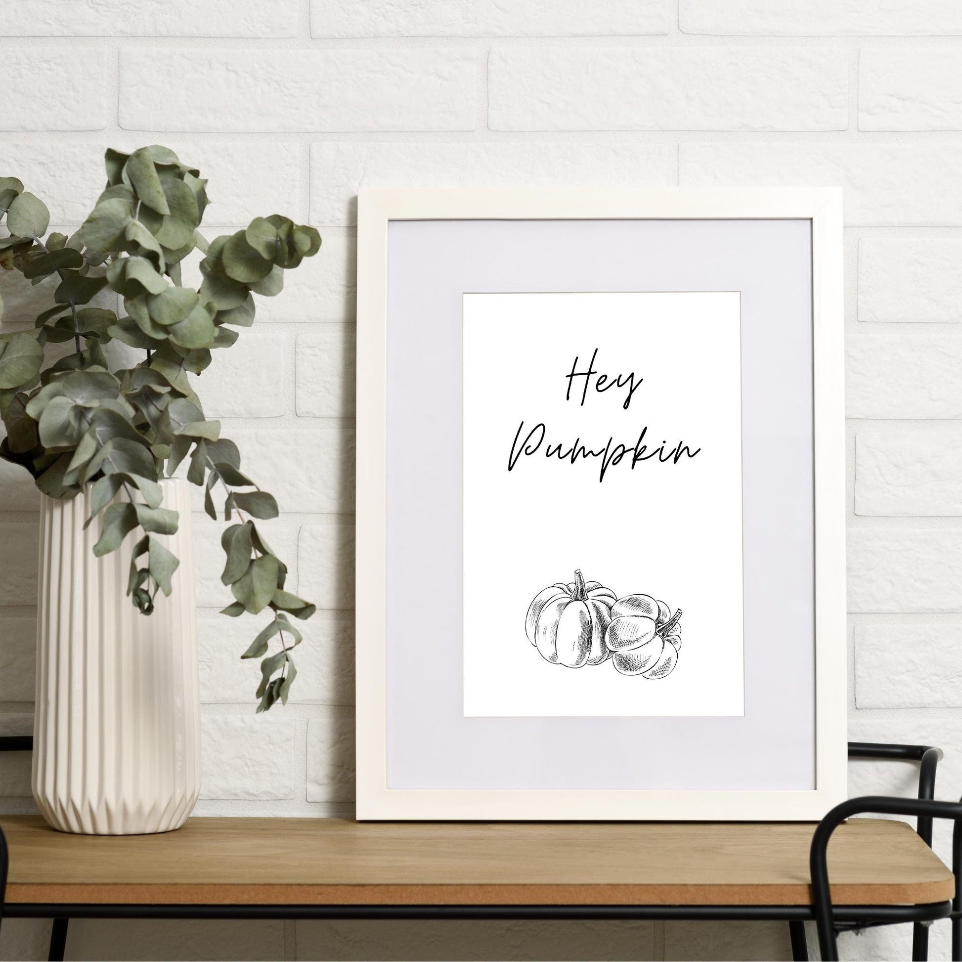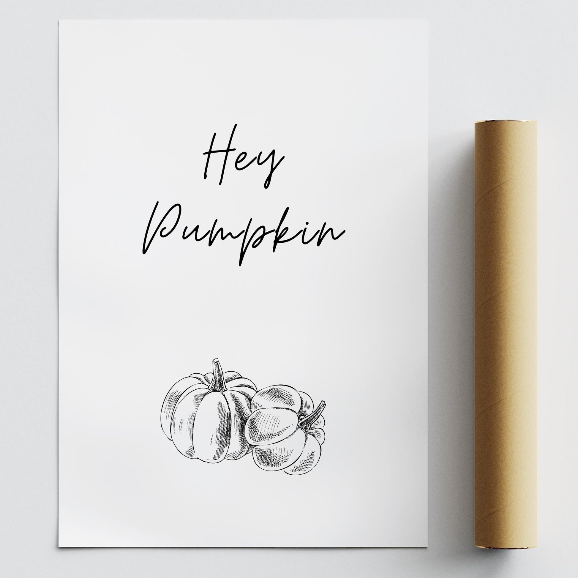 Hey Pumpkin Poster - 01 Poster: Pumpkin Print, Cute Halloween Decoration, Neutral Home Decor, Fall Wall Art, Cosy Autumnal Home Decor Gift
