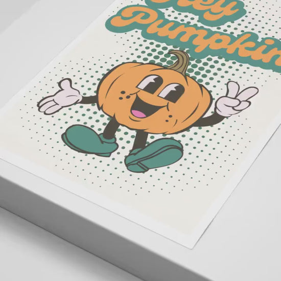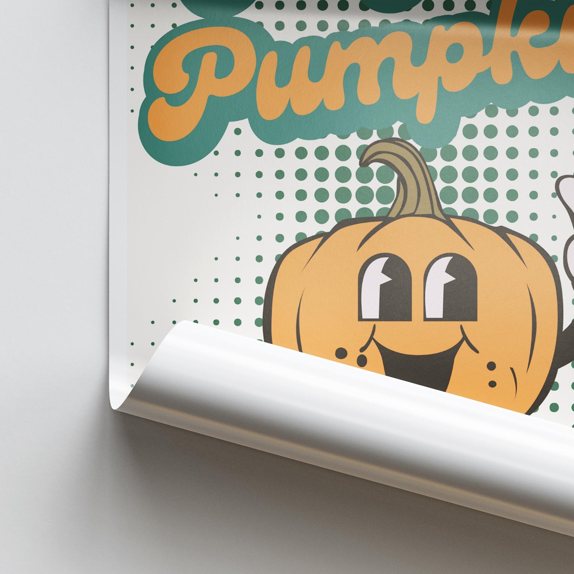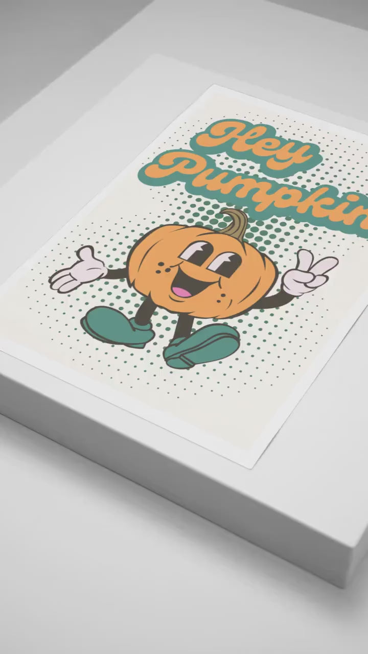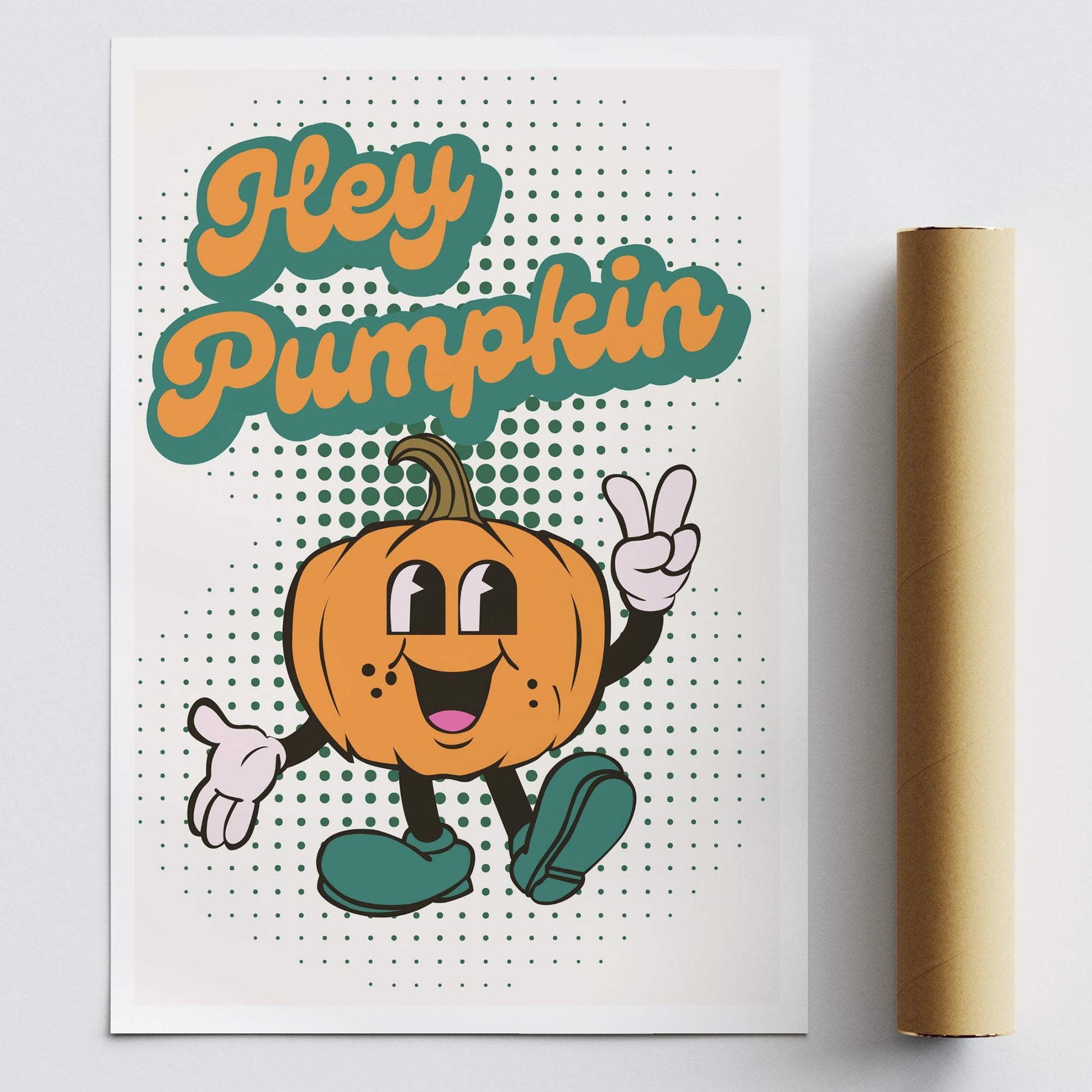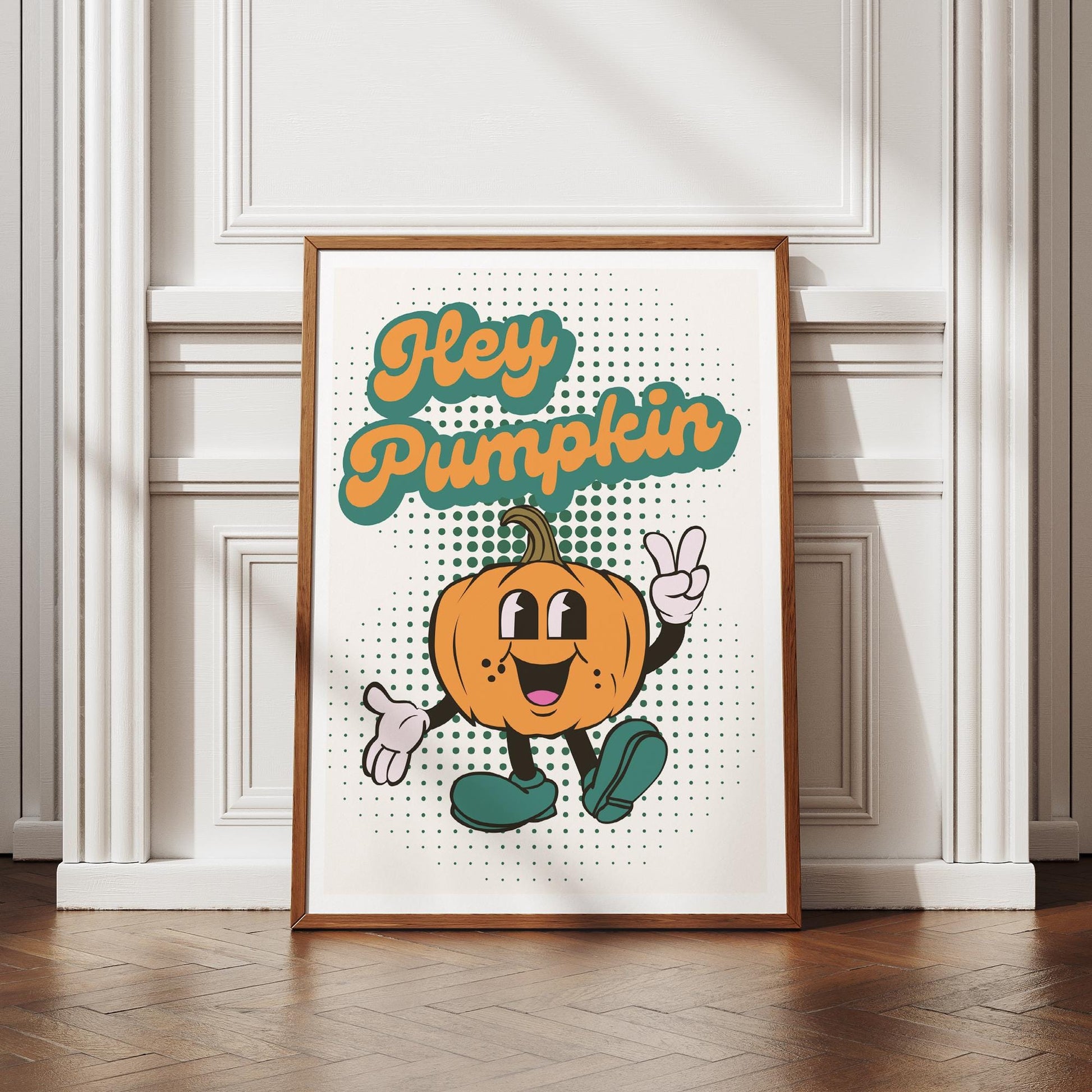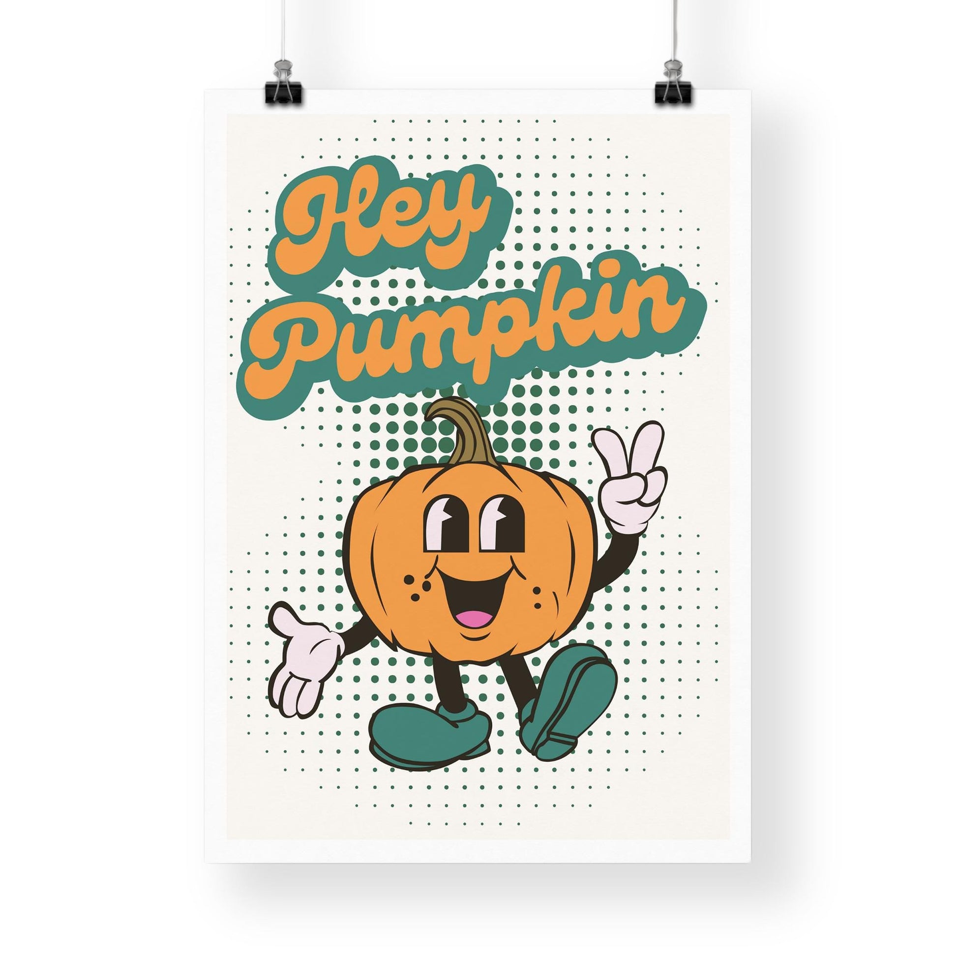 Hey Pumpkin Poster - 03 Poster: Retro Pumpkin Print, Cute Halloween Decoration, Seasonal Decor, Fall Wall Art, Cosy Autumnal Home Decor Gift