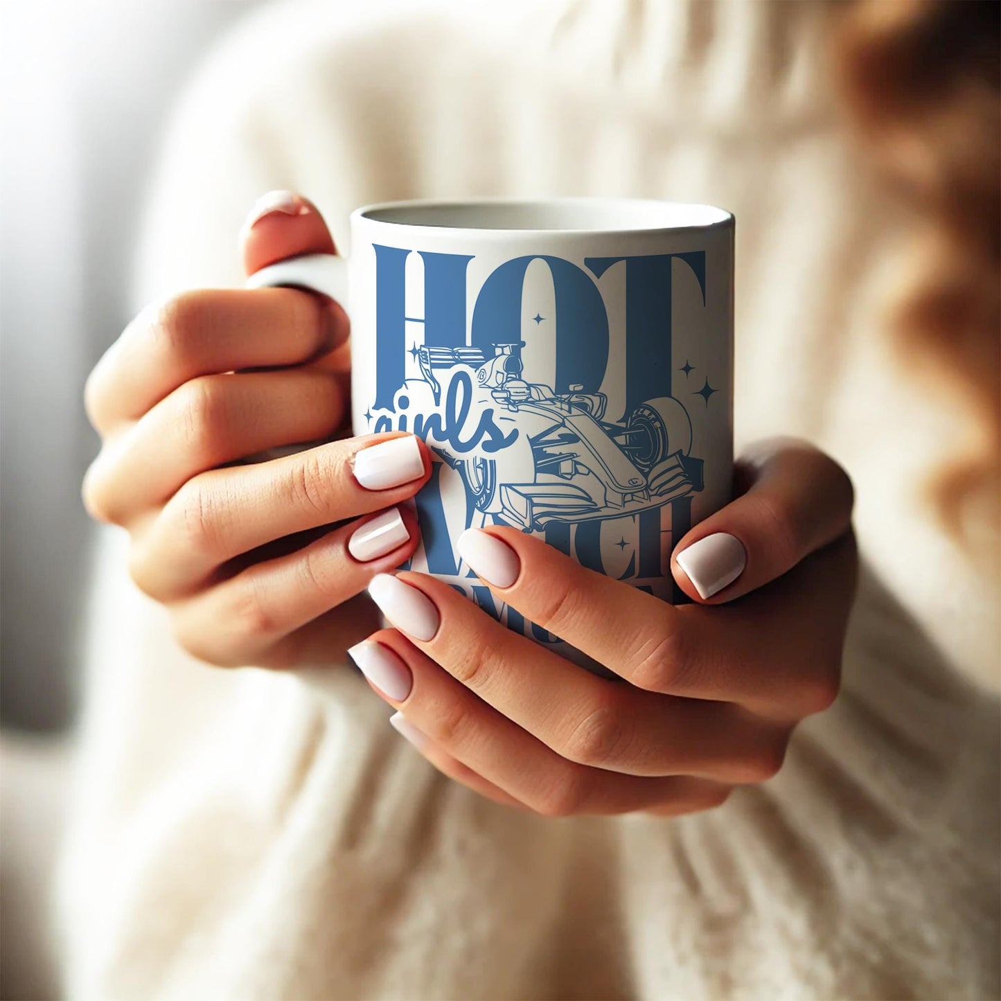 Calling all Formula 1 enthusiasts! Show off your passion for racing with this stylish and sassy "Hot Girls Watch Formula 1" mug. Whether you‘re sipping your morning coffee or enjoying an evening tea during race weekends, this mug is the perfect companion for fans who know that speed and style go hand in hand.