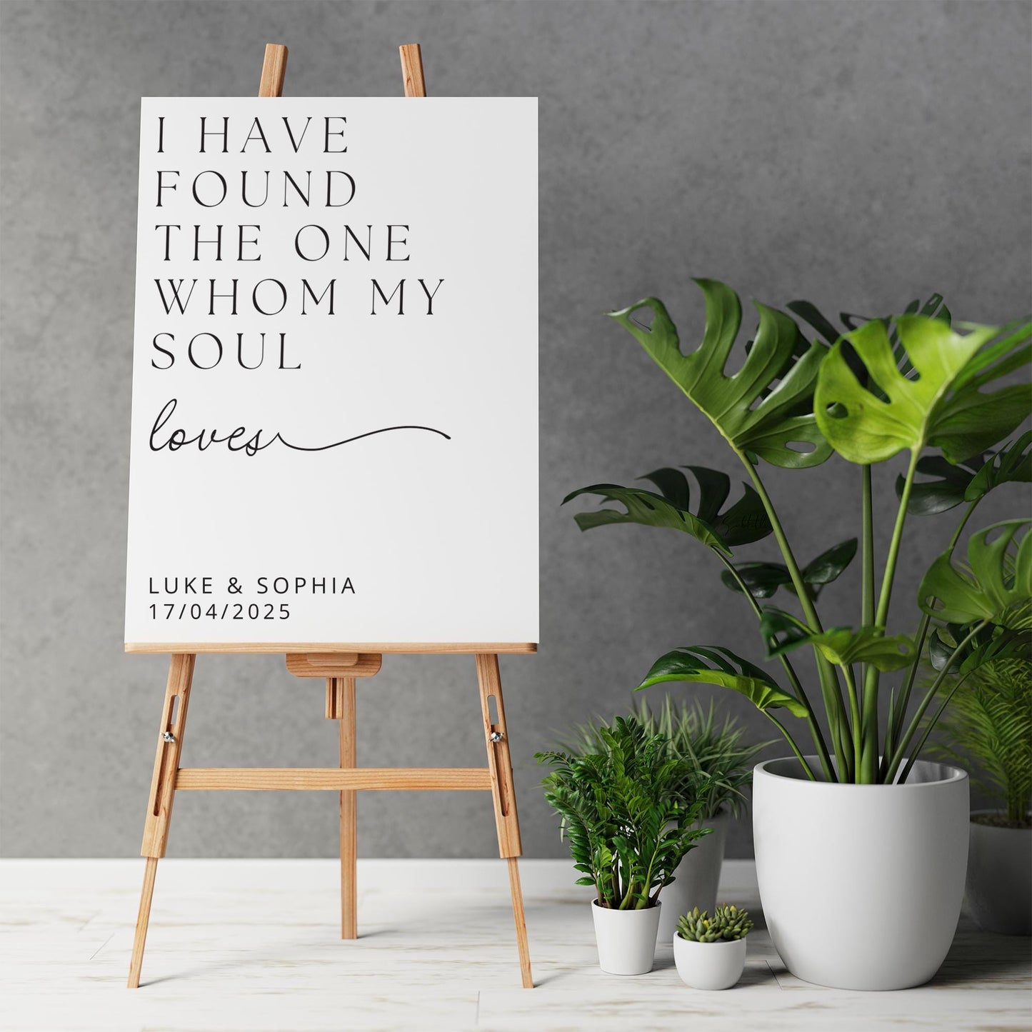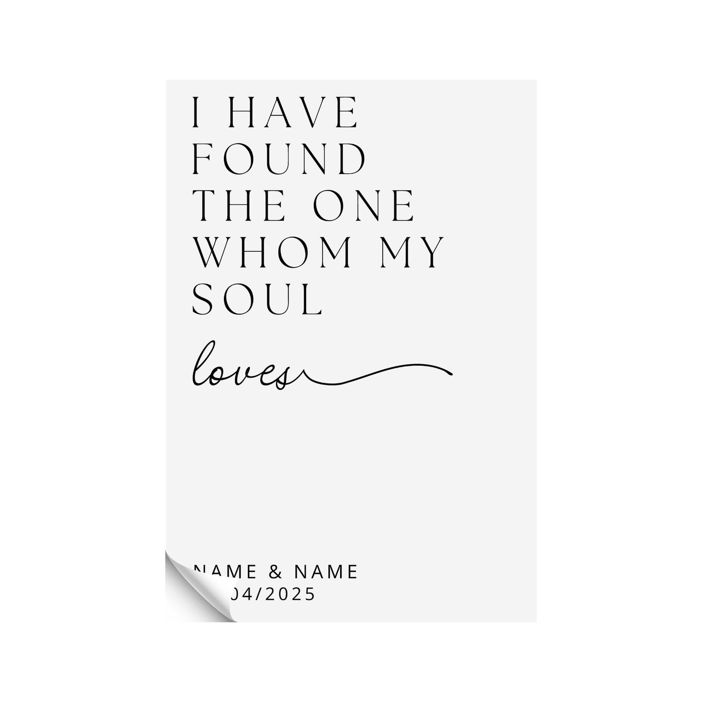 Welcome your guests with love and elegance on your special day! Our beautifully crafted custom wedding sign features the timeless quote, "I have found the one whom my soul loves," making it the perfect addition to your ceremony or reception.