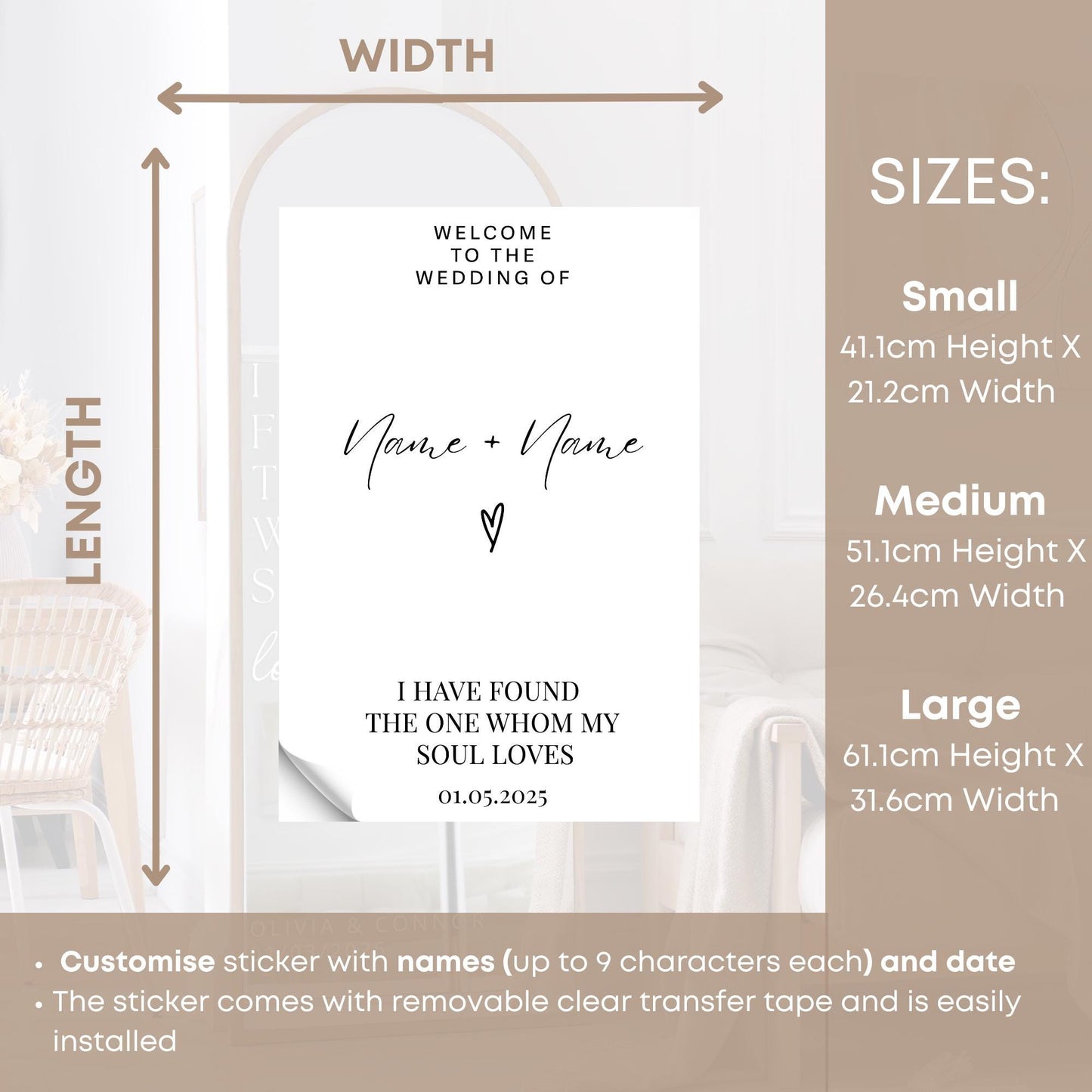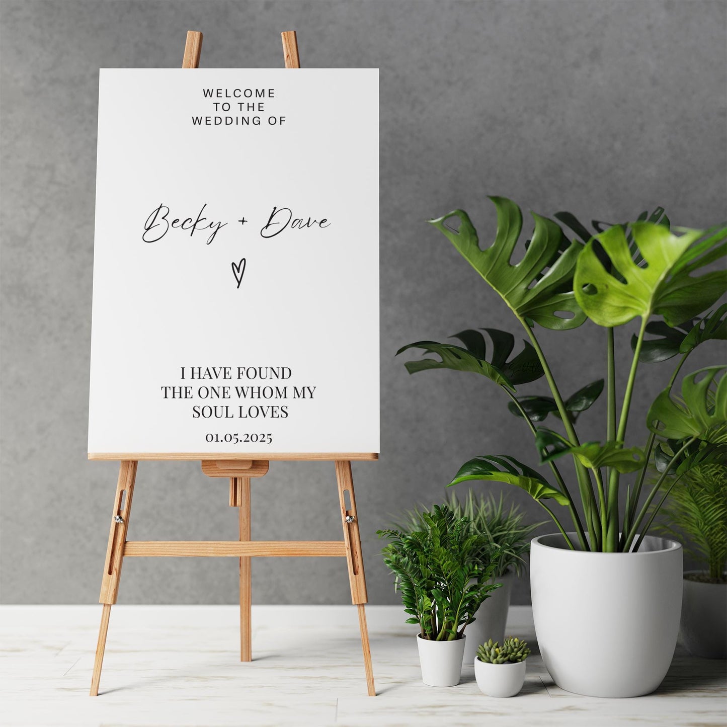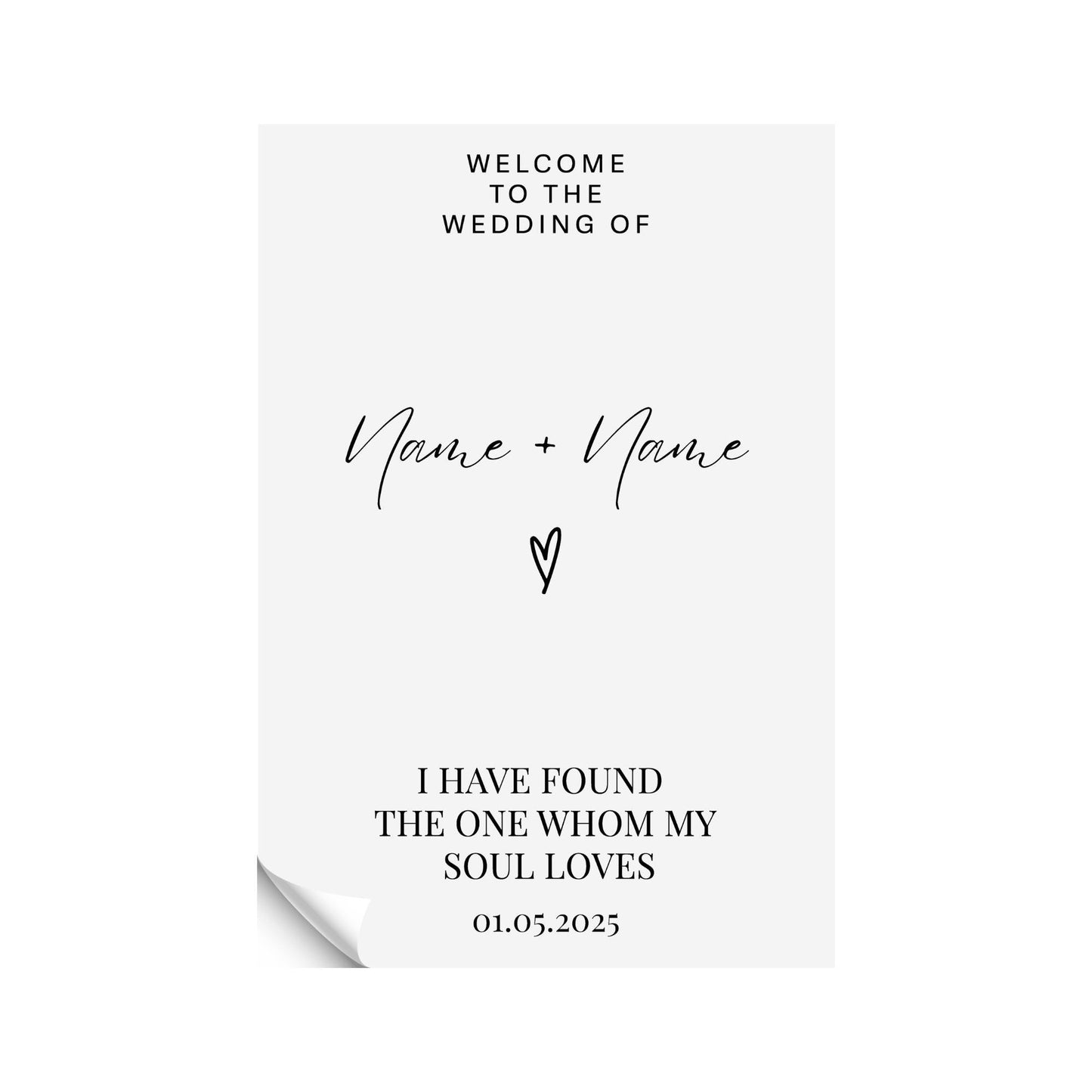 Welcome your guests with love and elegance on your special day! Our beautifully crafted custom wedding sign features the timeless quote, "I have found the one whom my soul loves," making it the perfect addition to your ceremony or reception.