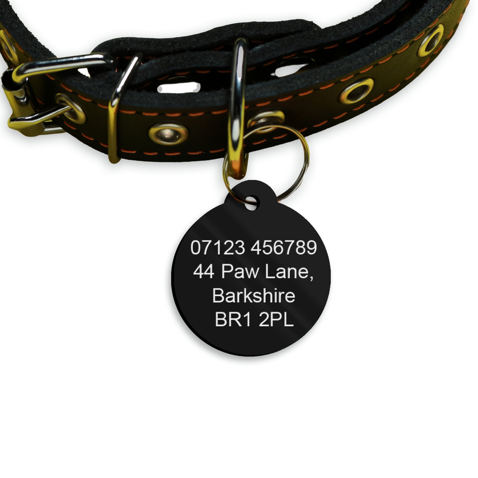 This tag ensures your furry friend‘s safety by allowing you to add up to 56 characters of vital contact information, spread over 4 lines (14 characters per line).