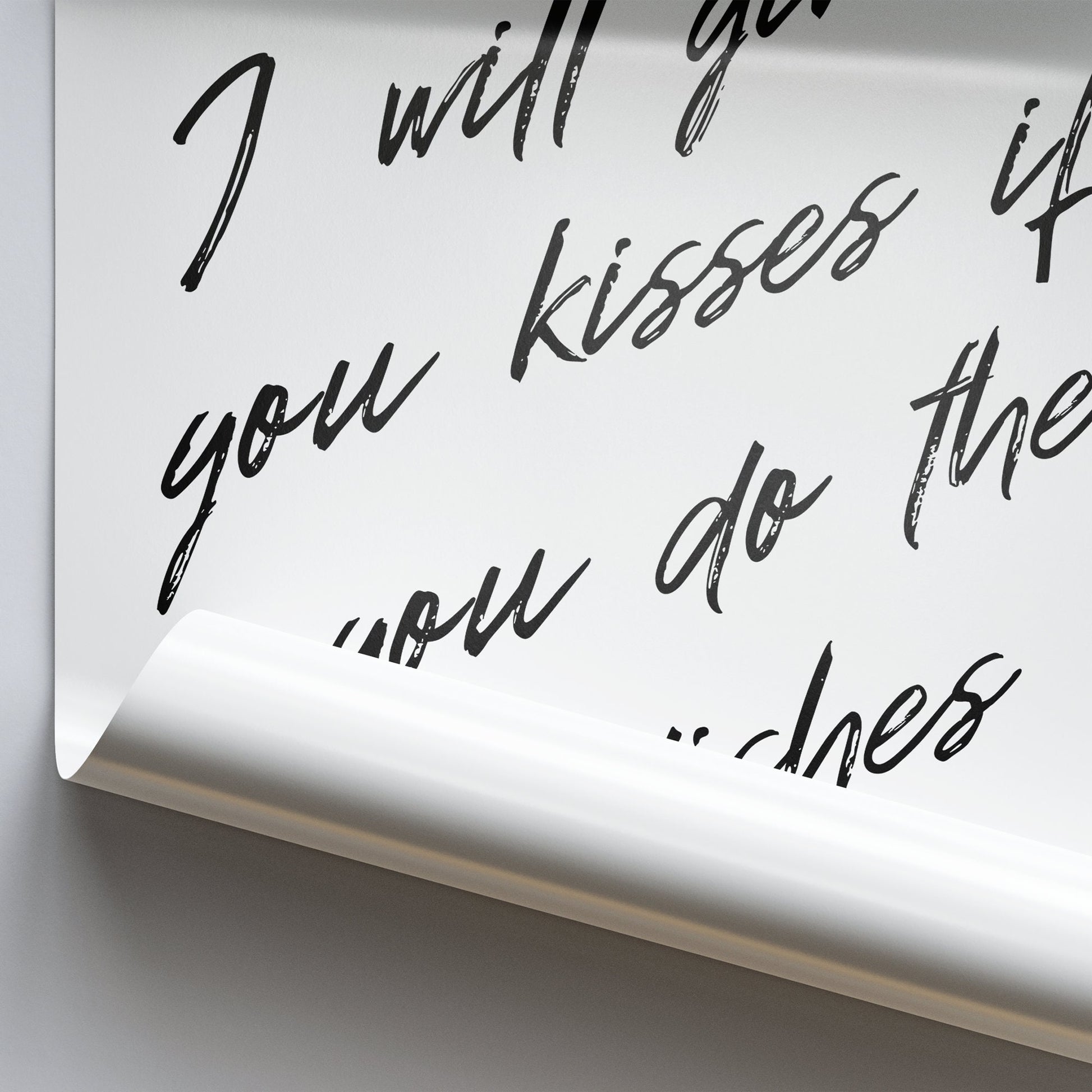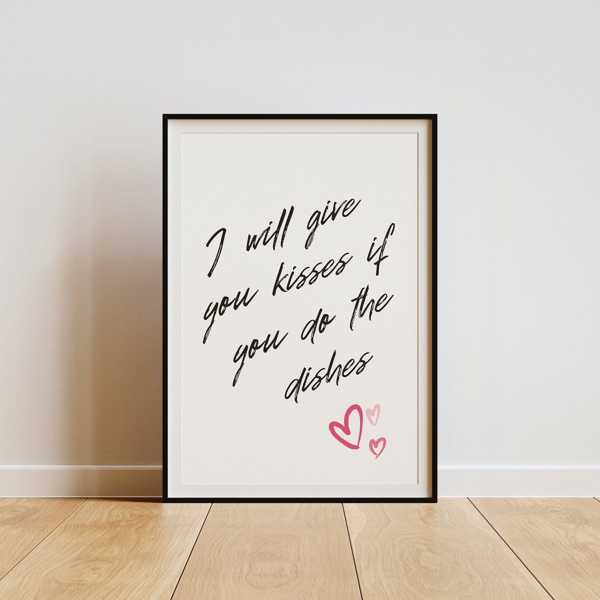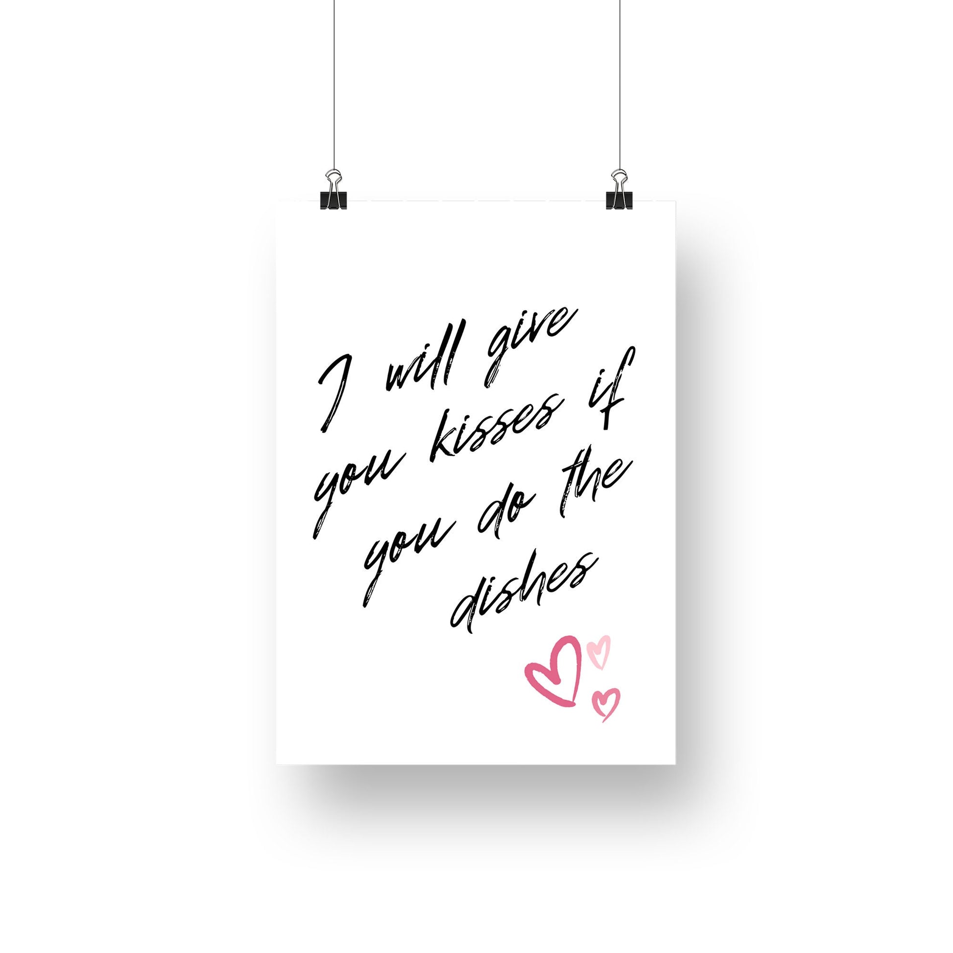 I Will Give You Kisses If You Do The Dishes Poster, Small Quote, Kitchen Poster,Home Decor, Kitchen Wall Art, Kitchen Art, Funny Poster