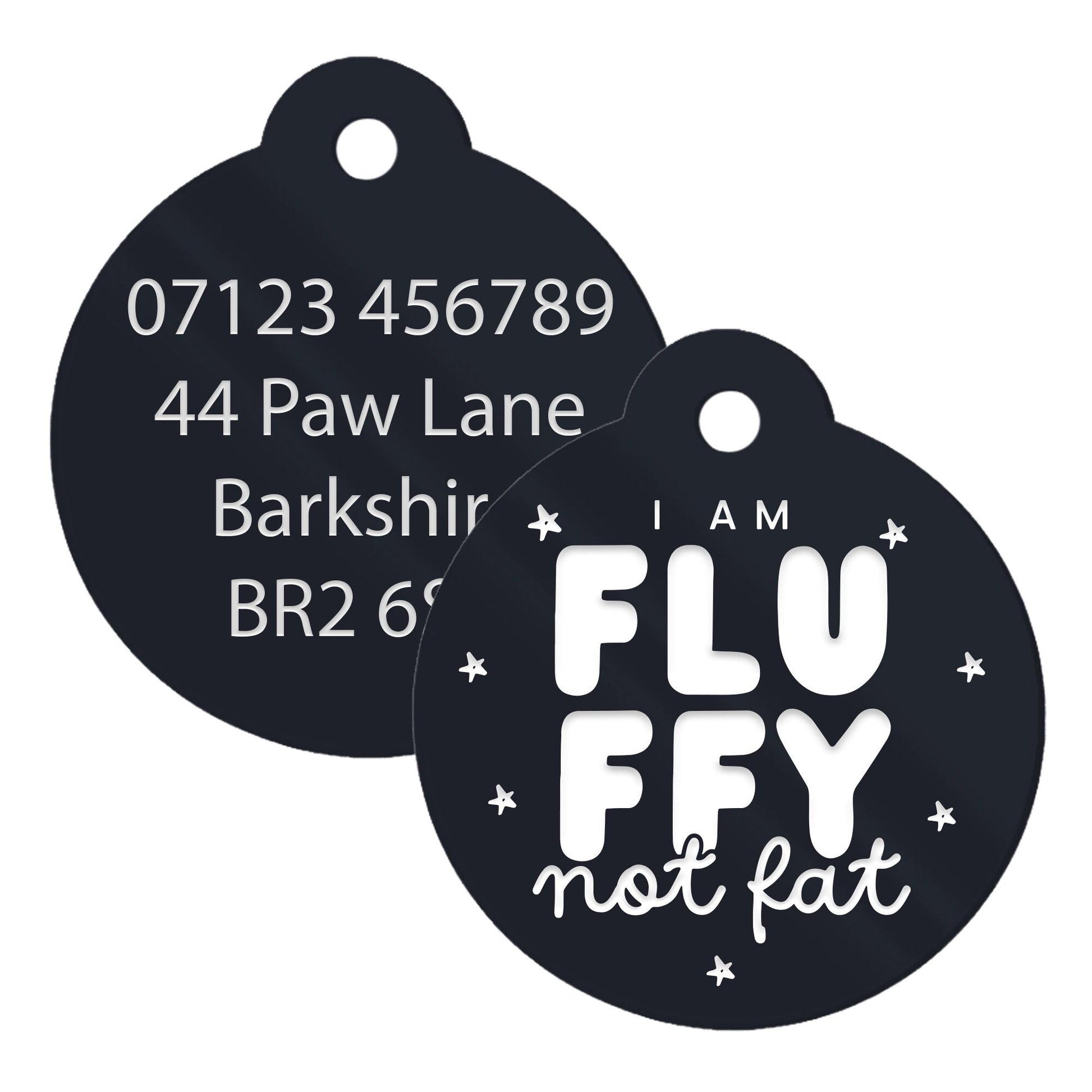 I'm Fluffy Not Fat - Personalised Dog Collar ID Tag: Custom Pet Safety Accessories, Cheeky Unique Gift For Dog, Hilariously Unique Pet ID