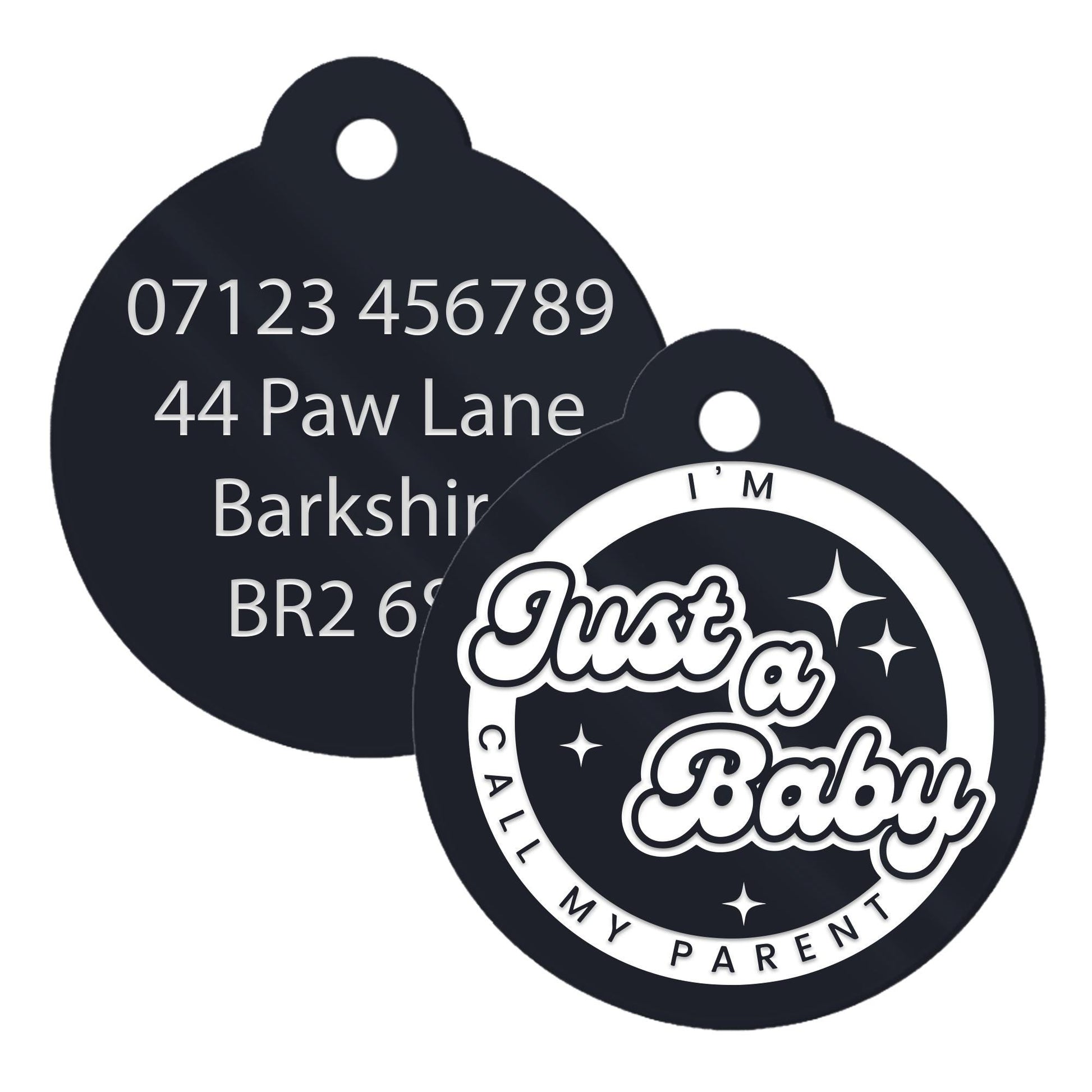 I'm Just A Baby - Stars Personalised Dog ID Collar Tag: Fun Custom Pet Safety Accessories, New Pet Essentials, Unique Gift For Dog
