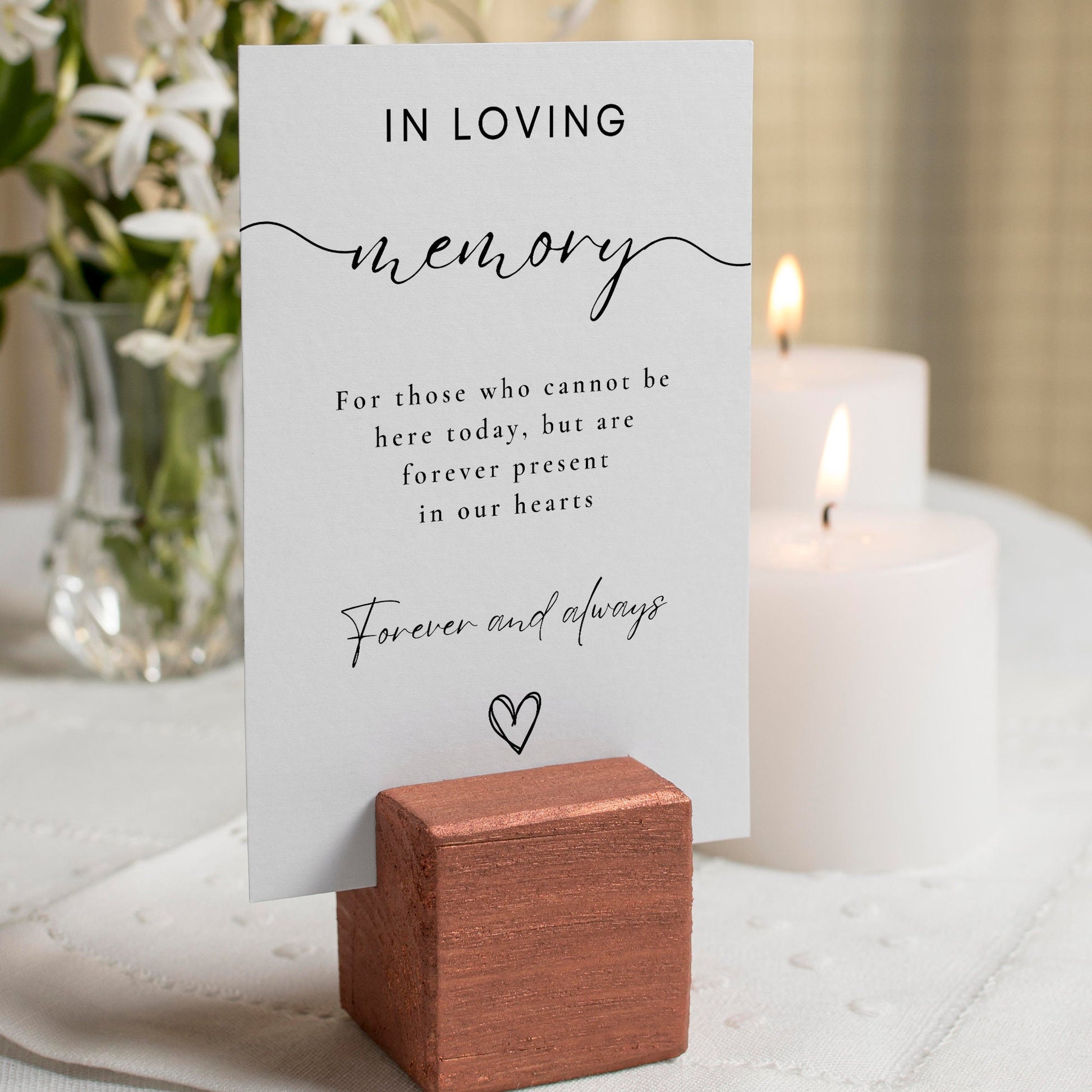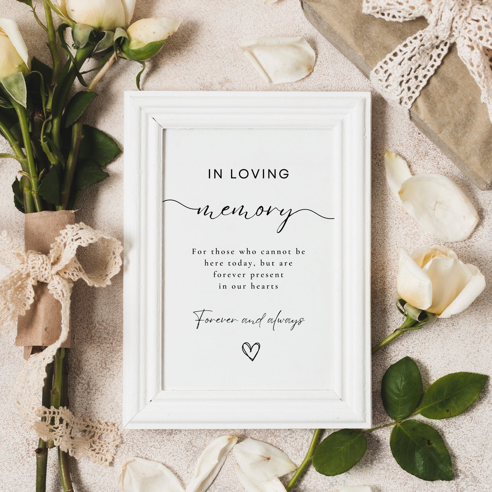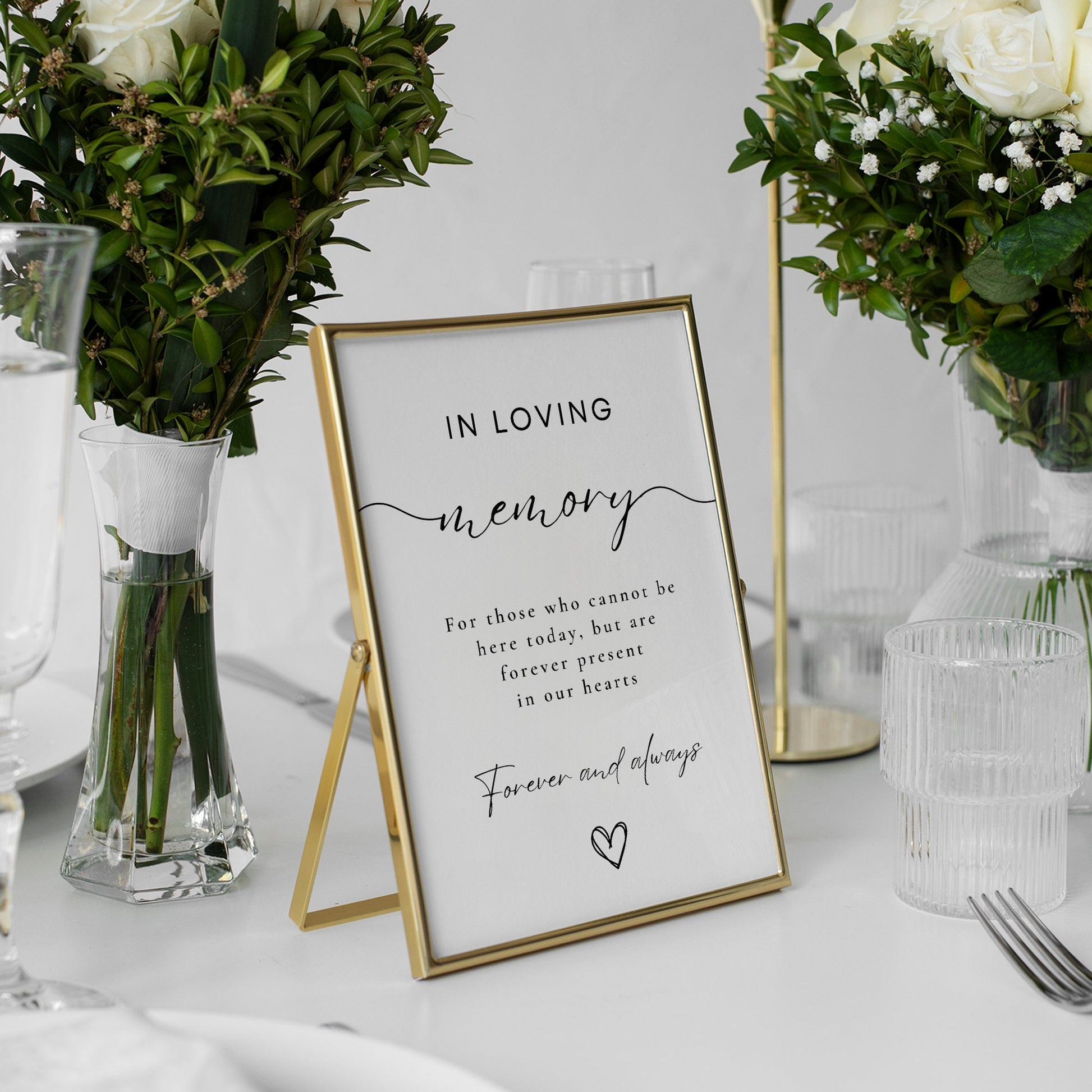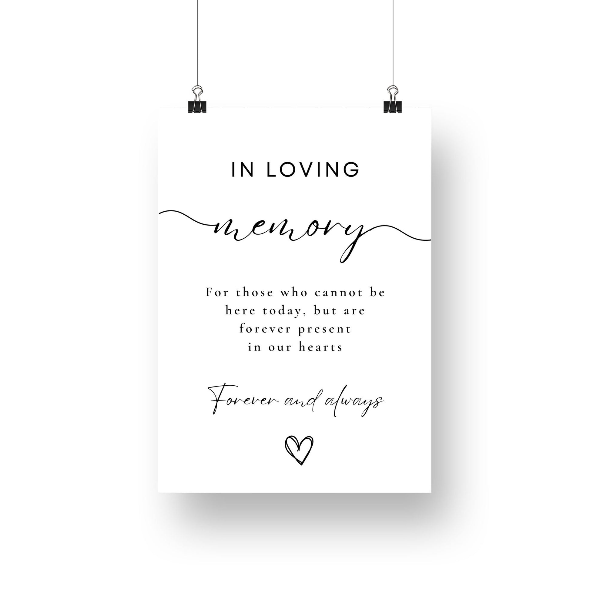 Commemorate your loved ones with our "In Loving Memory" wedding sign, a beautiful tribute to those who cannot be with you today but remain forever present in your heart. This elegant sign serves as a heartfelt reminder, ensuring their memory is a cherished part of your special day.