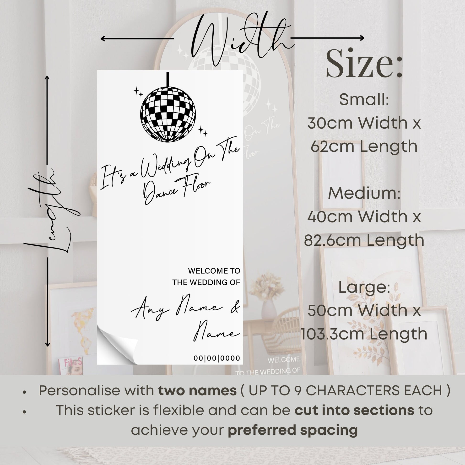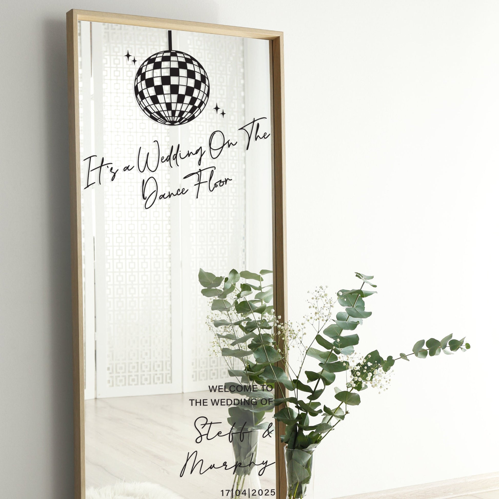 It's A Wedding On The Dance Floor - Personalised Name And Date DIY Mirror Decal, Wedding Party Decor, Photos & Selfie, Disco Ball Design