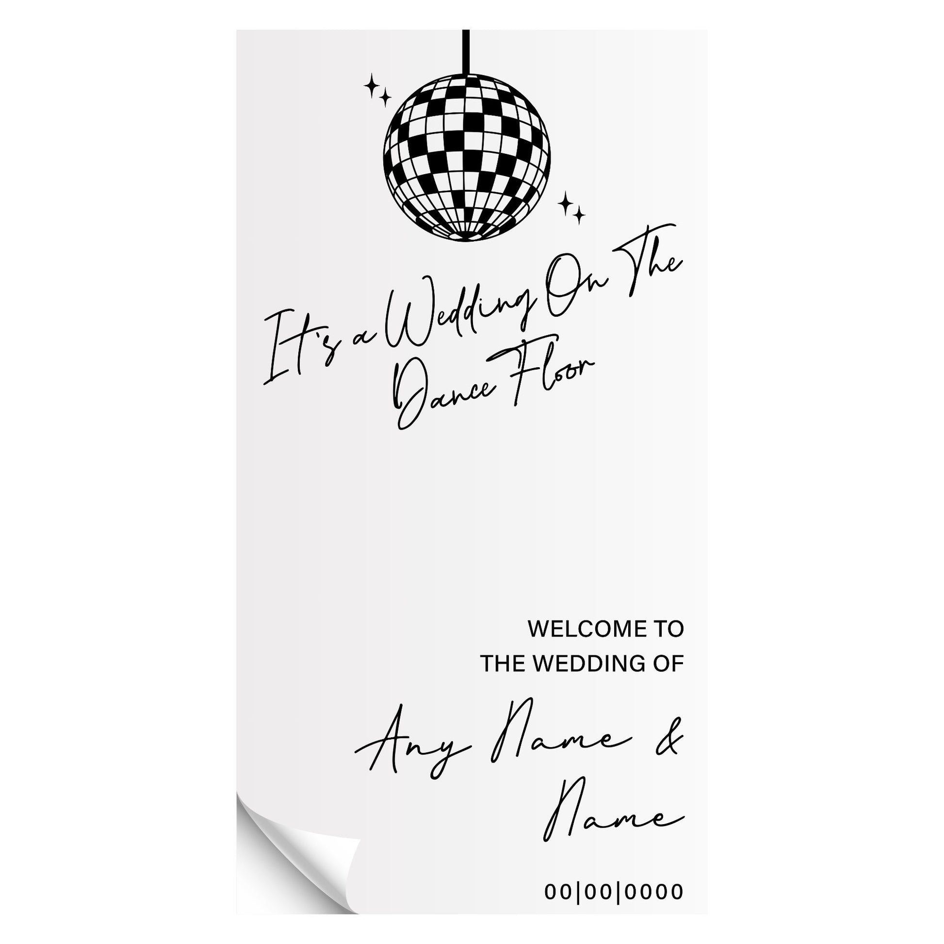Capture the magic of your special day with our "It‘s a Wedding on the Dance Floor" sticker the perfect accent for your sign or mirror! This whimsical and celebratory design adds a touch of romance and excitement to your wedding decor, setting the stage for an unforgettable celebration.