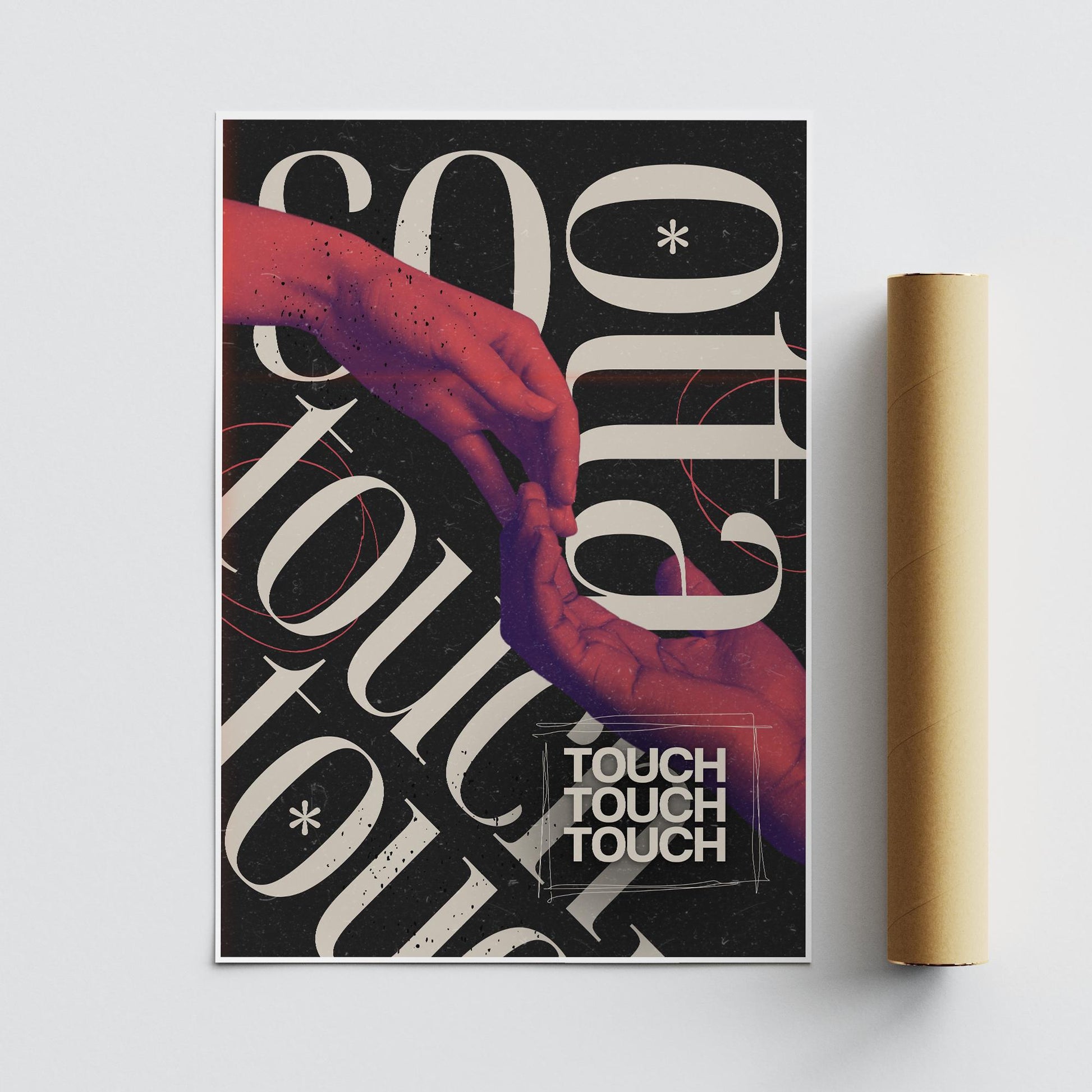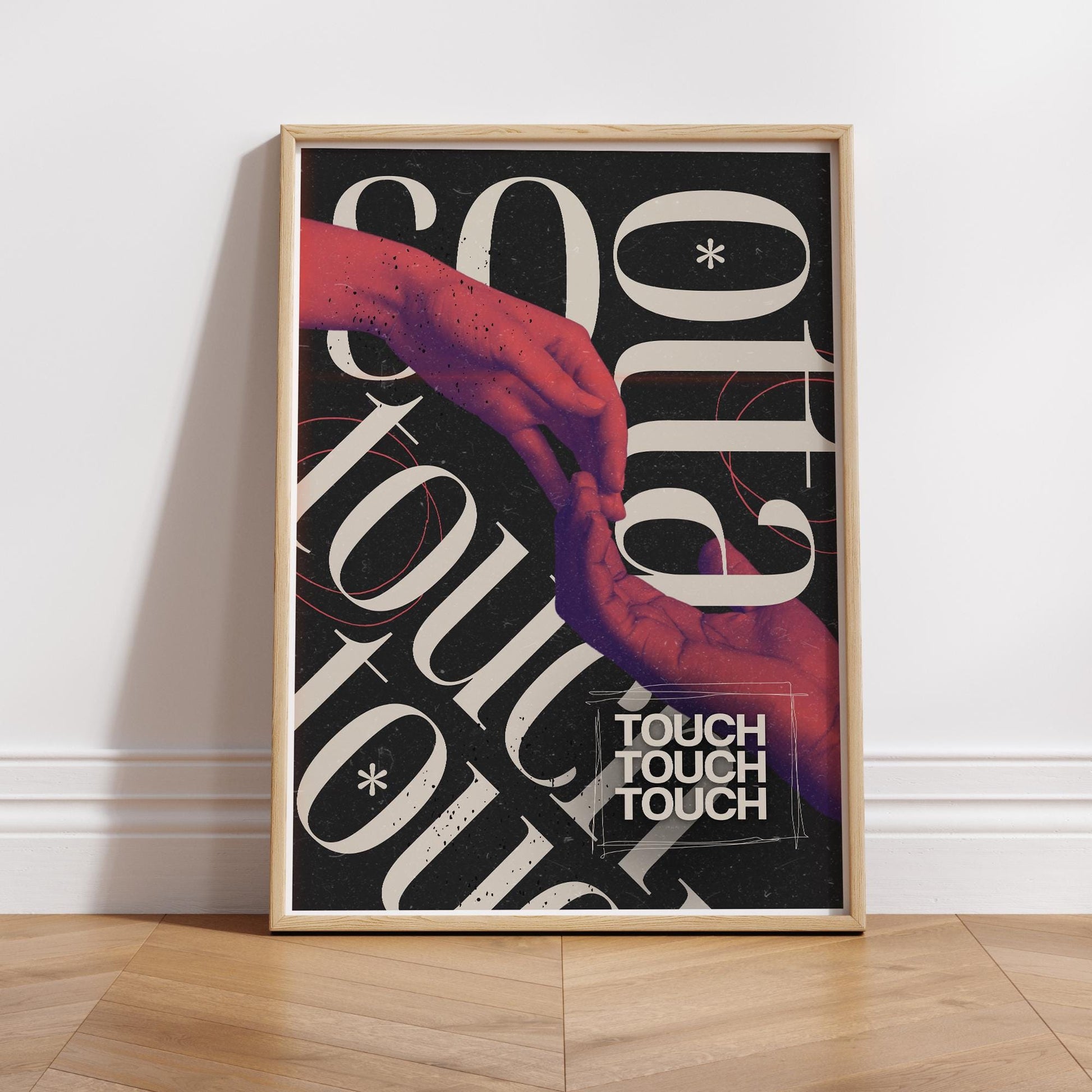 Moody and expressive, this lyric-inspired poster blends the words “So outta touch” with stylised reaching hands. Set against a dramatic black background with beige and pink highlights, it’s an emotional and powerful piece of wall décor.