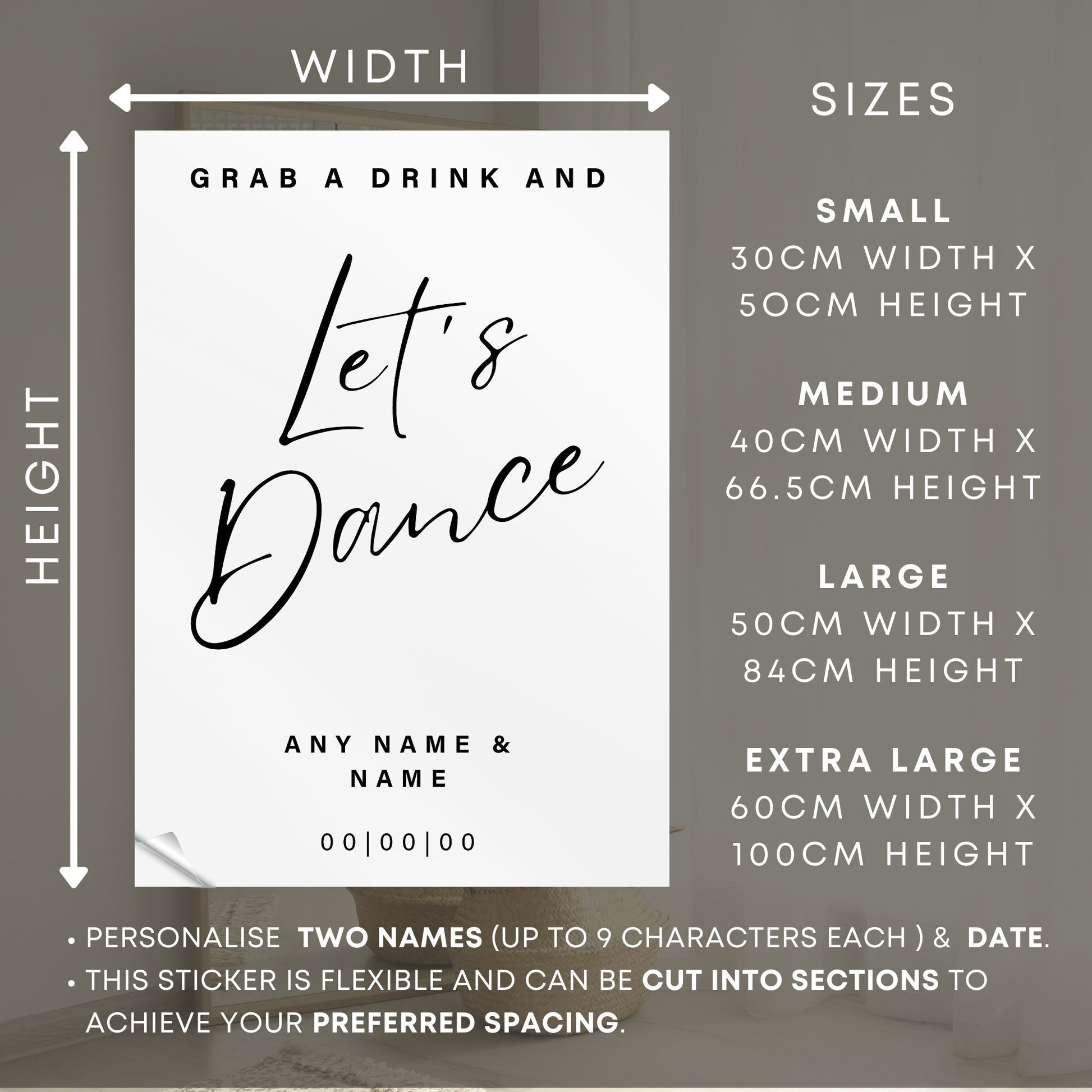 Let's Dance - Wedding Sticker: Vinyl Decal for DIY Wedding Sign, Personalised Wedding Mirror, Custom Sticker For Wedding Party Decor