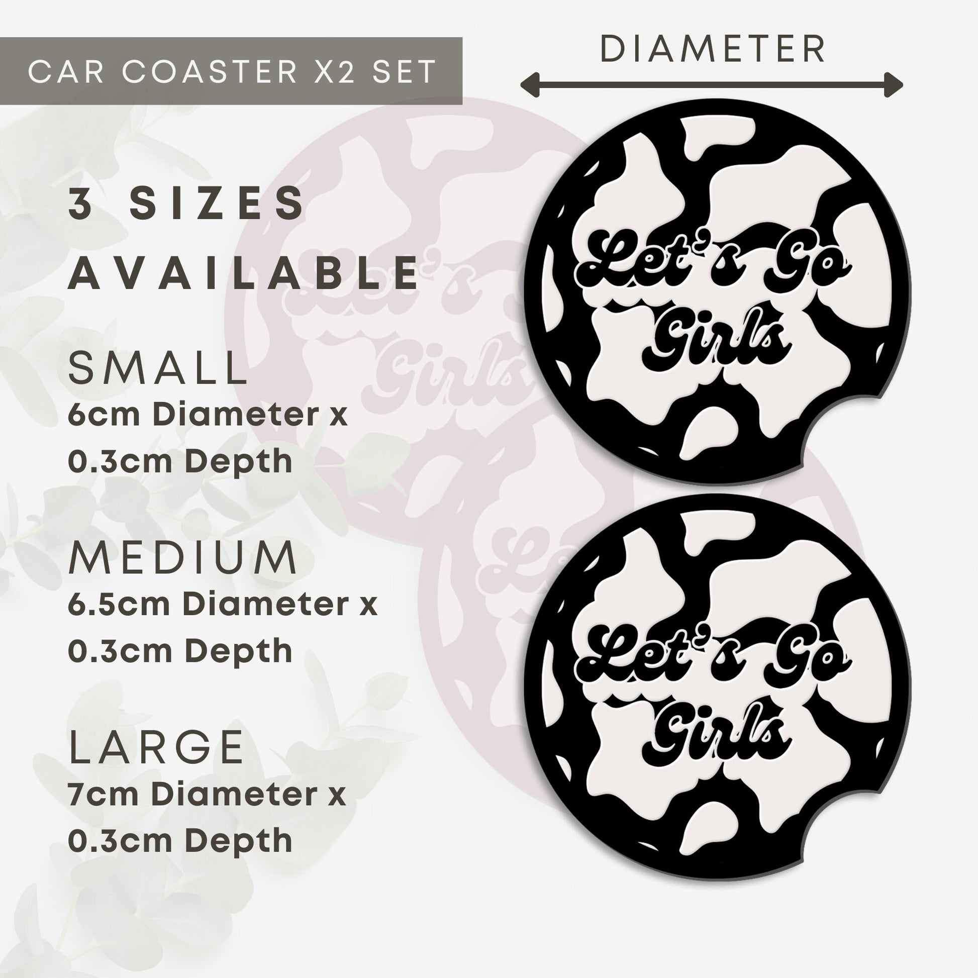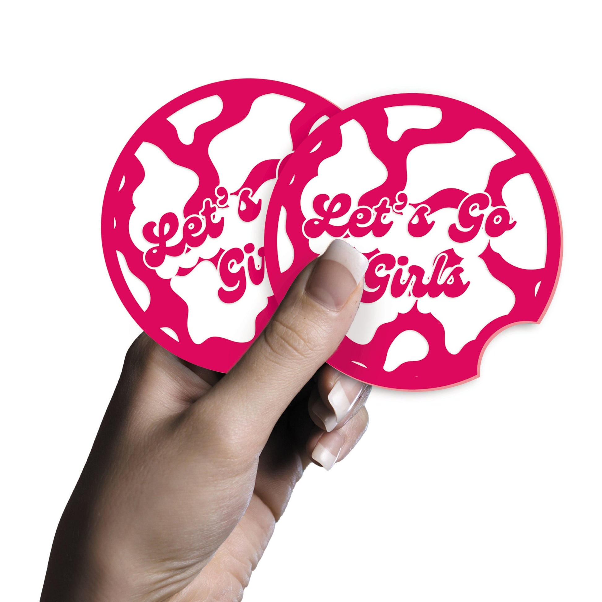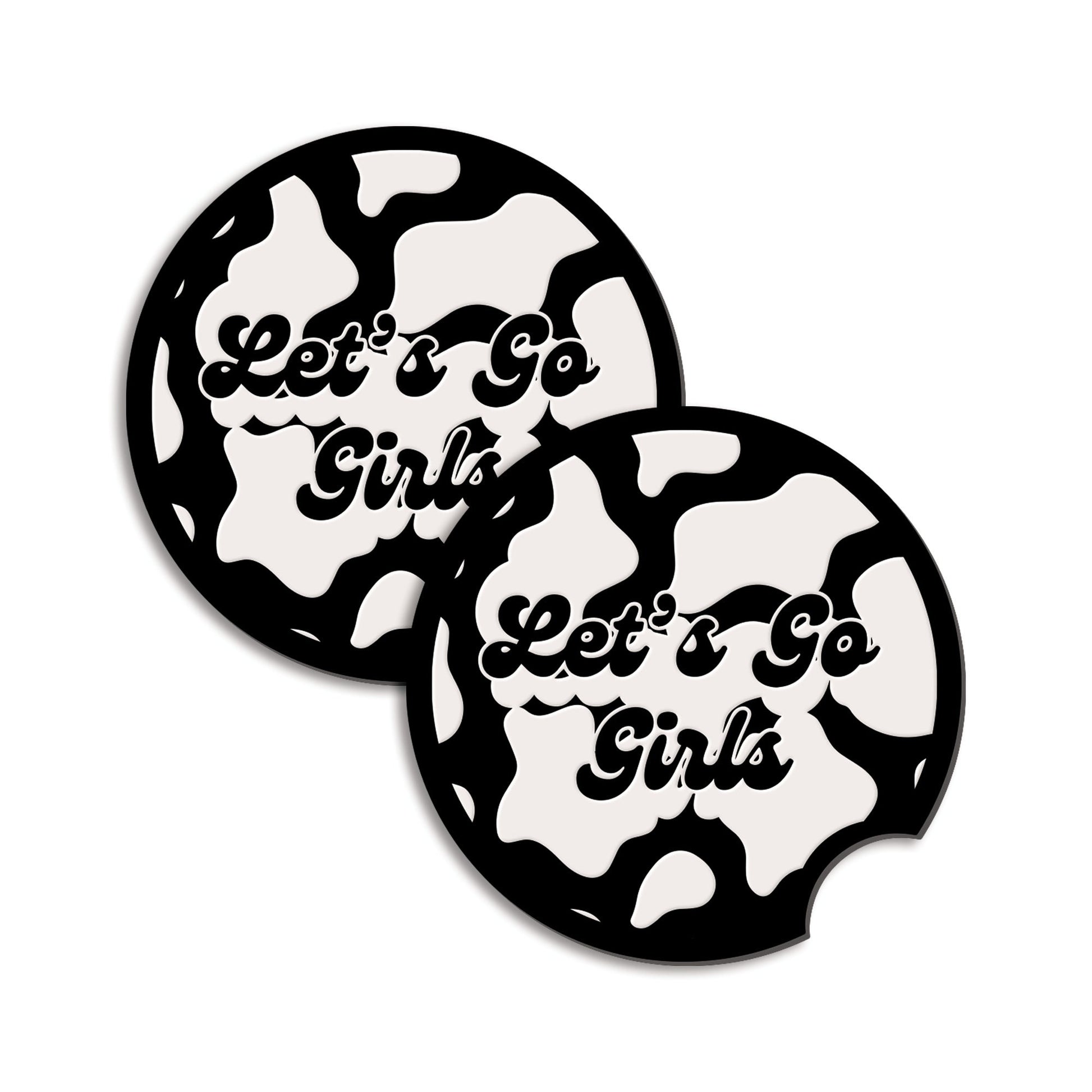 Let's Go Girls - Cow Print Car Coaster Set: Girly Car Accessory, Cup Holder Insert, Cowgirl Vibes, Aesthetic Car Interior, Cute Gift For Her