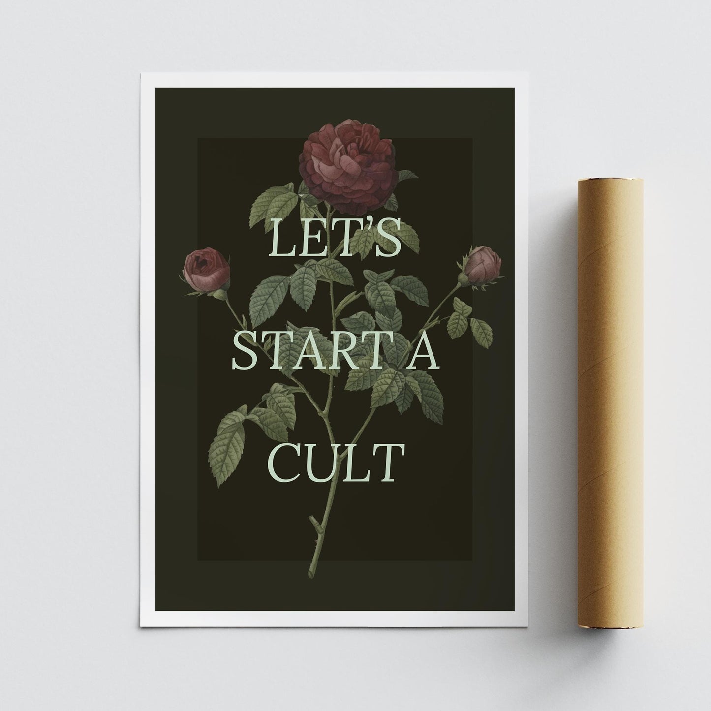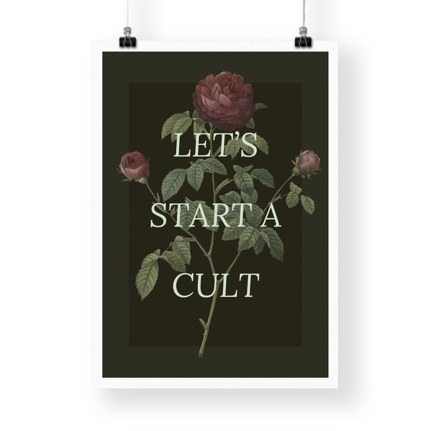 Make a bold statement with our "Let‘s Start A Cult" Poster, designed for those who embrace the unconventional. This edgy piece of wall art is perfect for adding a touch of dark humour and intrigue to your space. Whether you‘re decorating a bedroom, living room, or creative studio, this poster is sure to spark conversations and turn heads. Printed on premium quality paper with sharp, vivid inks, it delivers a high-impact look thats built to last. Ideal for fans of alternative culture, dark aesthetics, and those who love to push the boundaries of traditional decor.