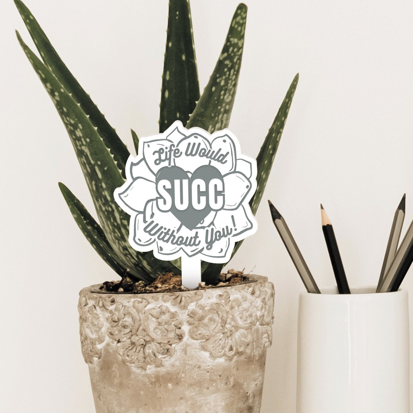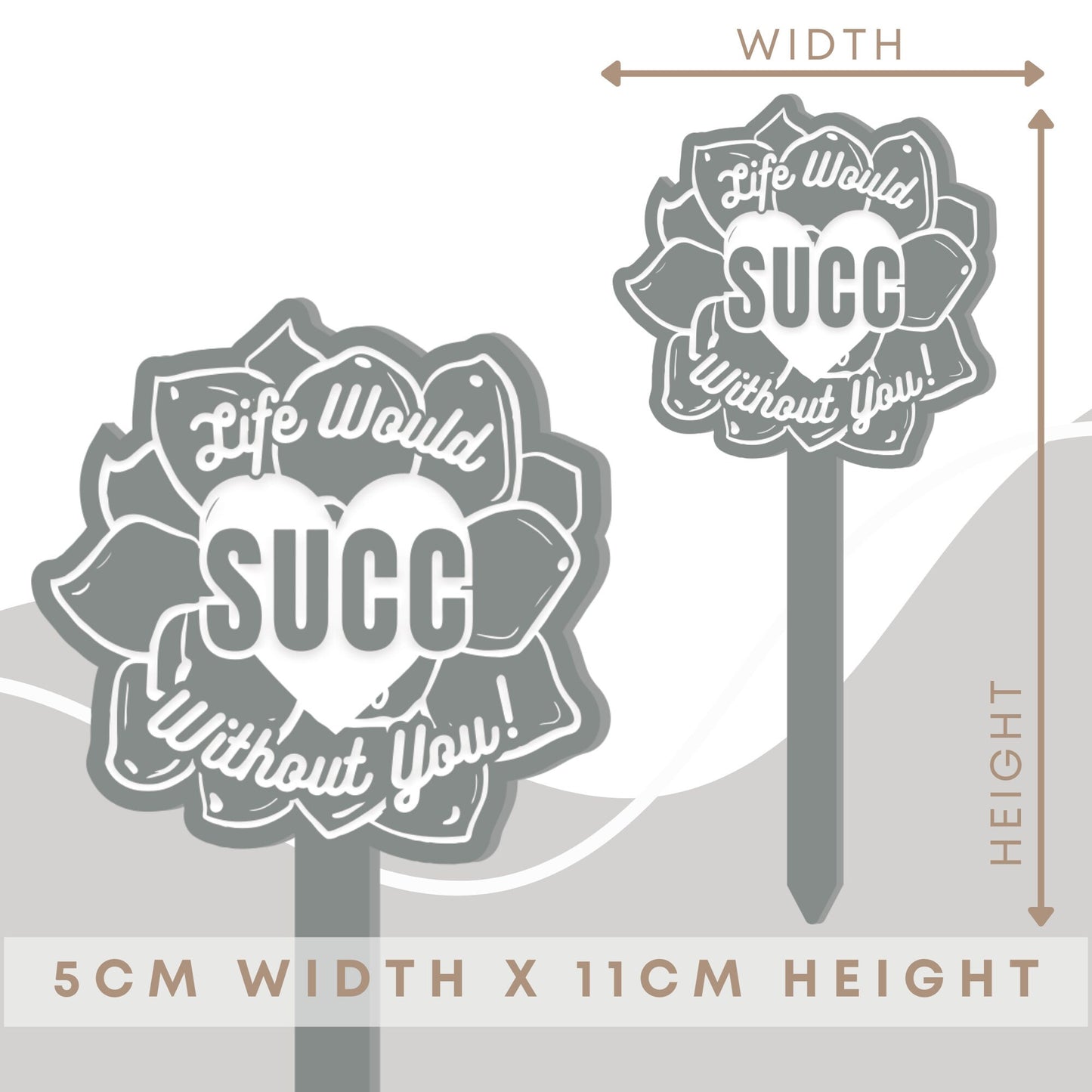 Life Would Succ Without You - Acrylic Plant Tag: Funny Plant Pun, Succulent Plaque, Gift for Valentines, Small Gift For Plant Lovers