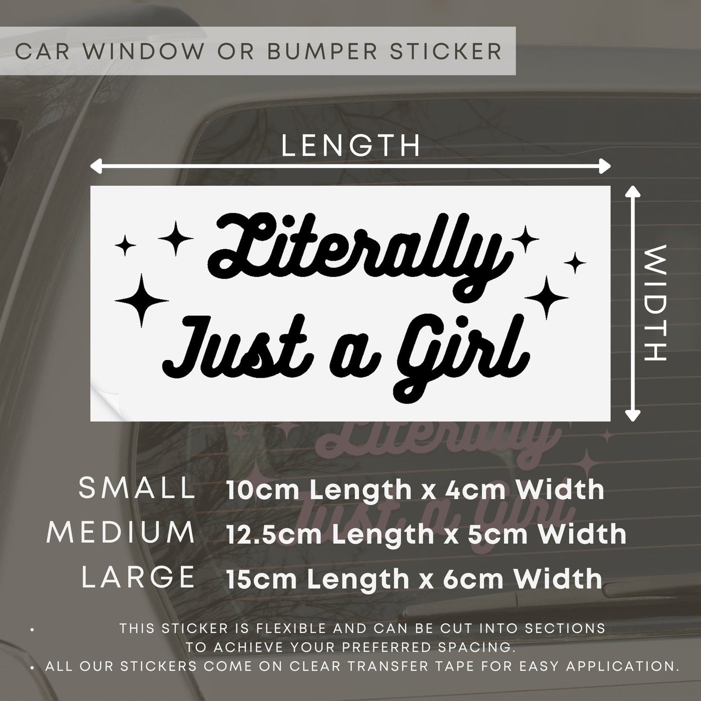Literally Just A Girl - Stars Font: Girly Car Sticker, Cute Car Accessory, Funny Bumper Vinyl Decal, Window Sticker, Quote Sticker For Her