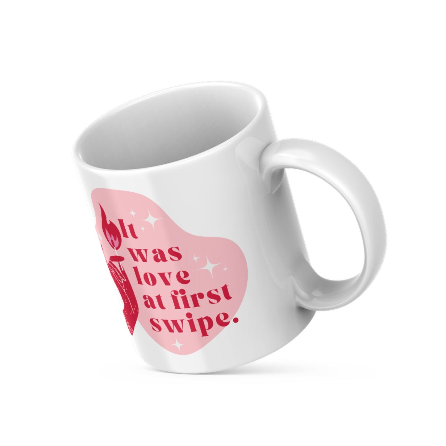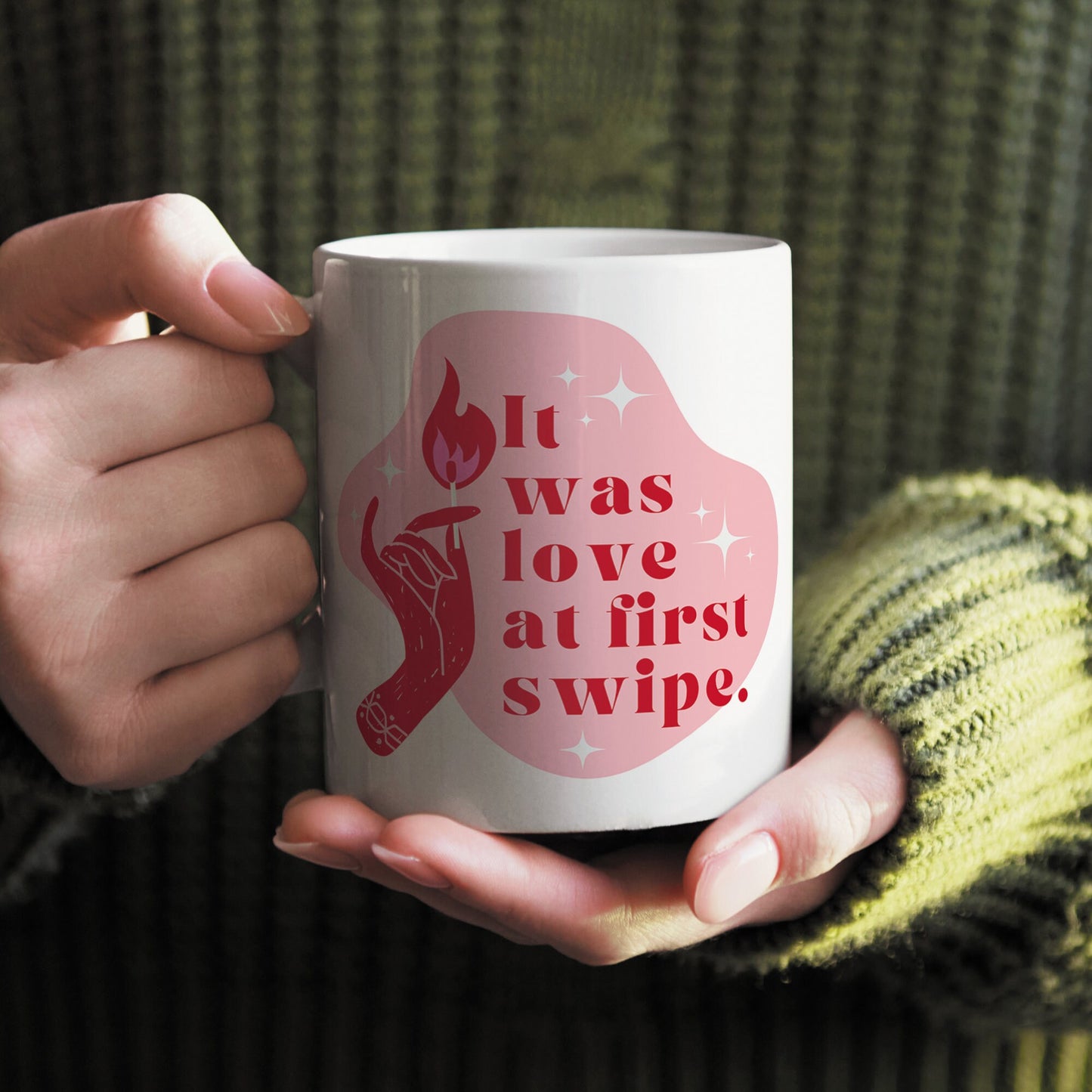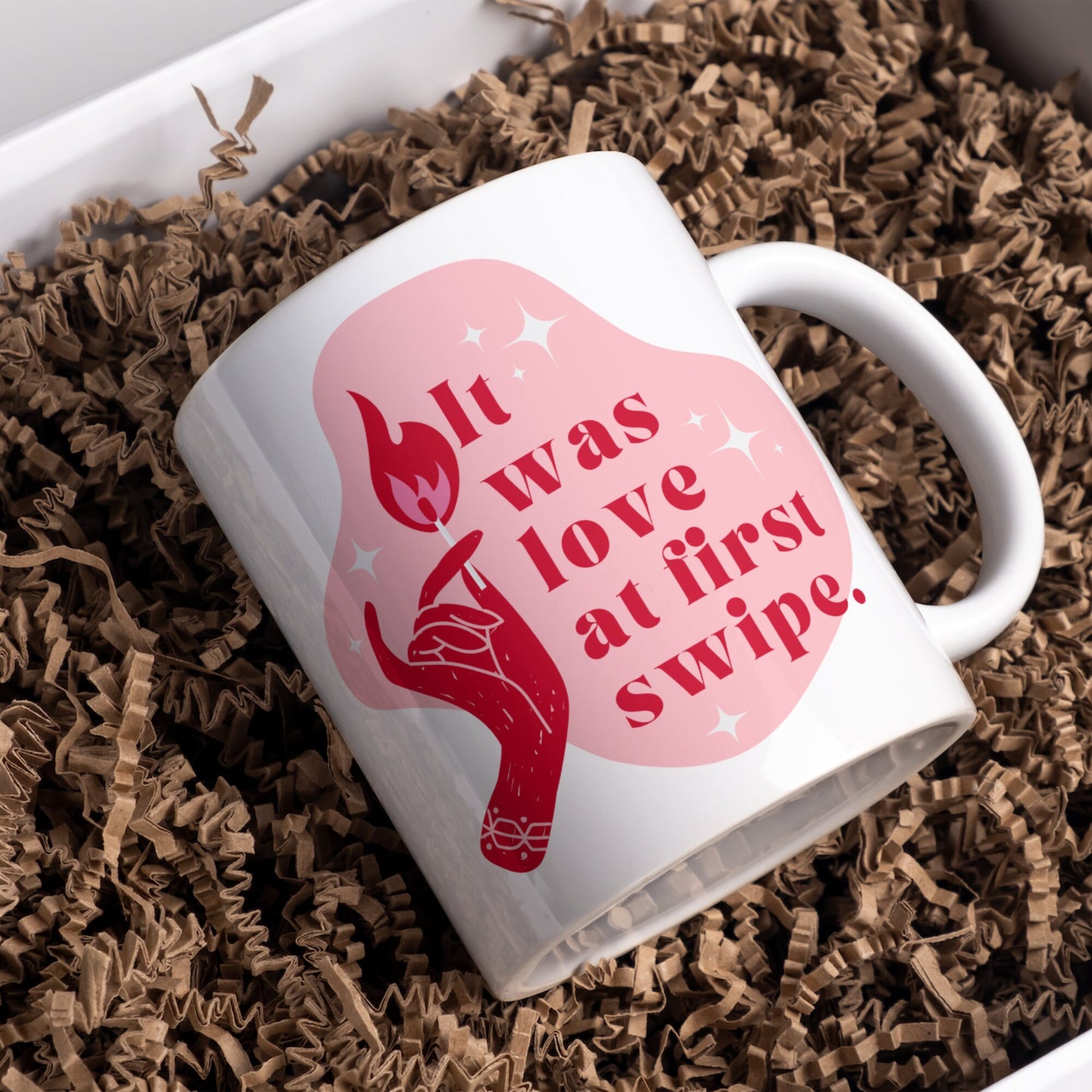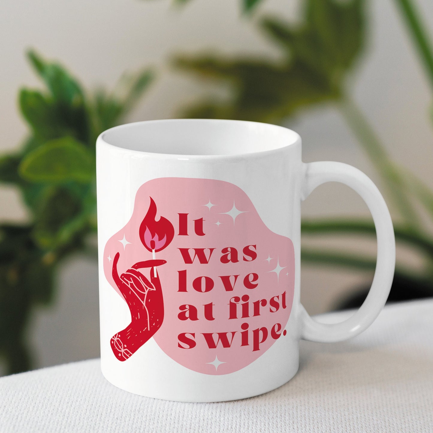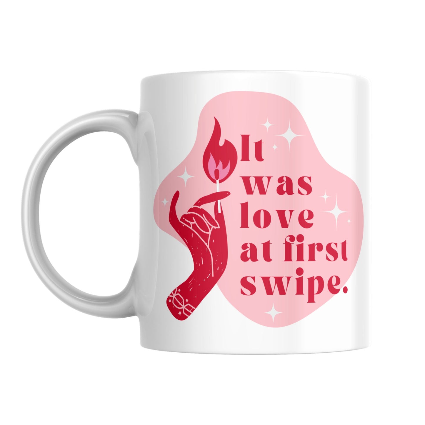 Love At First Swipe: Online Dating Mug, Gift for Partner, Gift For Valentines or Anniversary, Cute Play on Words, Cosy Valentine's Day Cup