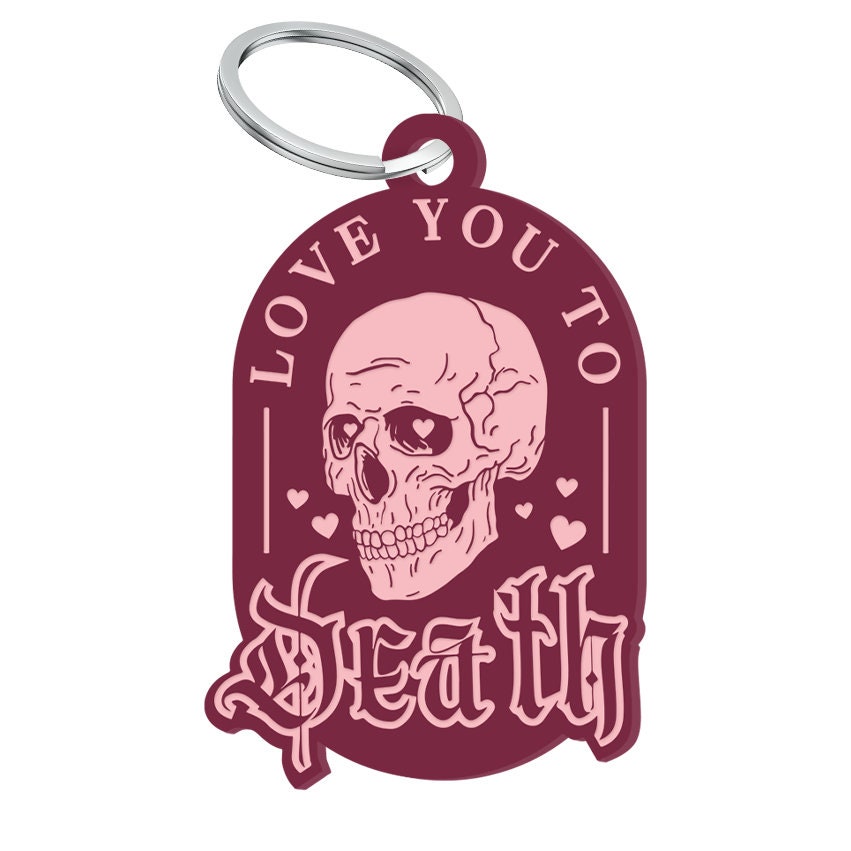 Embrace the darker side of love with our "Love You to Death" Keyring the perfect blend of humour and affection for Valentine‘s Day. This unique keyring is an ideal gift for those who appreciate a touch of dark humour and want to express their love in a one-of-a-kind way.