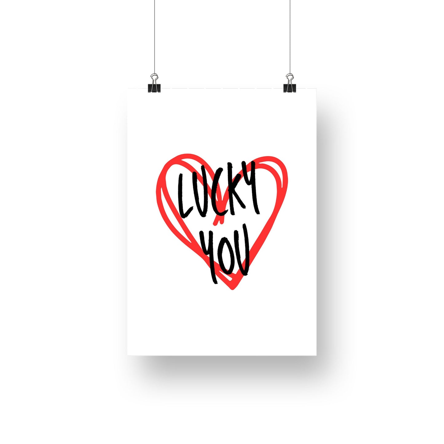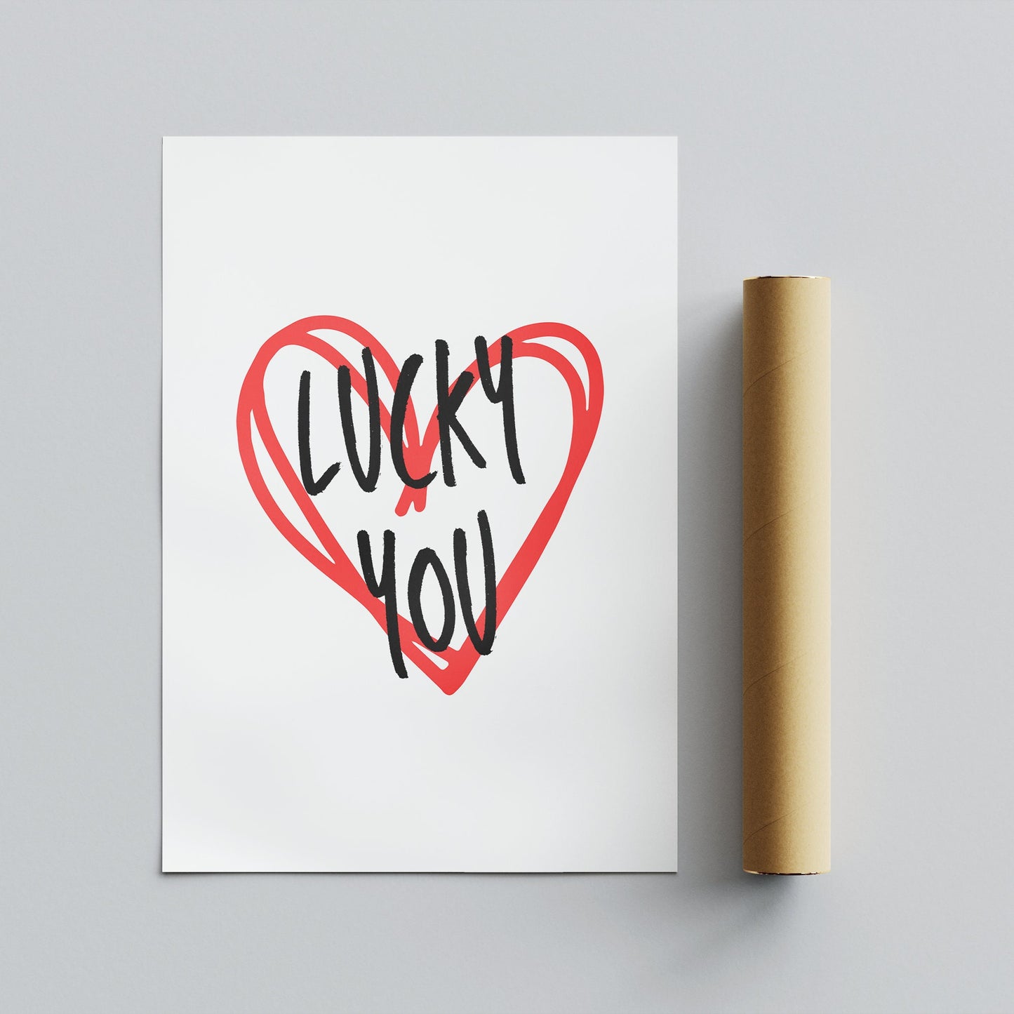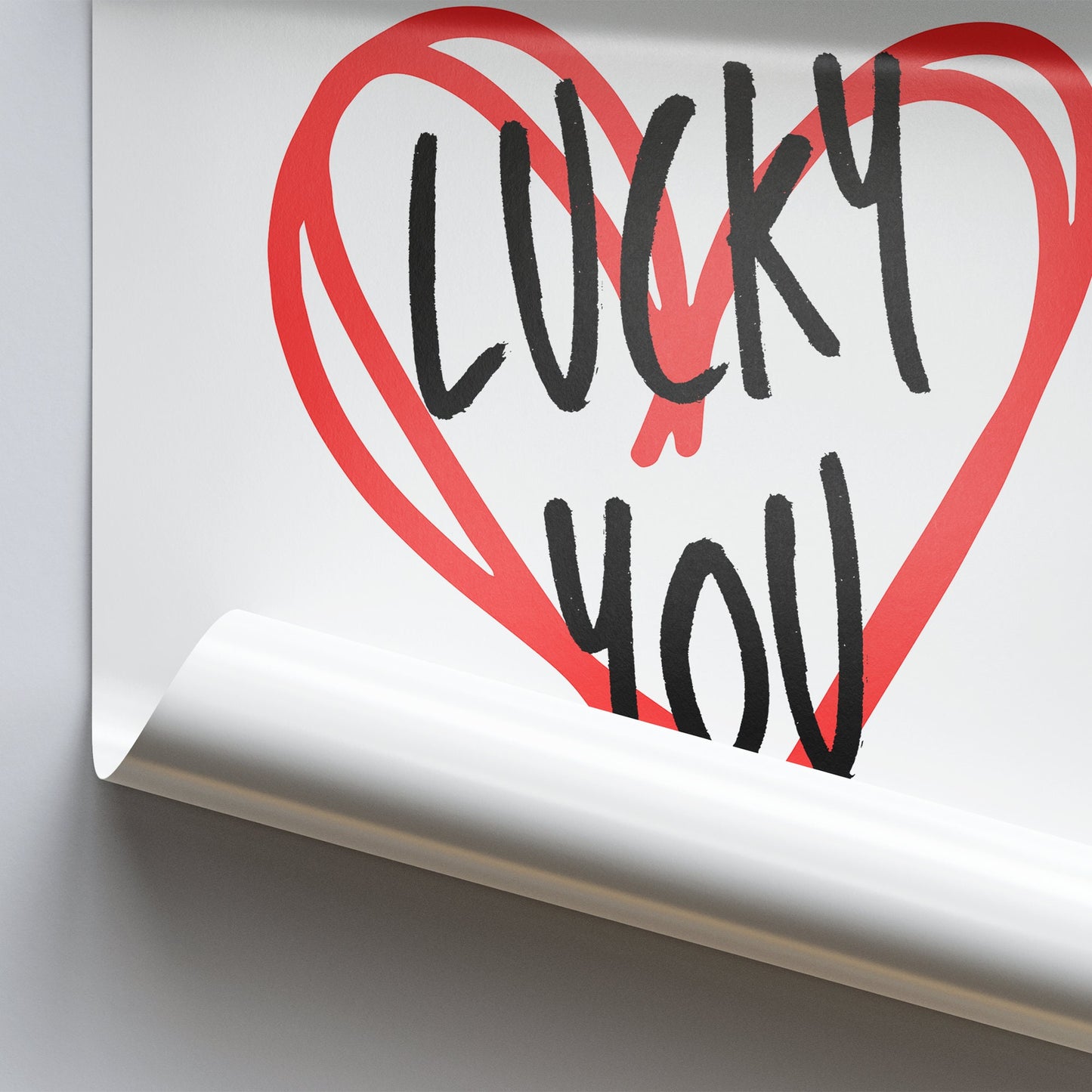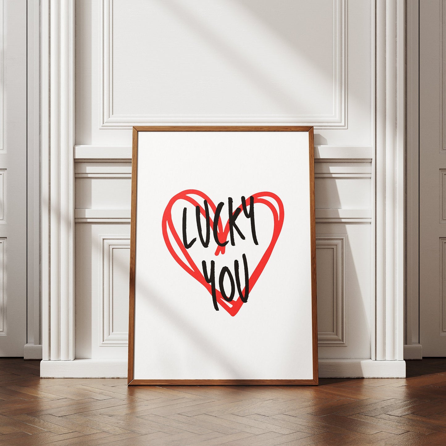 Lucky You - Red Heart Design Poster, Home Decor, Trendy Wall Art, Bedroom Poster, Living Room Poster, House Wall art, Modern Poster Design