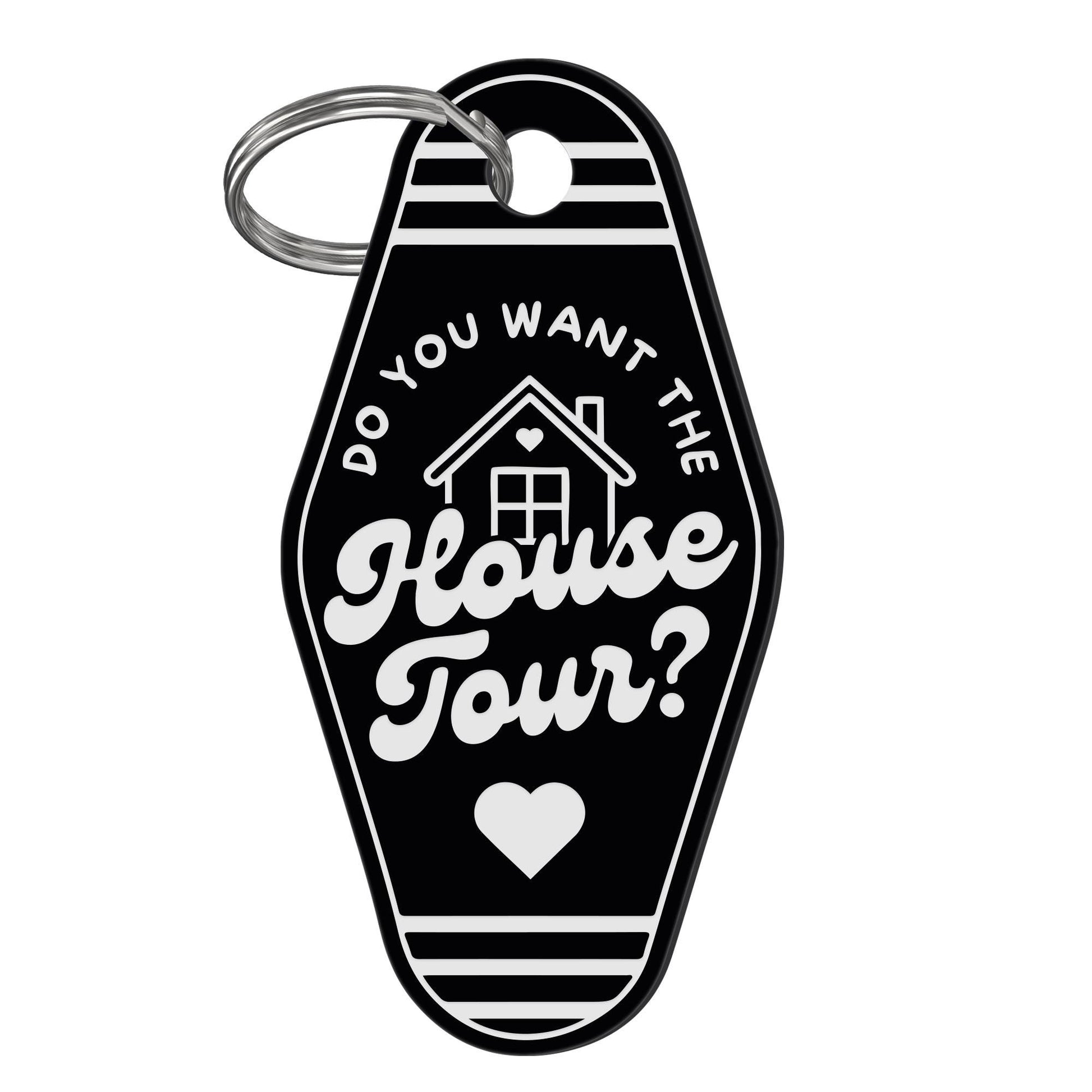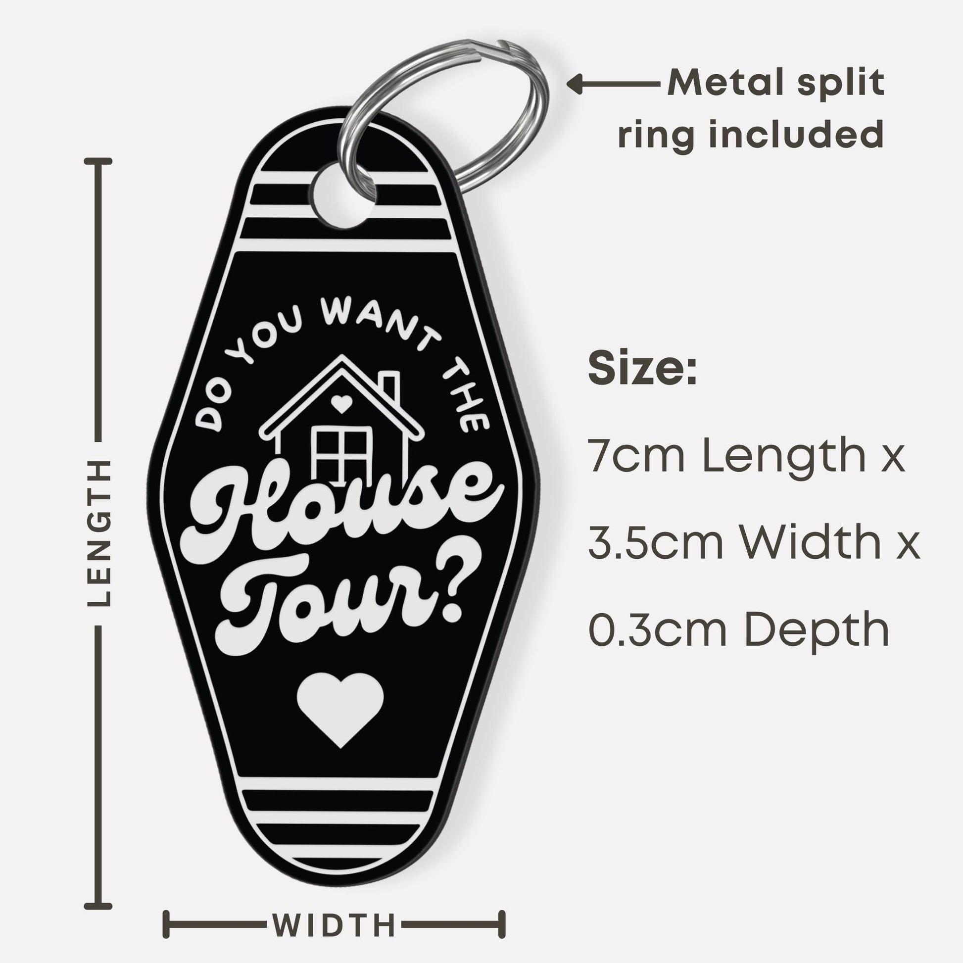 This heart and home design acrylic keyring is a must-have accessory for fans who love cute details. With its retro motel tag shape and playful engraved phrase Do You Want the House Tour?, it’s a charming way to accessorise your keys or bag. Made from durable acrylic and available in a wide choice of colours, this keyring is a stylish, lightweight gift idea for friends, fellow fans, or yourself.