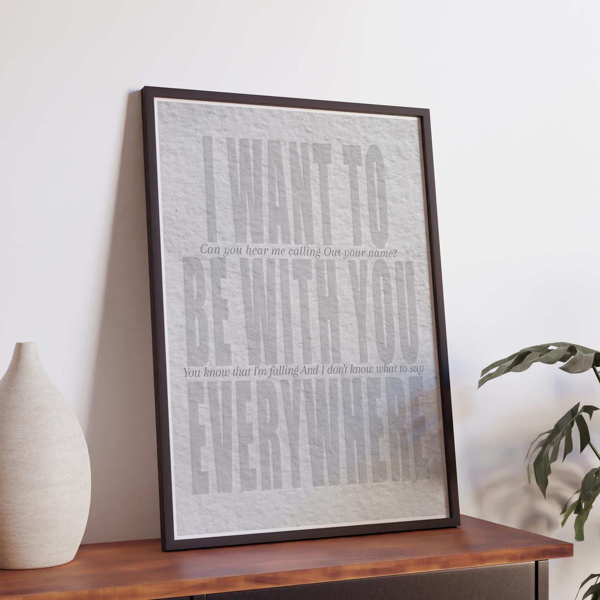 Lyric Inspired Poster Print “I Want To Be With You Everywhere Embossed Style Neutral Wall Art | Typography Music Poster | Home Decor