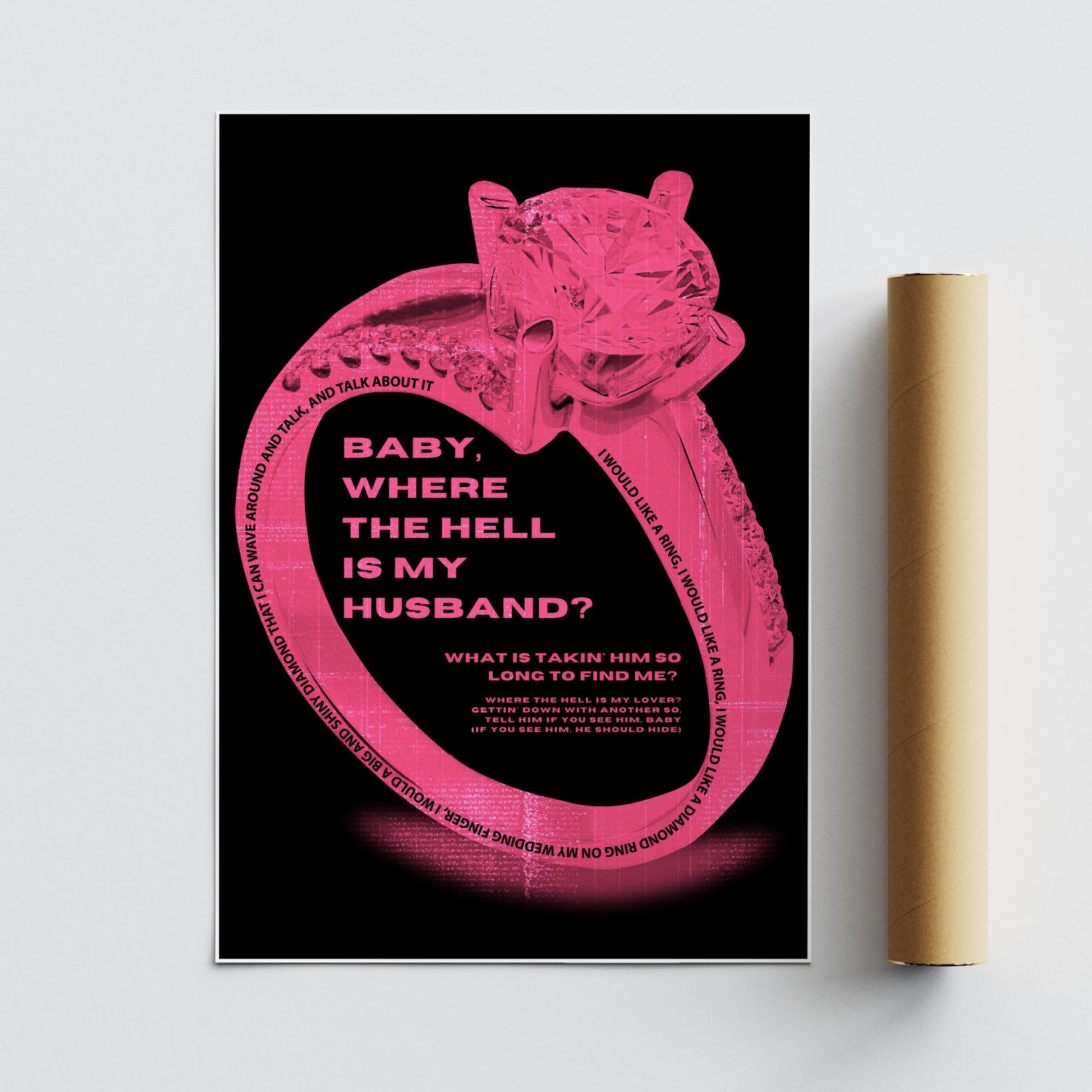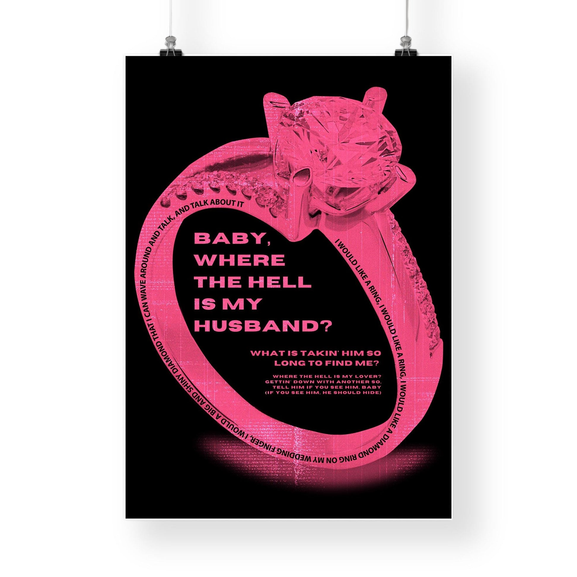Lyric Wall Art Print Where The Hell Is My Husband 04: Music Quote Poster | Typography Print | Neon Pink Diamond Ring Graphic | Home Decor
