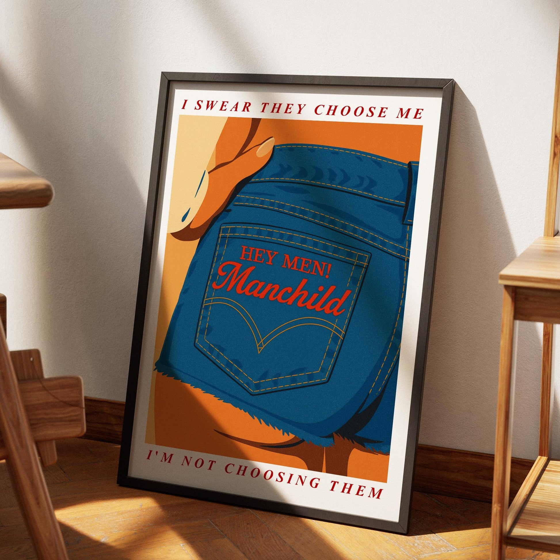 Manchild - Denim Shorts Poster: Pop Lyric-Inspired Print | Music Wall Art | Aesthetic Song Quote Print | Gift for Her | Girly Home Decor