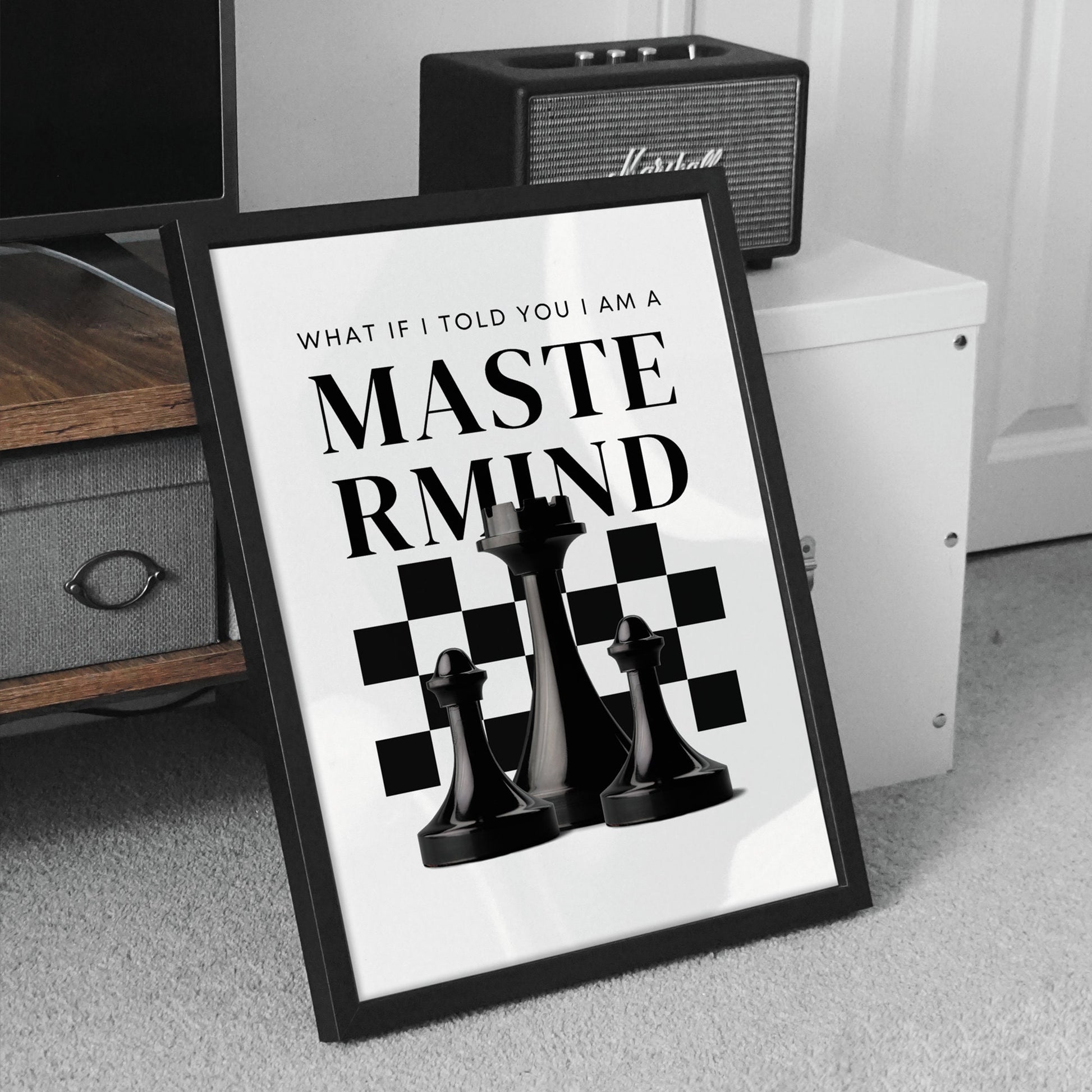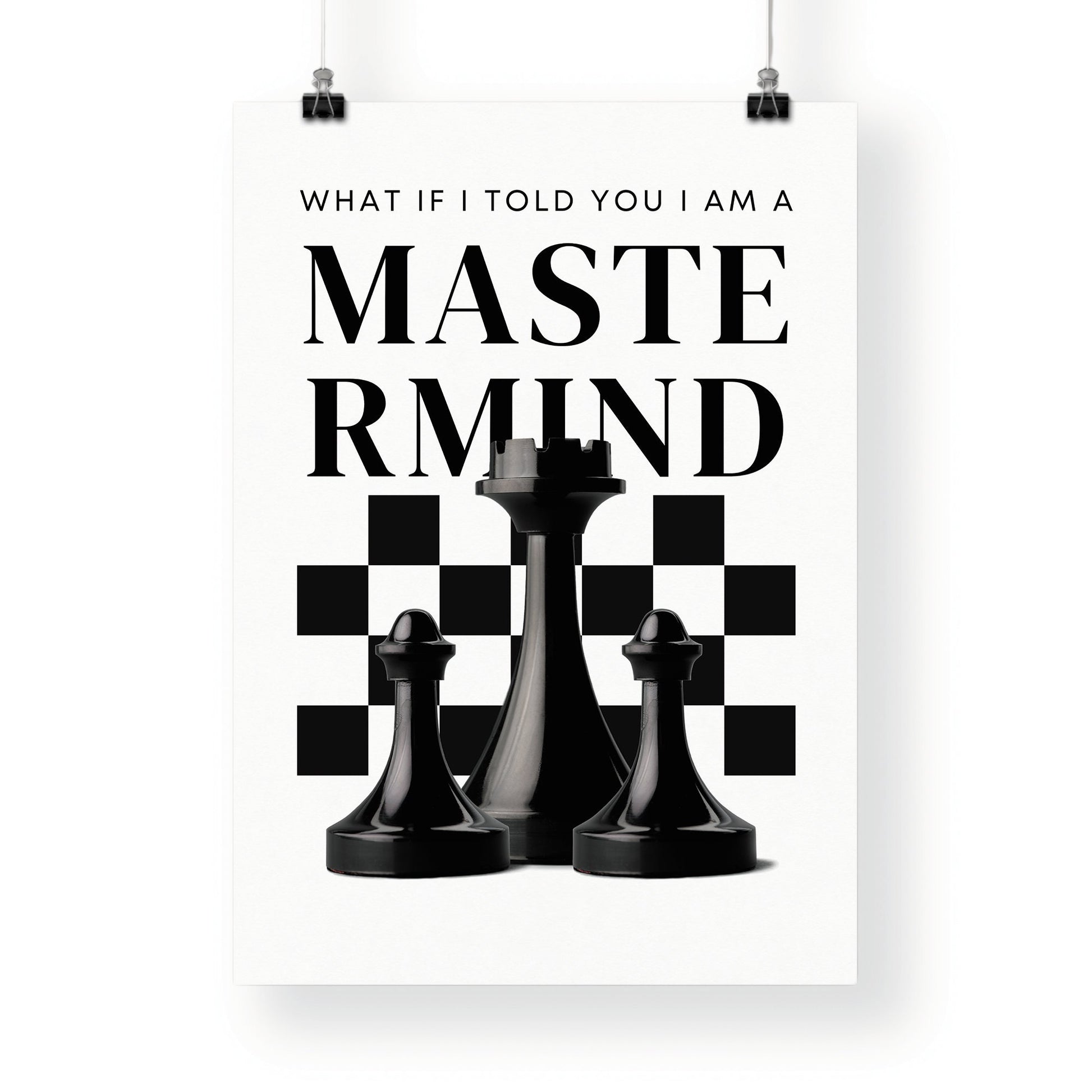 Elevate your space with a unique blend of music and strategy with our ‘Mastermind‘ lyric-inspired chess poster. Featuring the compelling phrase "What if I told you I am a mastermind," this poster merges the worlds of chess and lyrical intrigue. Crafted with attention to detail and printed on high-quality paper, it‘s a captivating addition to any room. Whether you‘re a chess enthusiast seeking inspiration or a music lover drawn to clever wordplay, this poster sparks curiosity and conversation. Hang it in your game room, study, or office and let it serve as a reminder of your strategic prowess. With every move, embrace the challenge and embrace your inner mastermind. It‘s time to make your mark on the board and let your brilliance shine!