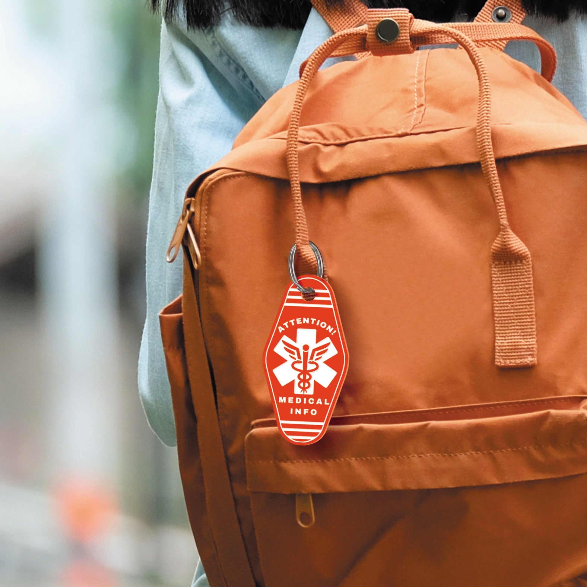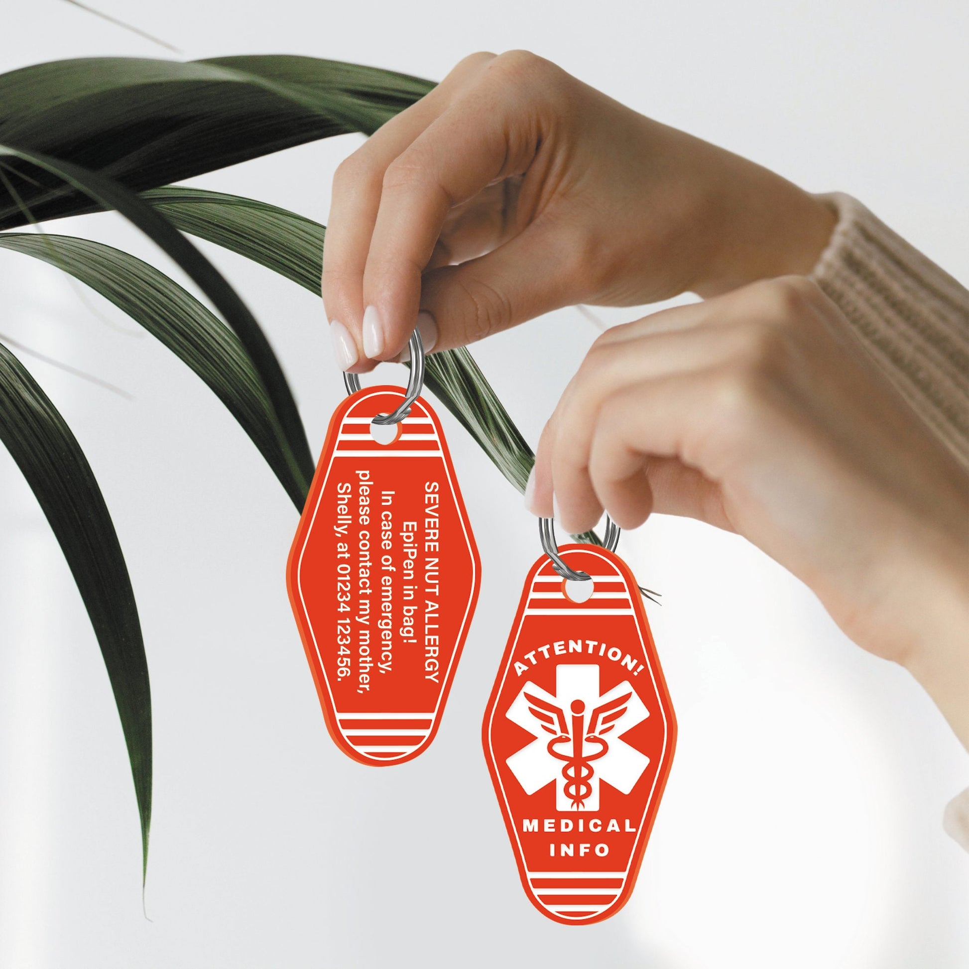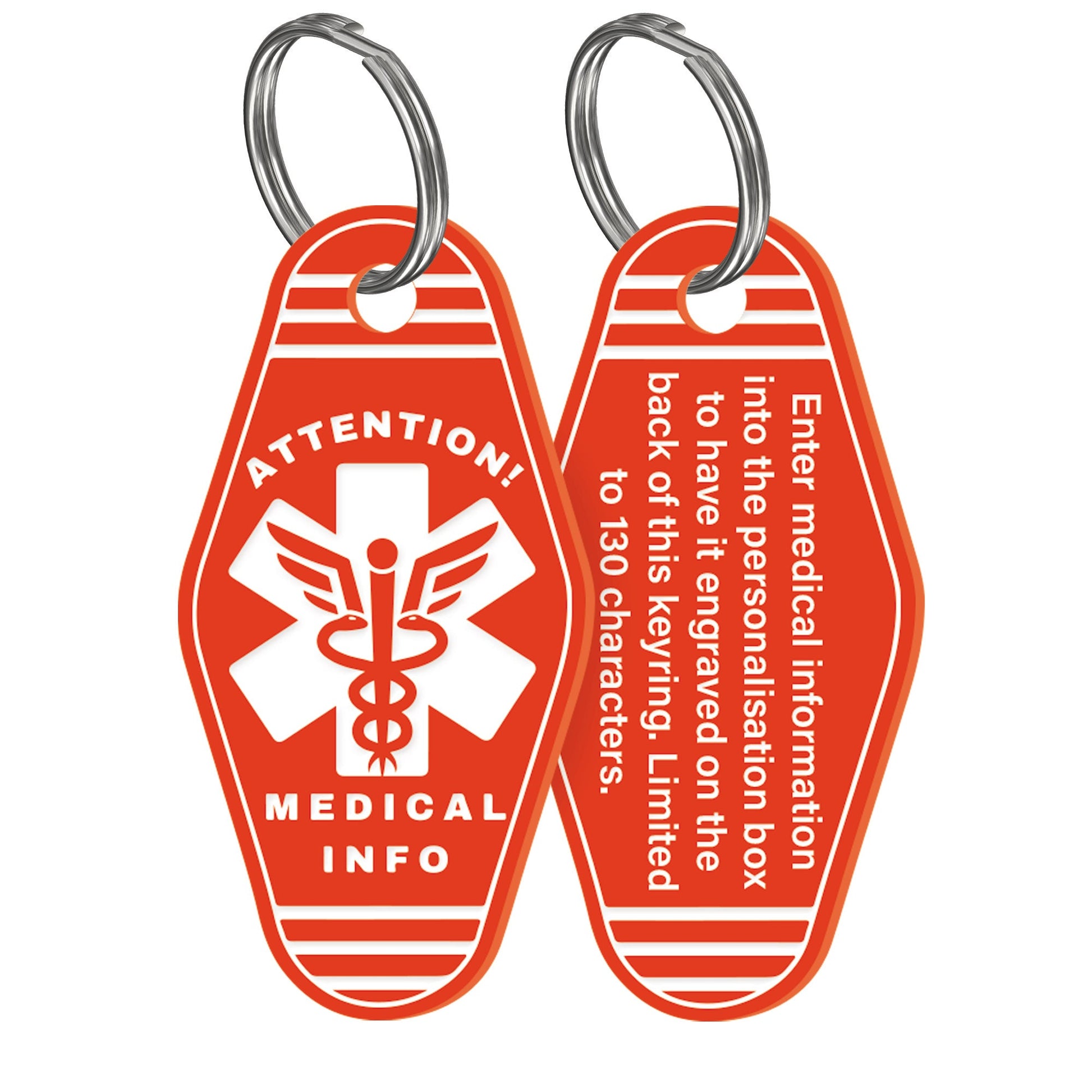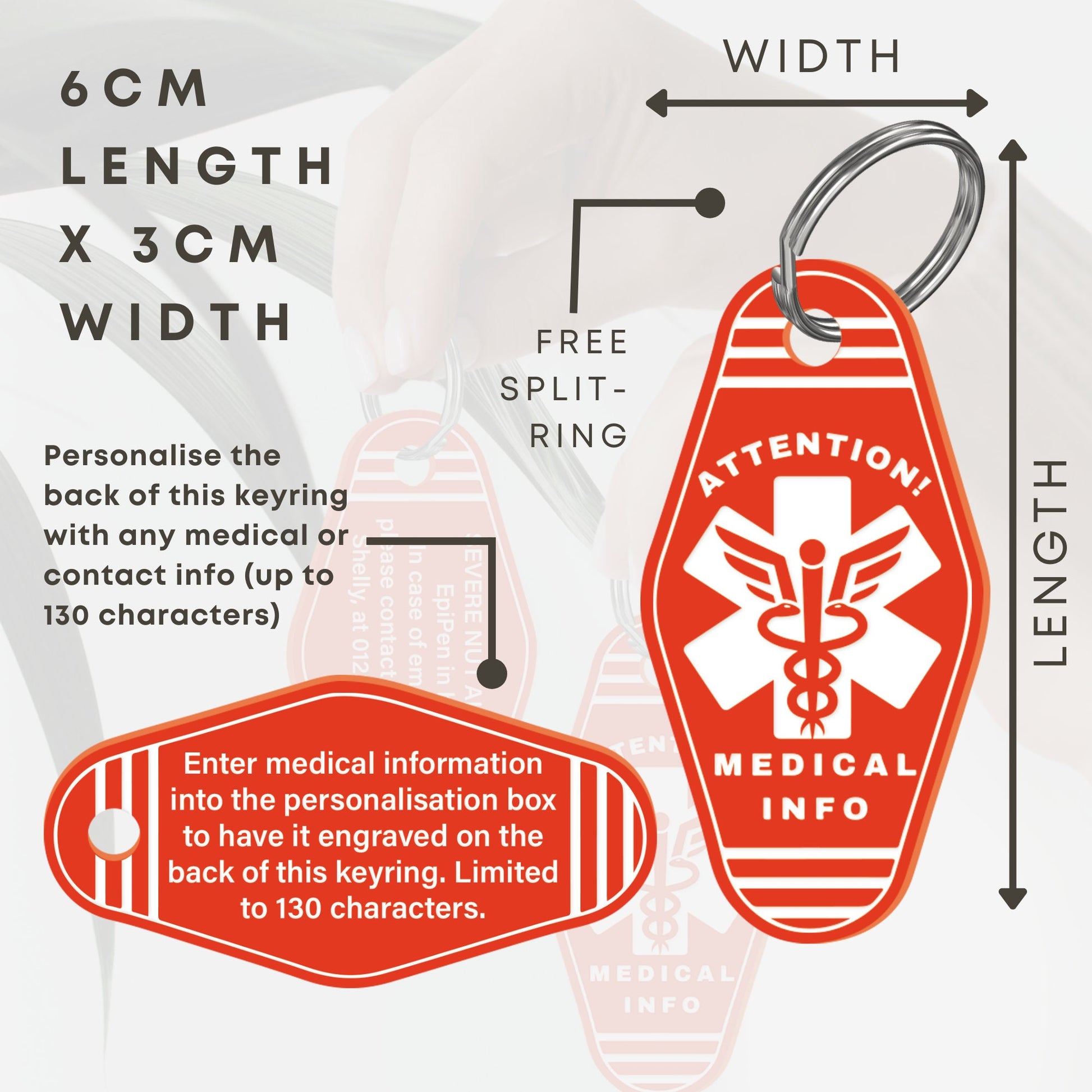 Medical Info Keyring - Attention Caduceus: Personalised Medical Information Acrylic Keyring, Custom Safety Keychain, Emergency Contact