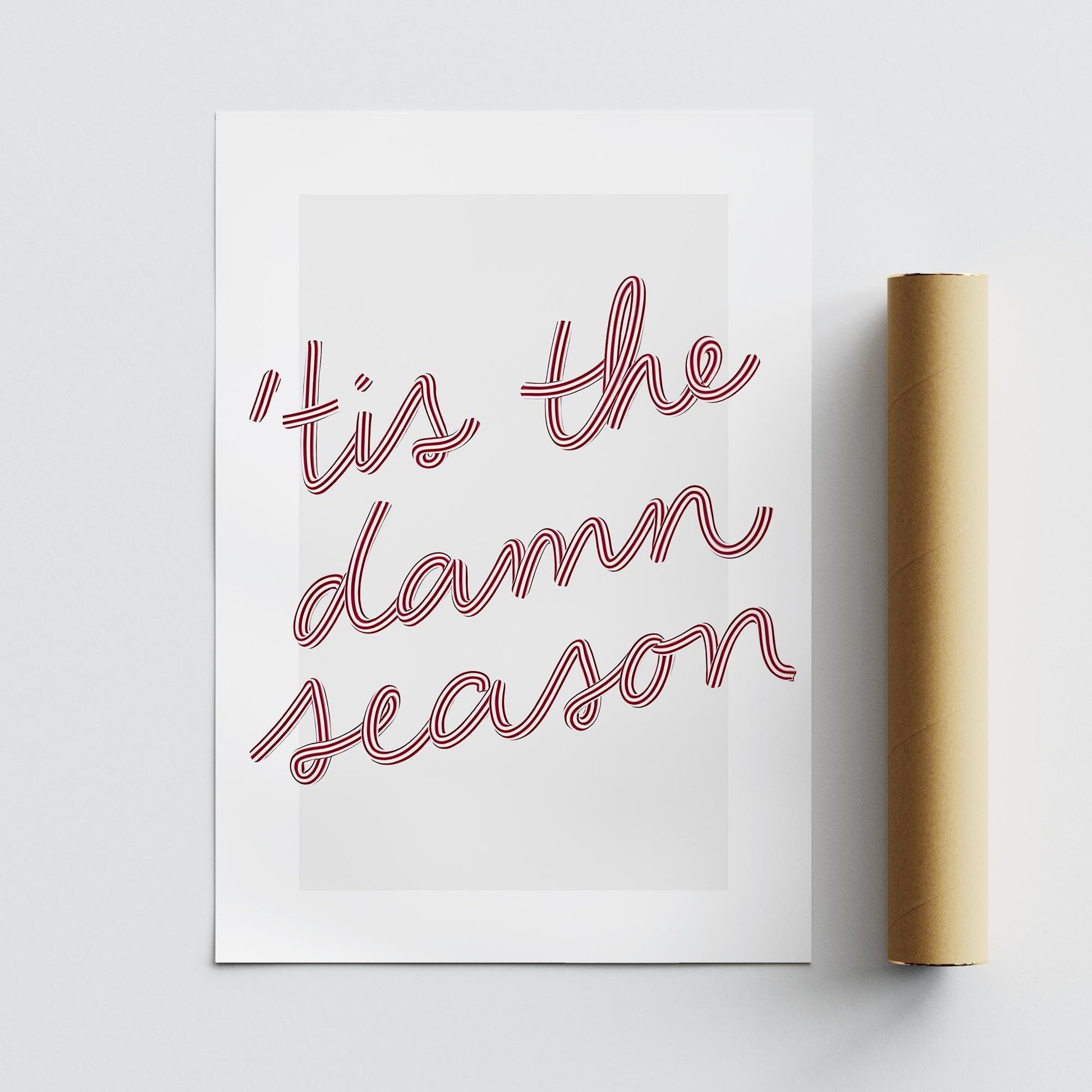 Minimal Lyric-Inspired Poster "Tis The Damn Season" Print 02 | Christmas Poster | Xmas Typography Print | Seasonal Home Decor