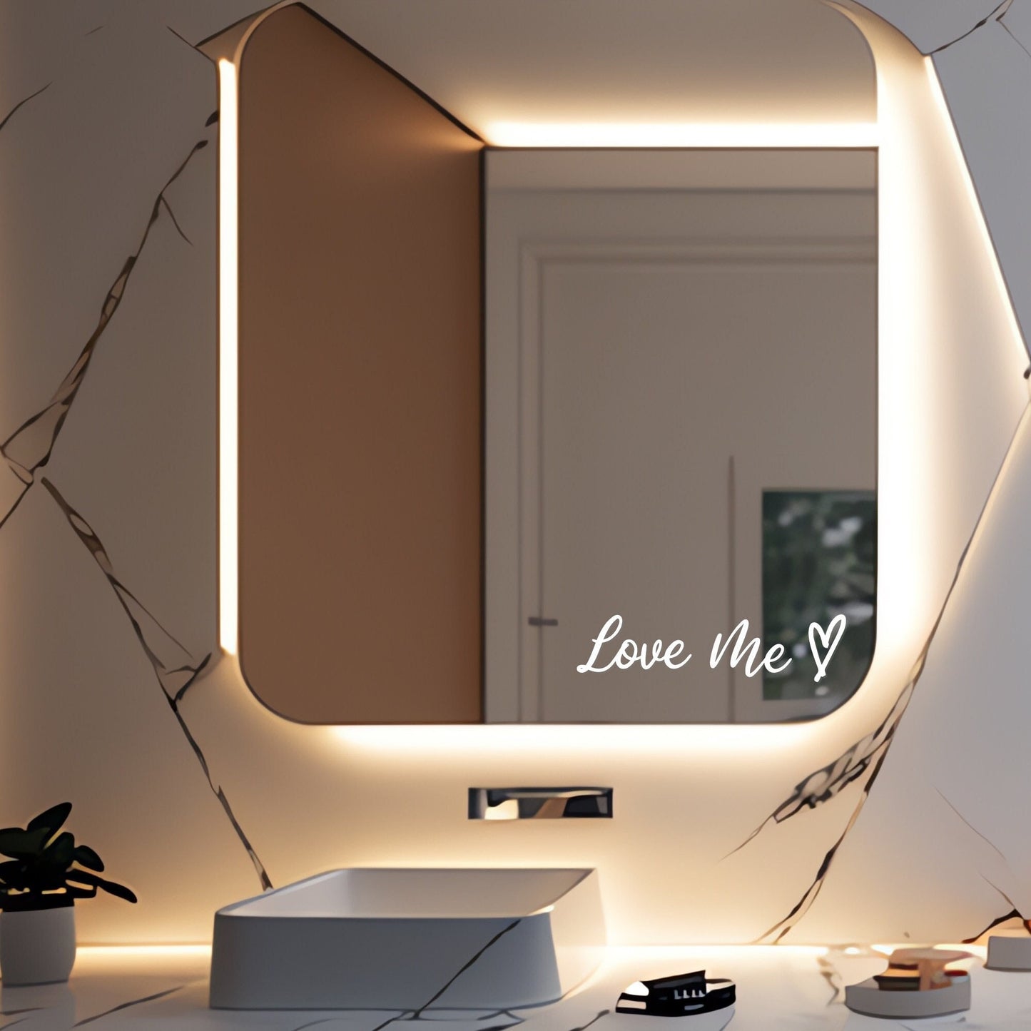 Love me! Positive Motivational Mirror Sticker. A Great way to add a unique touch to your and make your space more welcoming.