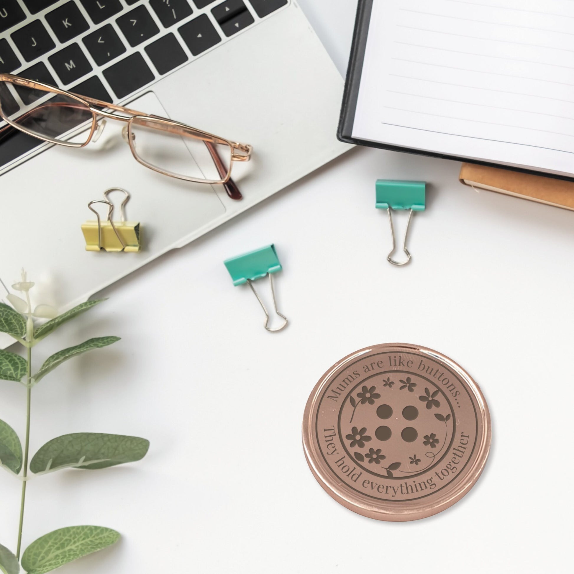 Celebrate the incredible strength and love of your mum with our special Mother‘s Day coin. Engraved with the heartfelt message, ‘Mums are like buttons...they hold everything together,‘ this metal token is a perfect and meaningful gift for Mother‘s Day.